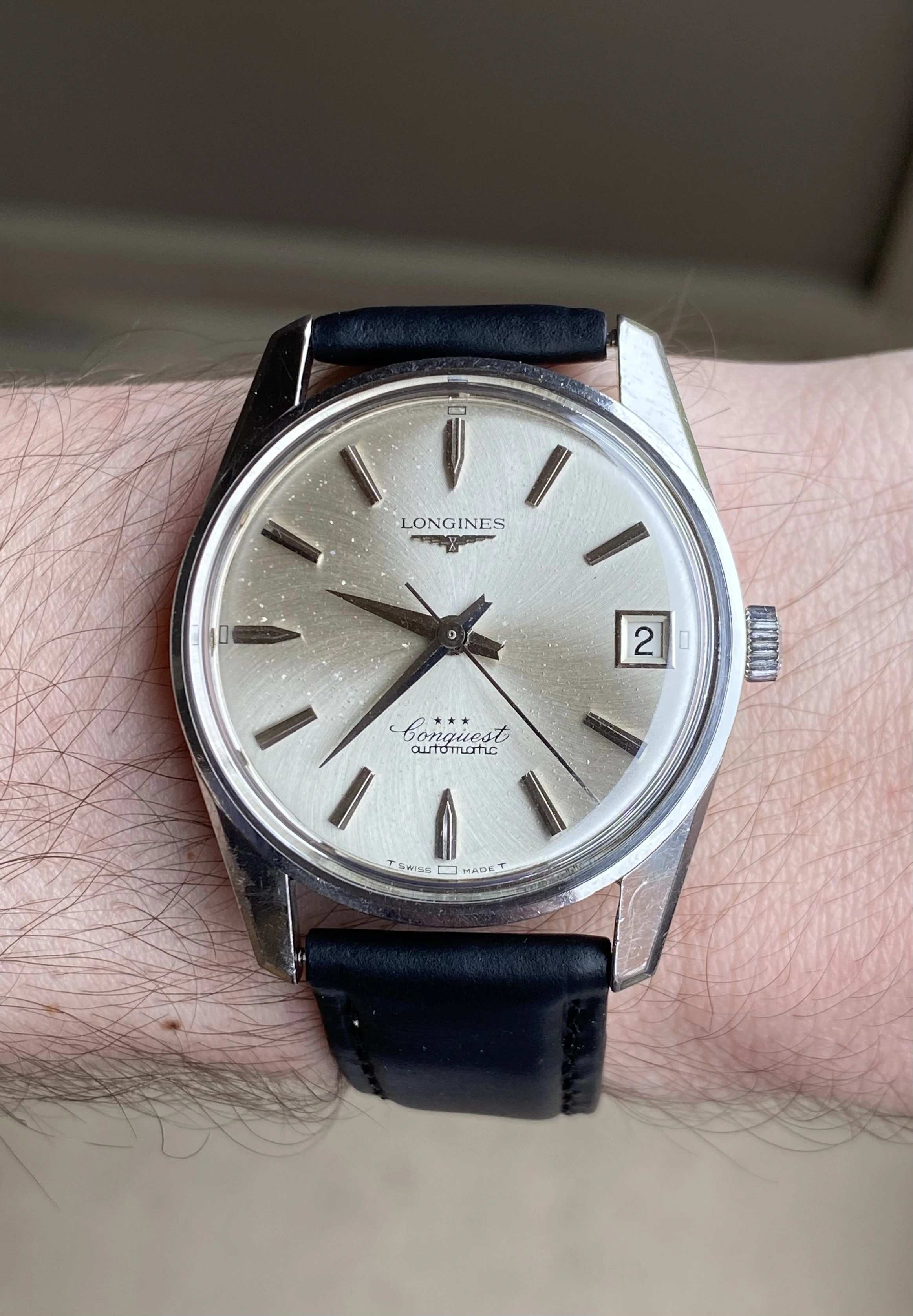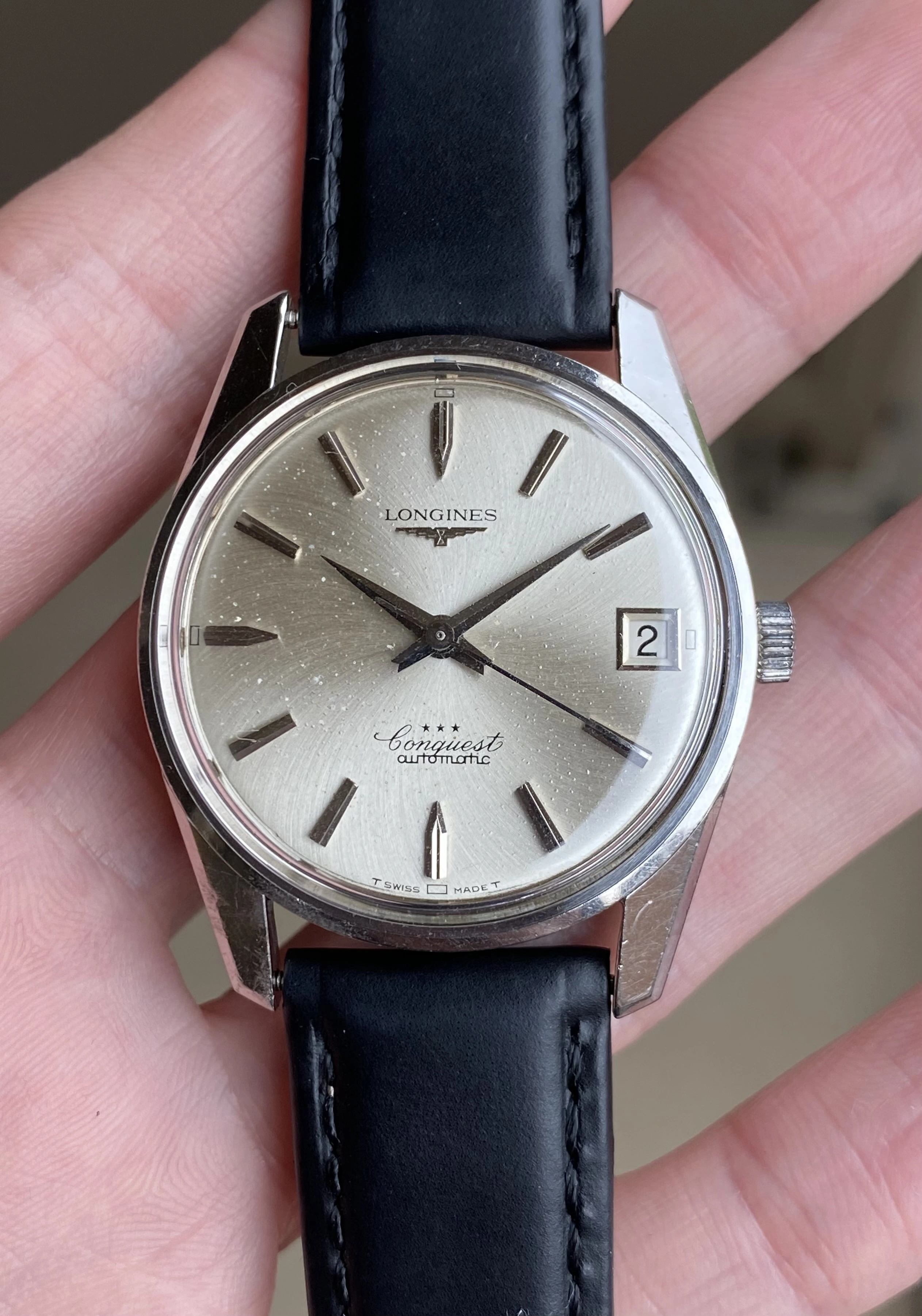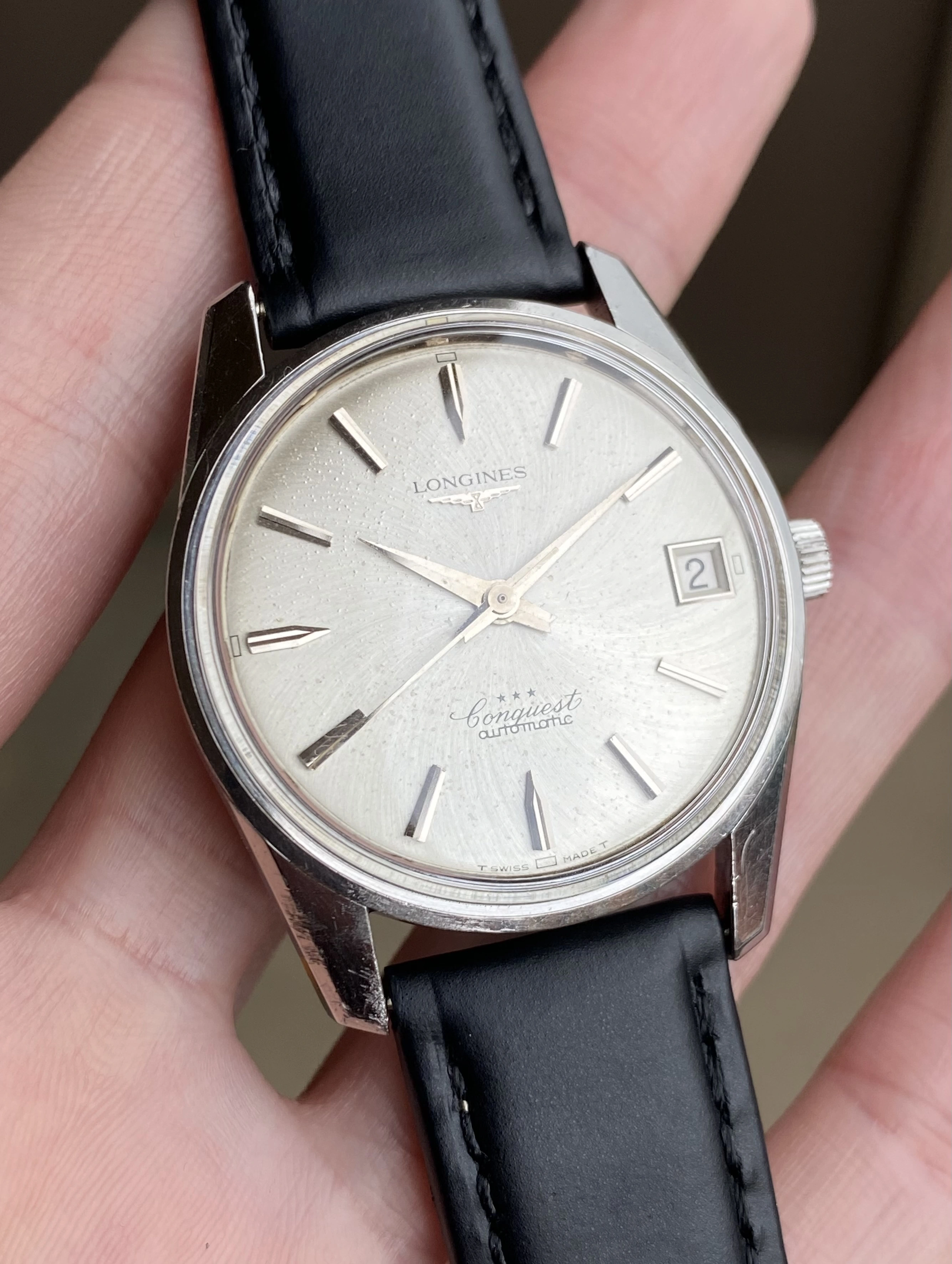 Up for sale is an original 1966 stainless steel Longines Conquest 9044 ref. The Longines in-house 291 caliber movement was serviced in 2023 (cost almost $500 with parts) and runs, winds, and sets well. The watch is accompanied with a digital copy of the Longines Extract from the Archives. See below for full details, and don't hesitate to message me with questions.