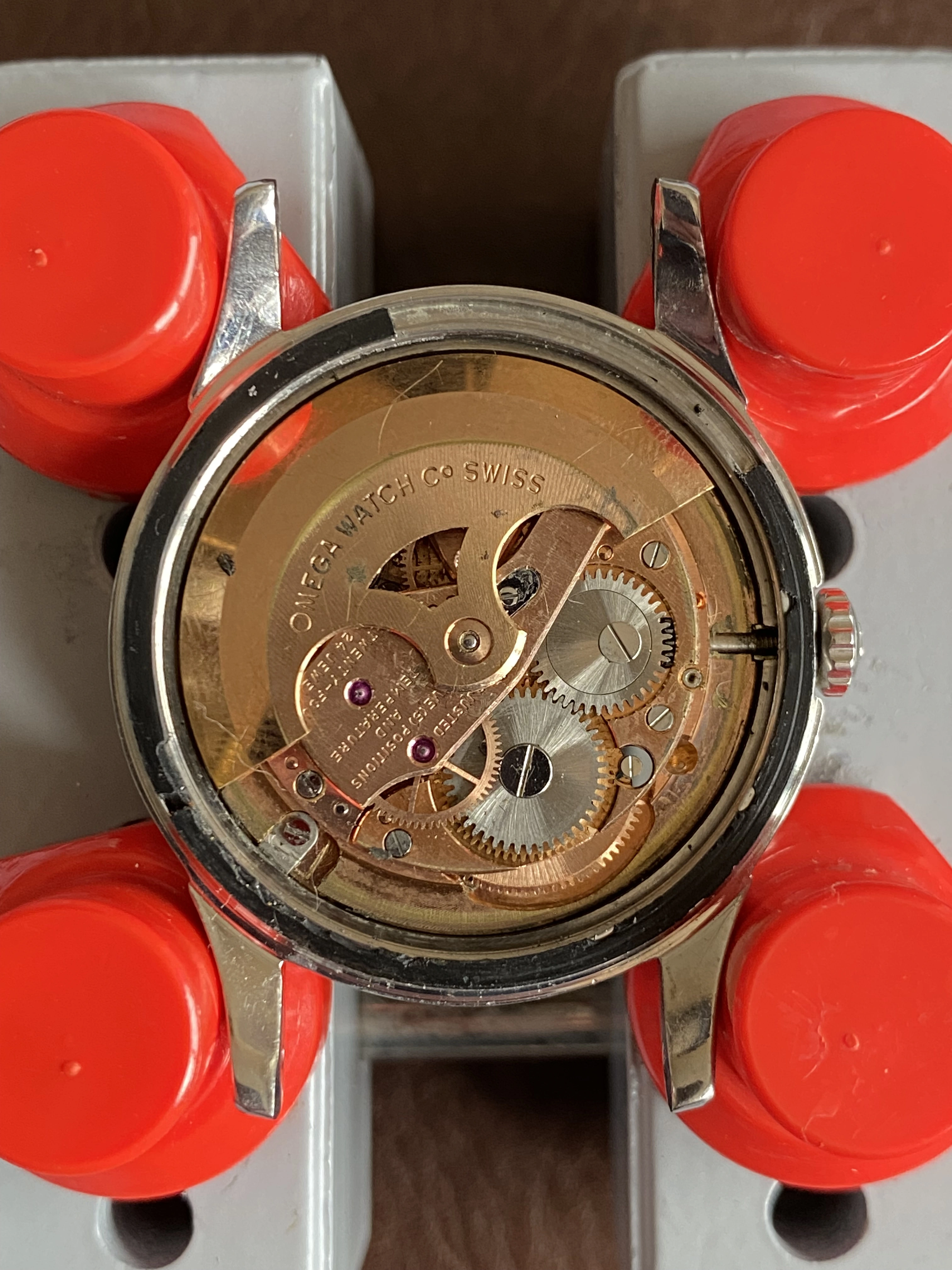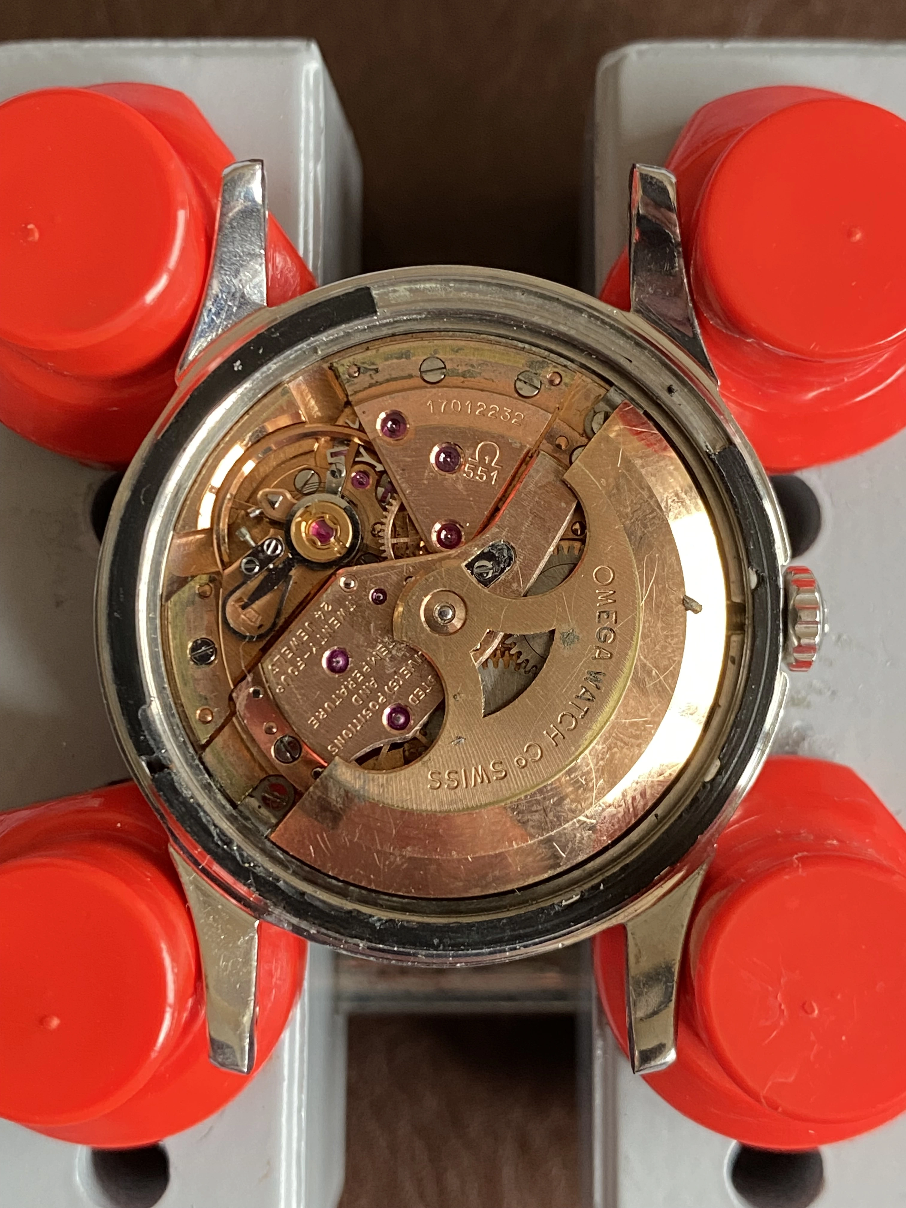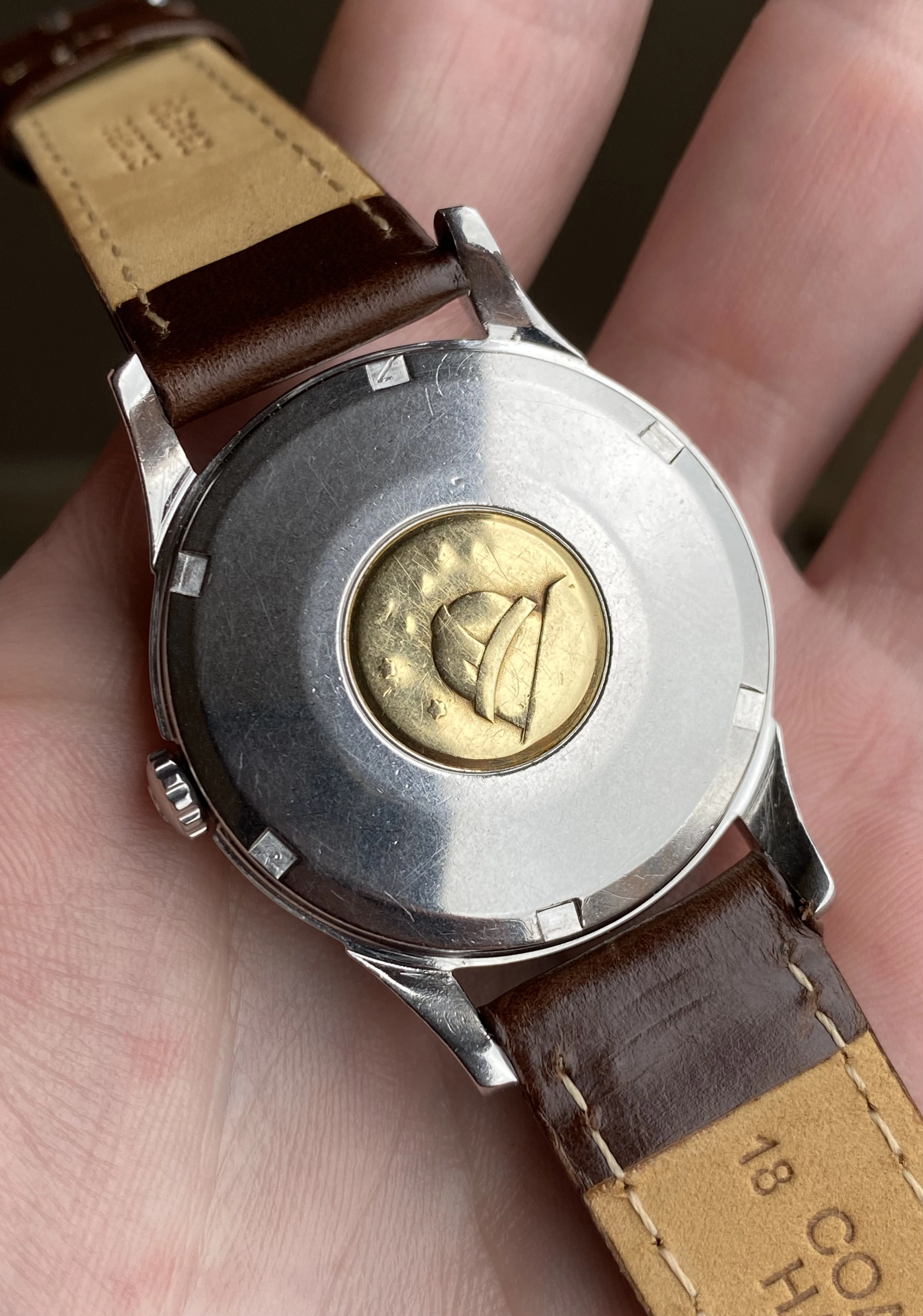 Movement: Original 551 caliber automatic movement runs and winds okay but it needs service. The caseback gasket has degraded, hence the black gunk on the movement. The 1701** serial number movement is a "special chronometer" movement that was part of a consecutive run of 20K movements that received chronometer certification with especially high accuracy (details here, though linked PDF doesn't seem to be loading currently).