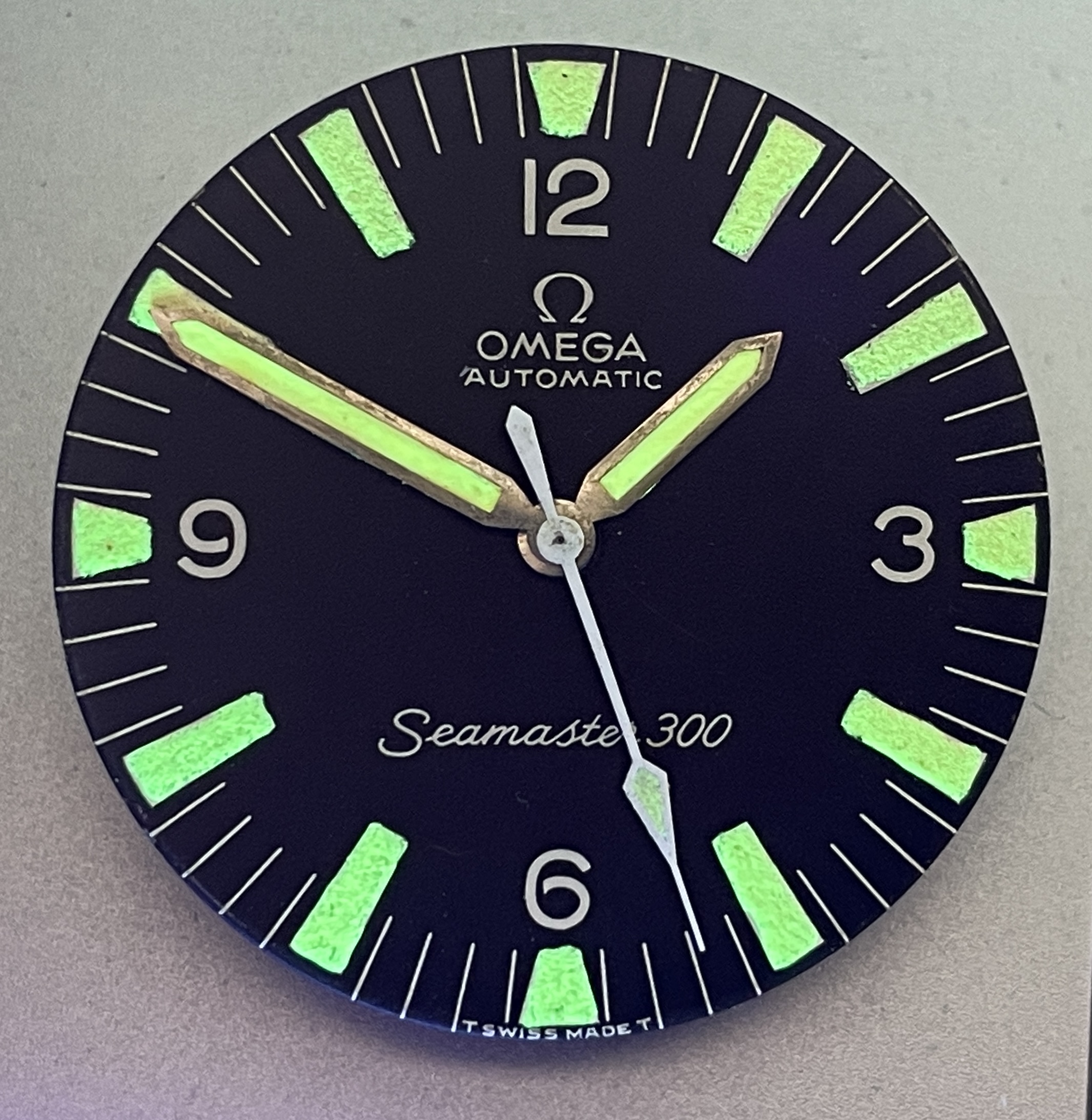 For sale a vintage dial and baton hand set for late Seamaster SM300 ref 165.014 and then it’s replacement 165.024 (pre sword hands)
