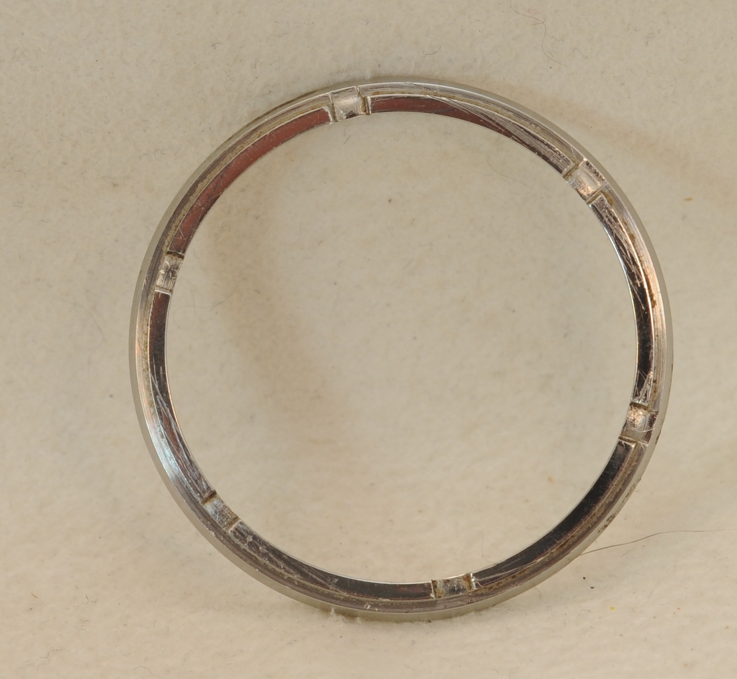 Bezel: a few superficial scars but these are exaggerated by the glossy finish and photographic technique. A very tiny nick in the metal outer bezel ring at 21. This bezel looks like new with the naked eye.