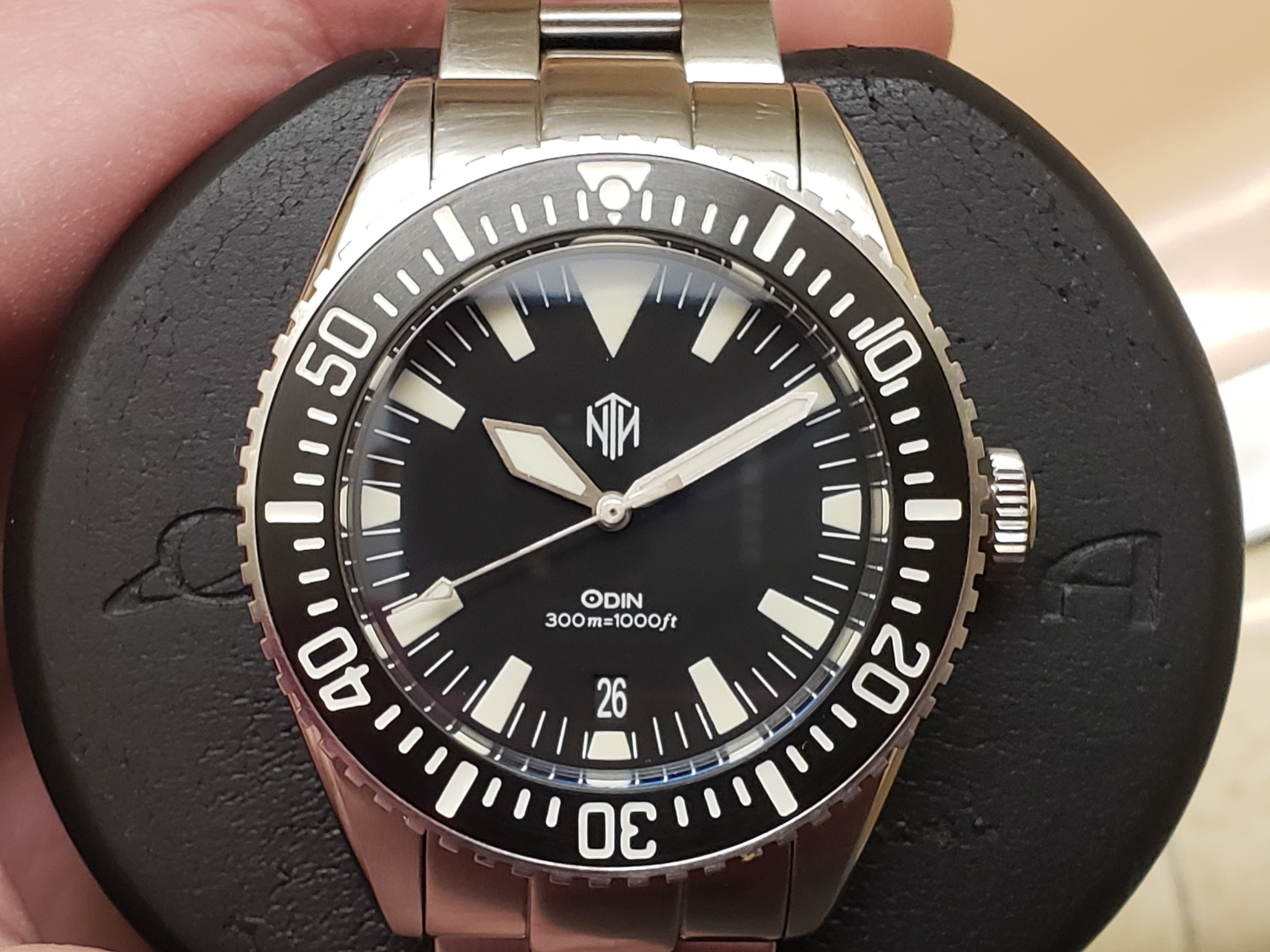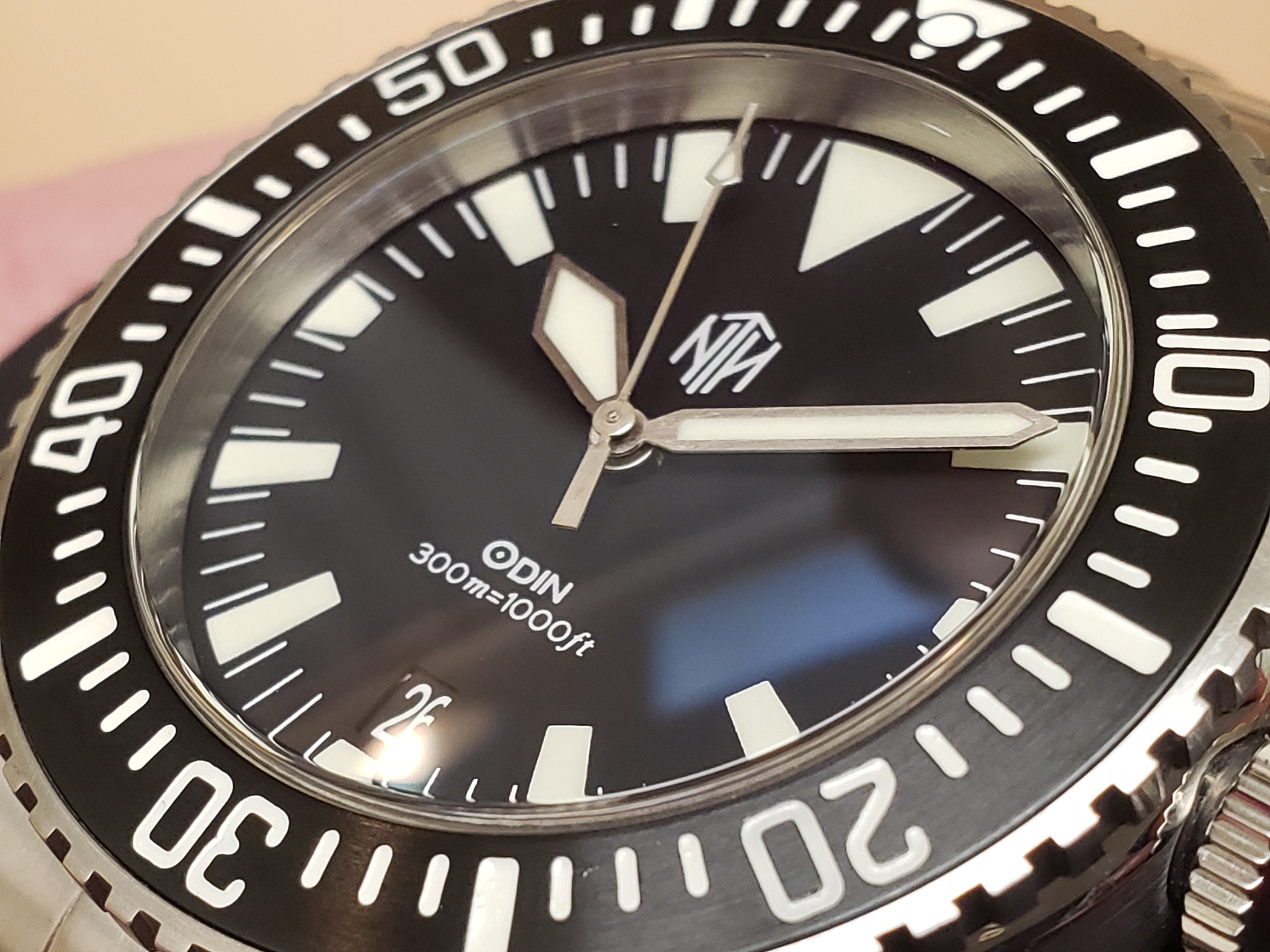 I was so impressed when it arrived that I posted a detailed review on the NTH site and I haven't been disappointed thus far. I'm selling simply to condense my collection and I just don't feel the need to wear a diver too often. The Odin model has a vintage inspired Sword handset like the 2nd generation Omega Seamaster 300's.
