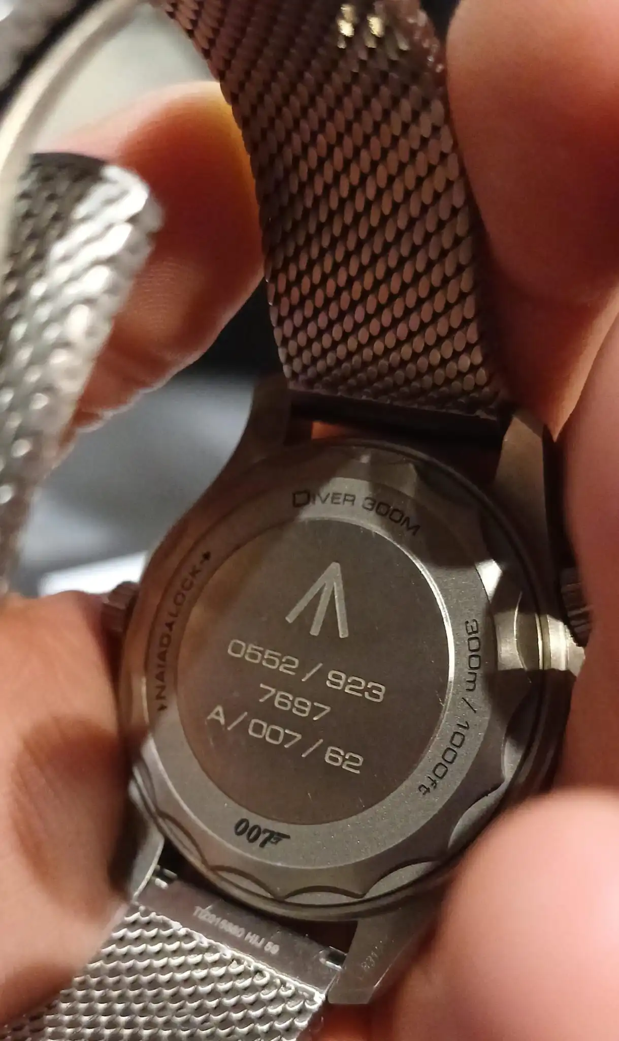The case back has NAIAD Lock, so it should be aligned properly with all the 007 markings on the back in proper orientation.