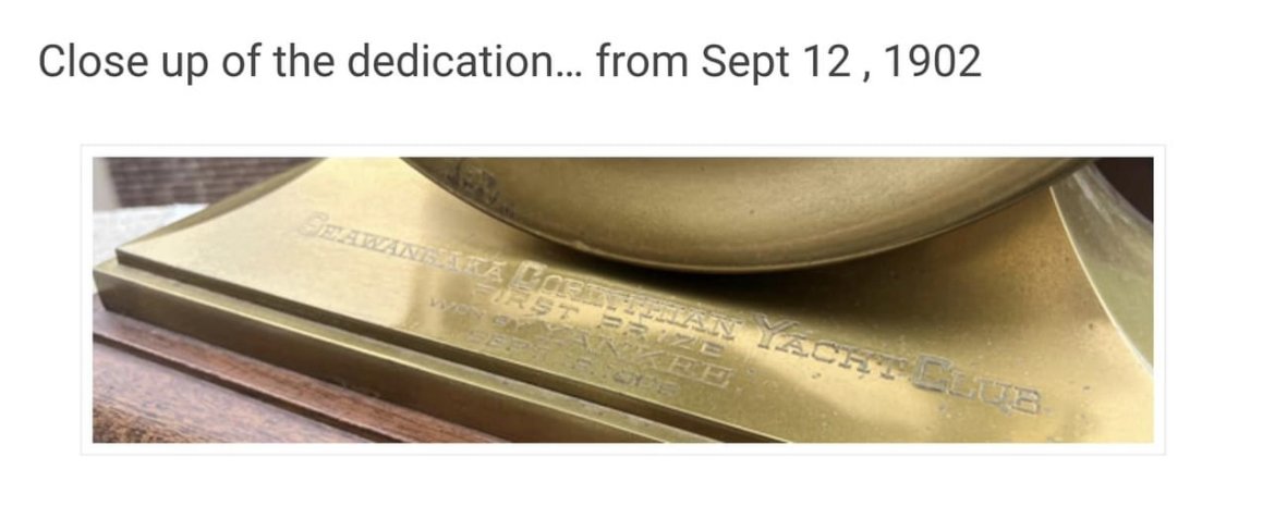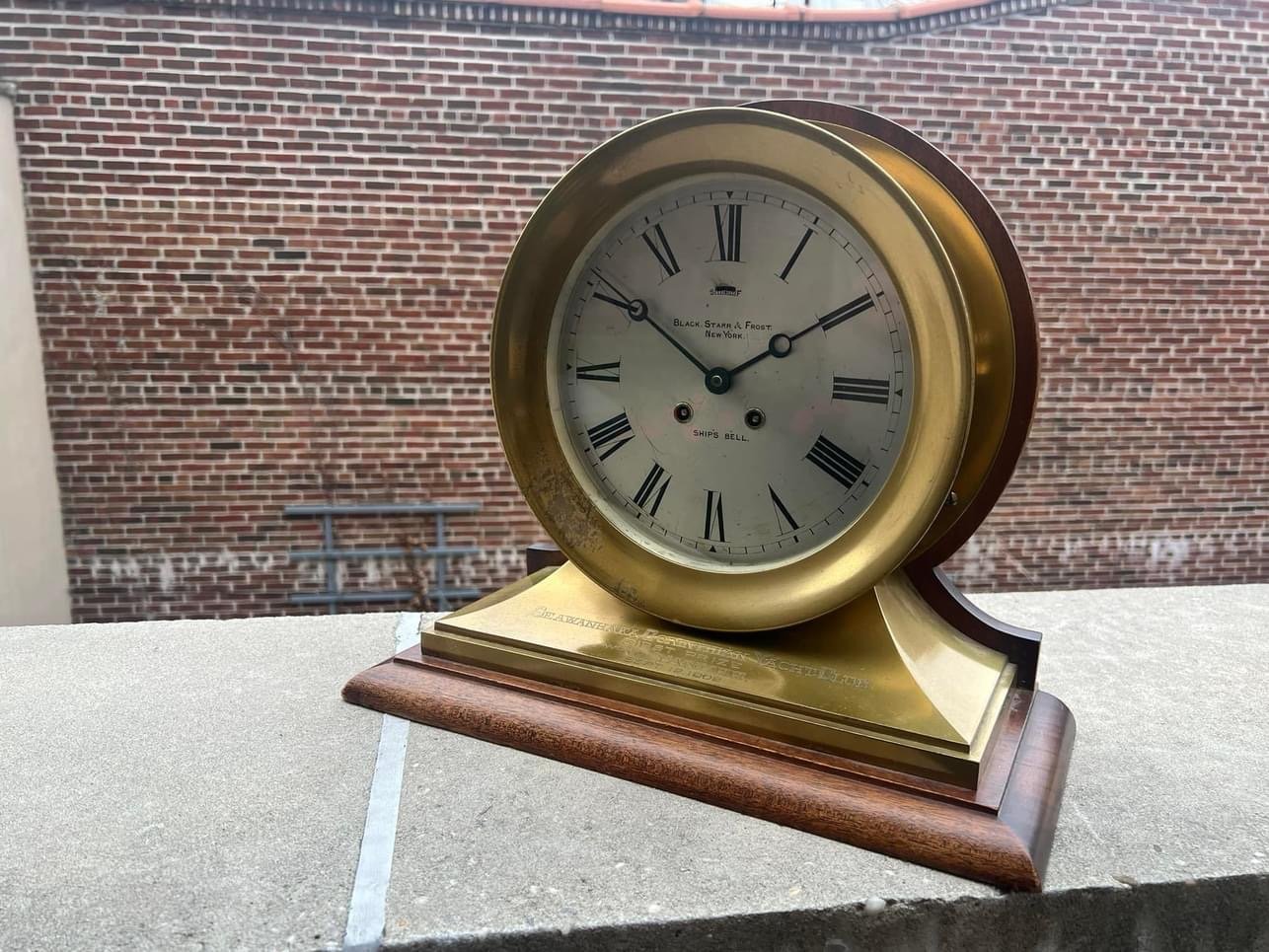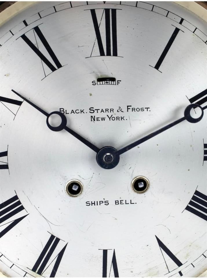 "Dial marked Black, Starr & Frost New York, Ship’s Bell. Engraved plaque reads: Seawanhaka Corinthian Yacht Club, First Prize won by Yankee, Sept. 12, 1902. Serial number 6324 on back of mechanism and the back of the case." Plus it came from the collection of a founder of the NAWCC was a bonus....