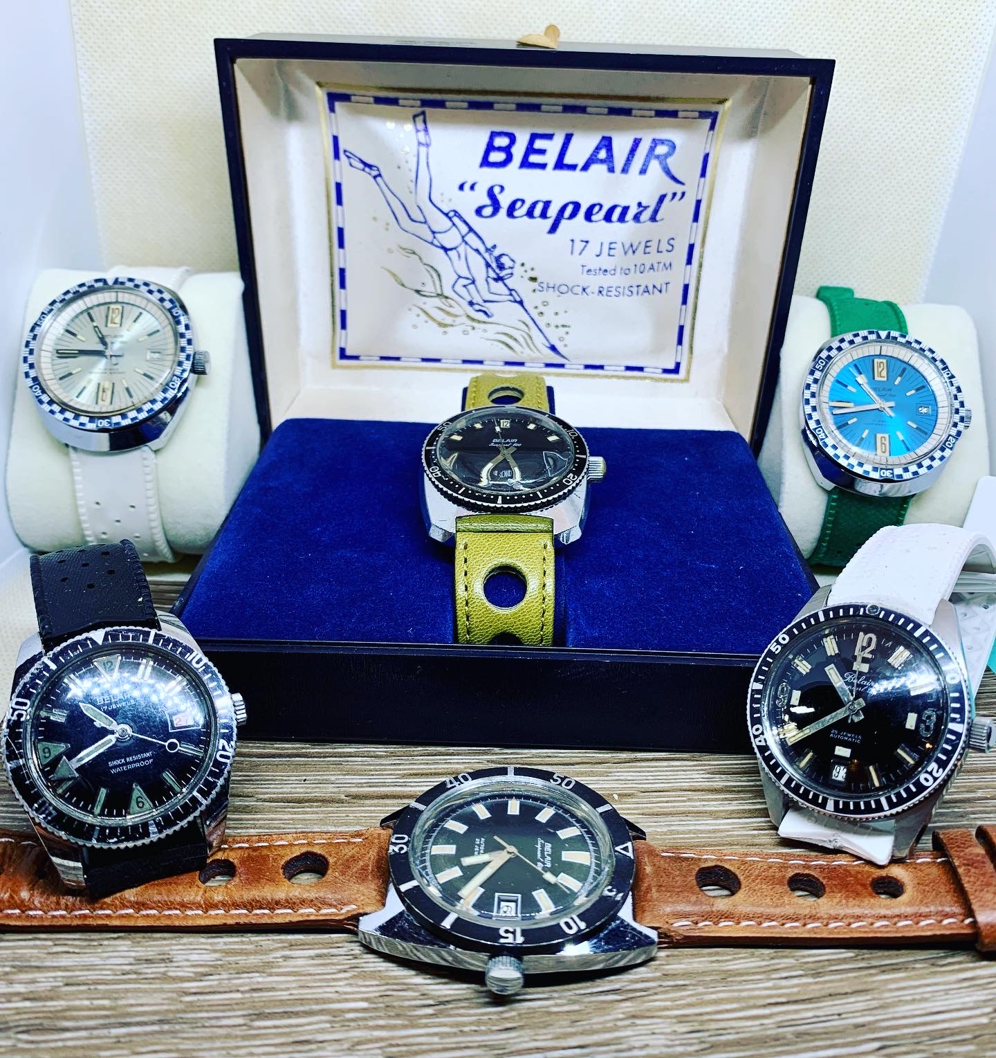 The movement factory in St. Croix is still operational as well! The name “Seapearl” on their diver line, was supposedly licensed from Enicar, and is still sold as a line of Belair watches.