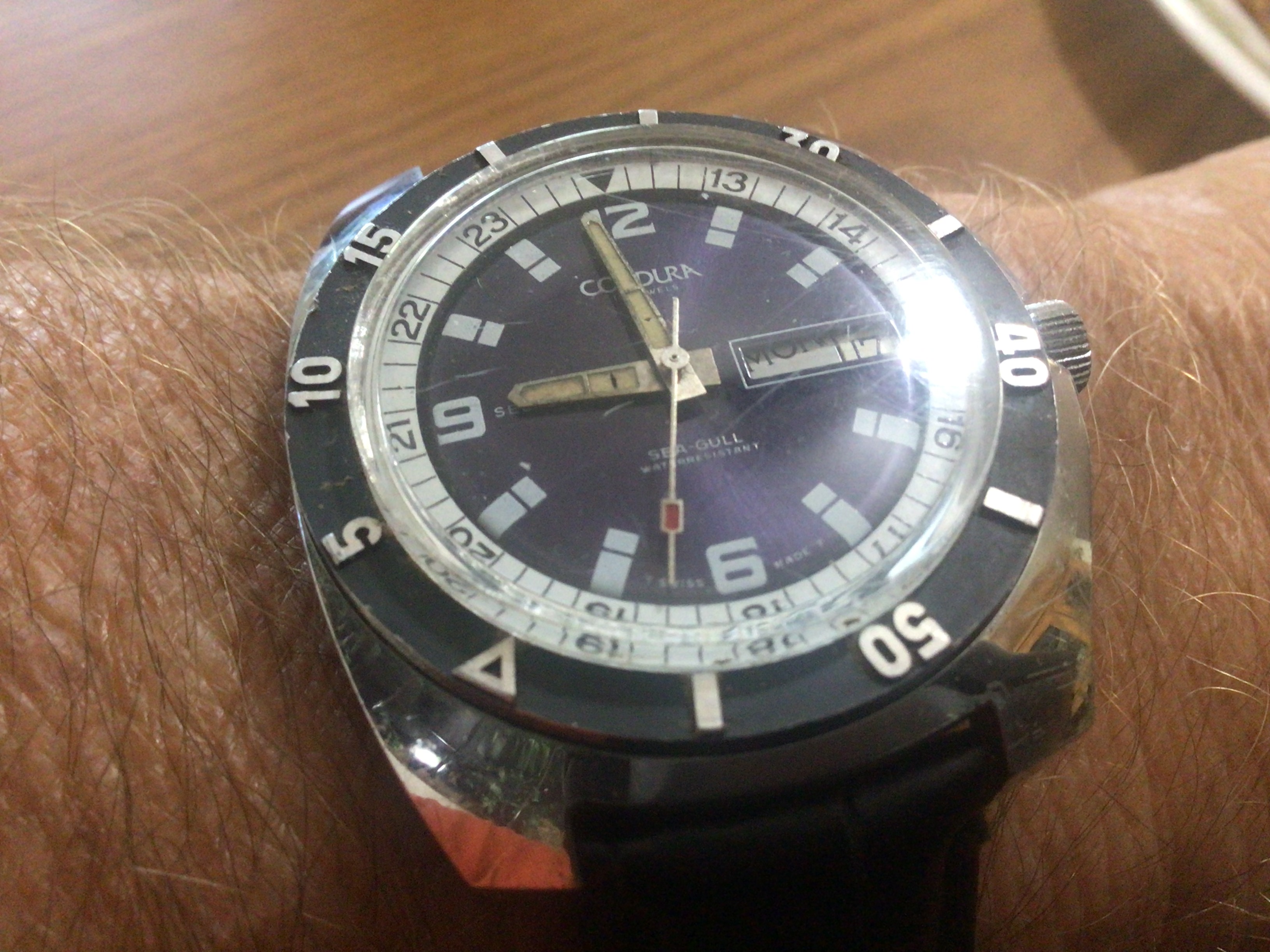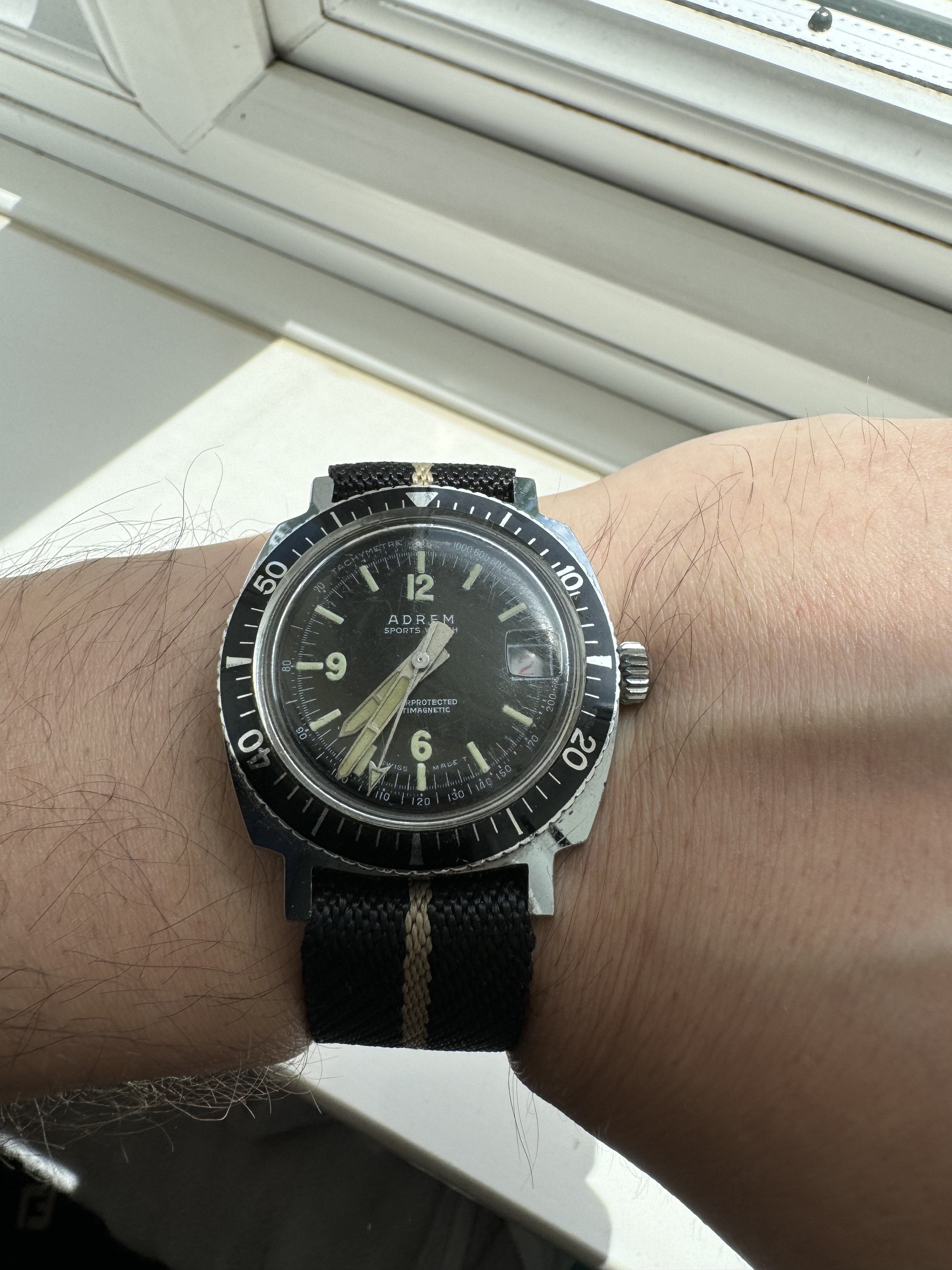 ·Here is what I call Obscure one you don't see often seen 3 other members with one so rare and only remember seeing one for sale on the MWR PX some years ago was how this one caught mt eye. Titoni seascoper diver they came in many references mine 727-360. Like the red triangle on the bezel and the word seascoper like its floating in the ocean on the dial. Saw photos of a Felco seascoper also with a photo of the movement that was marked Titoni think these brands are connected. Also like the crown on this model than other Titoi Seascoper not wimpy looking.