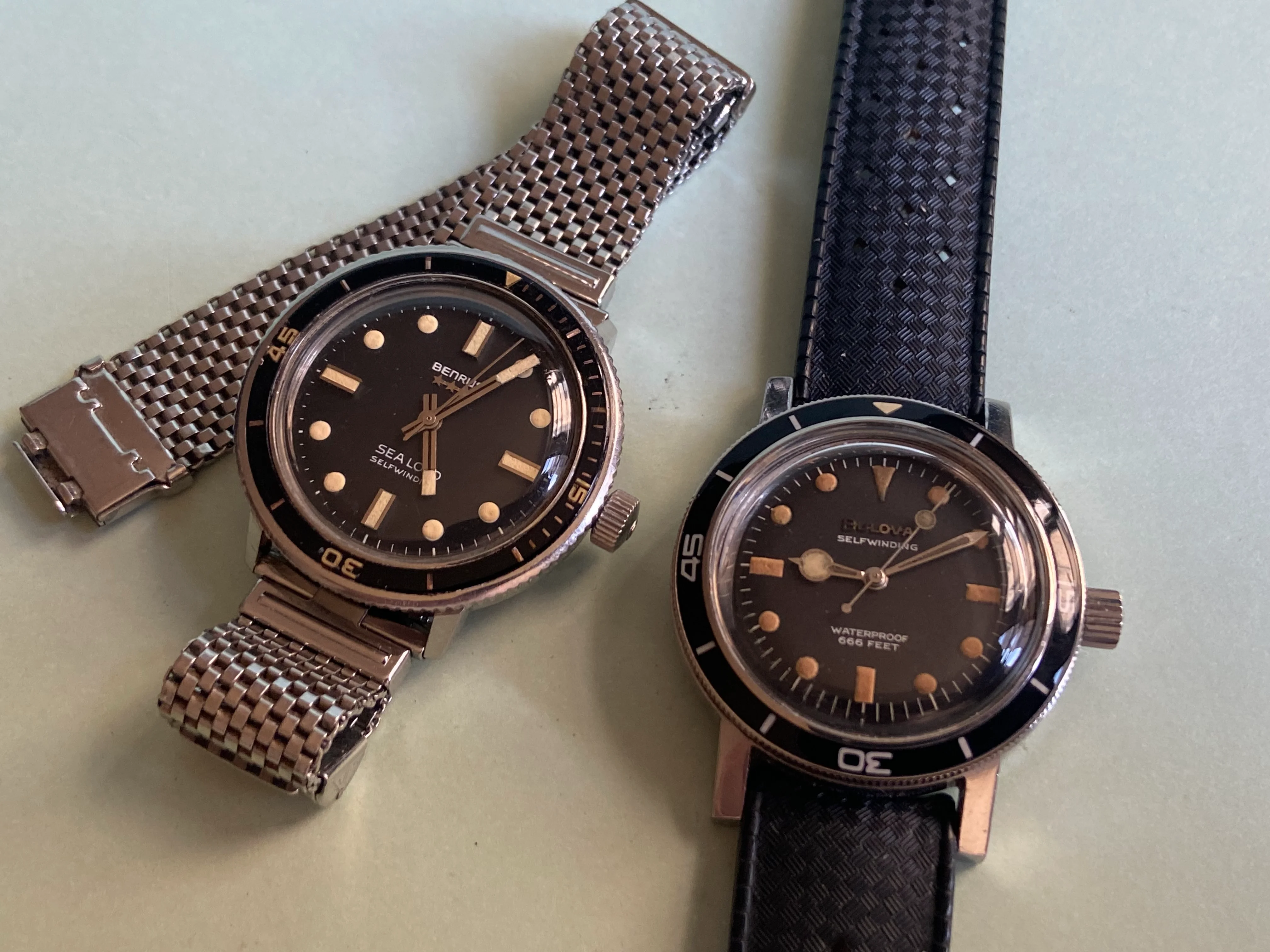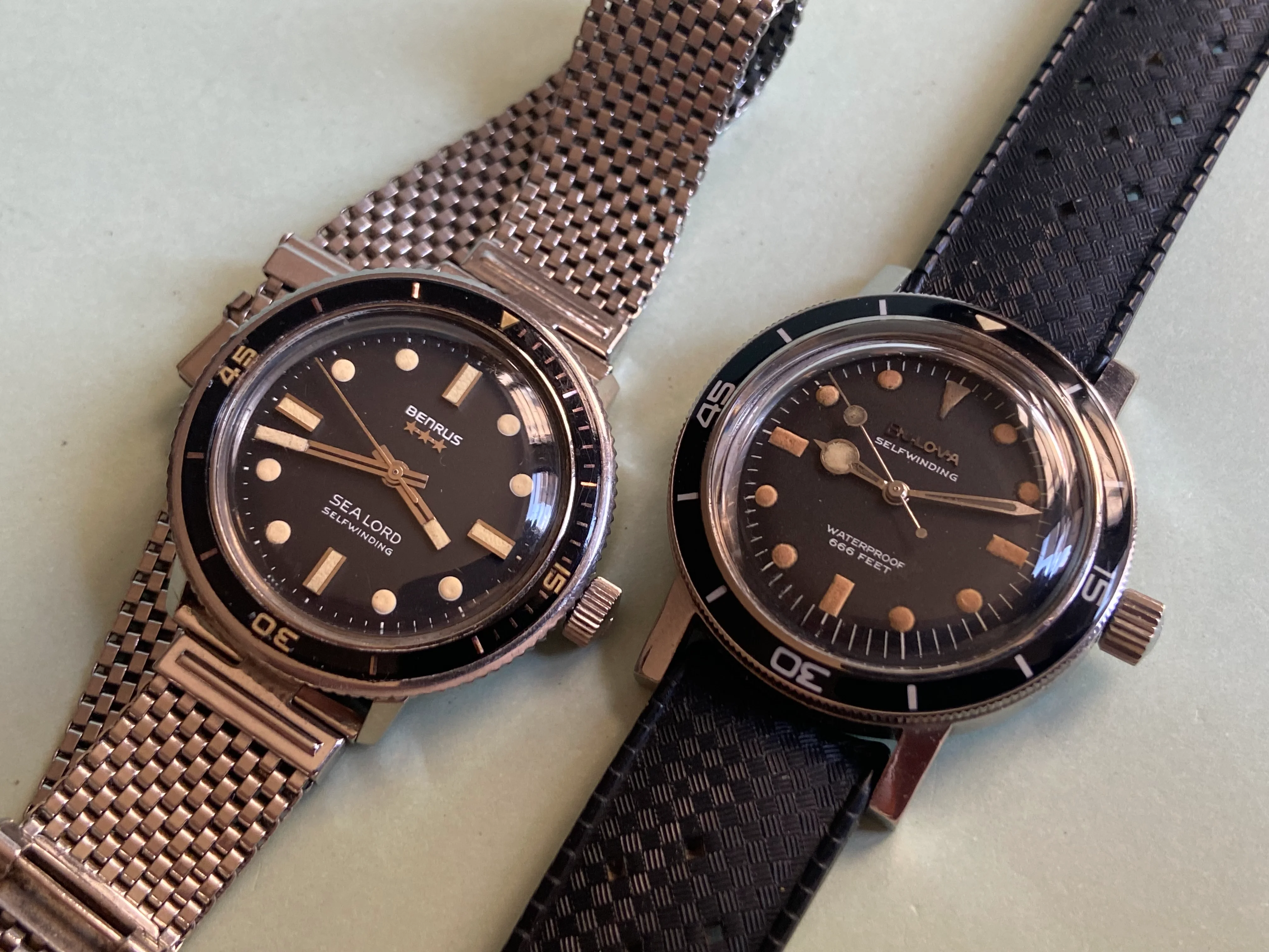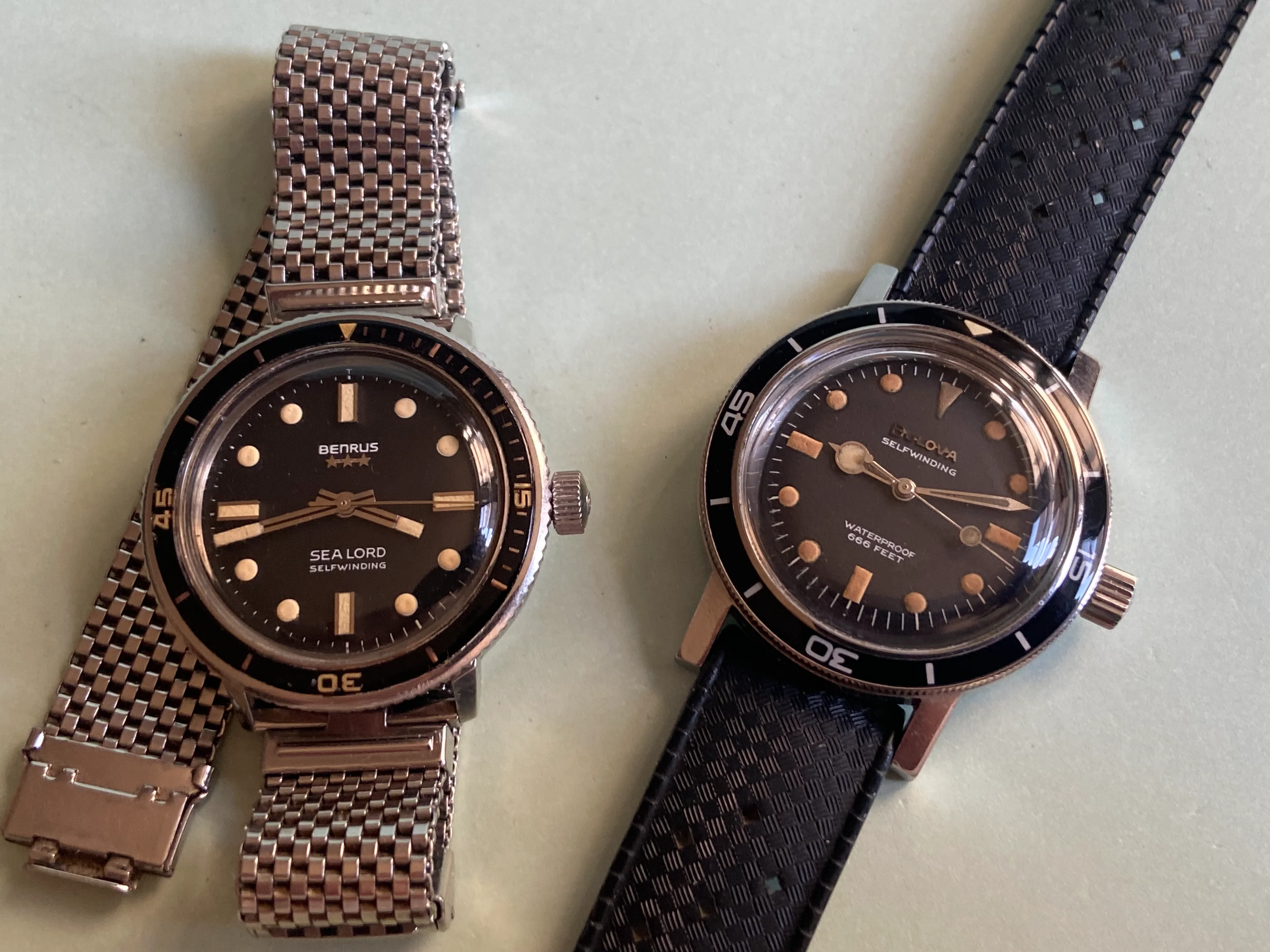 During my diving days, it was Dacor as my go to brand for regulators and other dive gear. This baby landed Sept 16 and I have to say the dial and crystal is in great shape and the case looks good too. The endlinks on the bracelet are a tad wonky and might need a little sympathetic bending. Thankfully I have a tropic strap that works. It definitely needs a service so it's presently residing at my local watchmaker., The watch was made by Titus in Geneva and I think this one dates back to the mid or late sixties. It has an ETA 2472 movement. Definitely looking forward to having her back!
