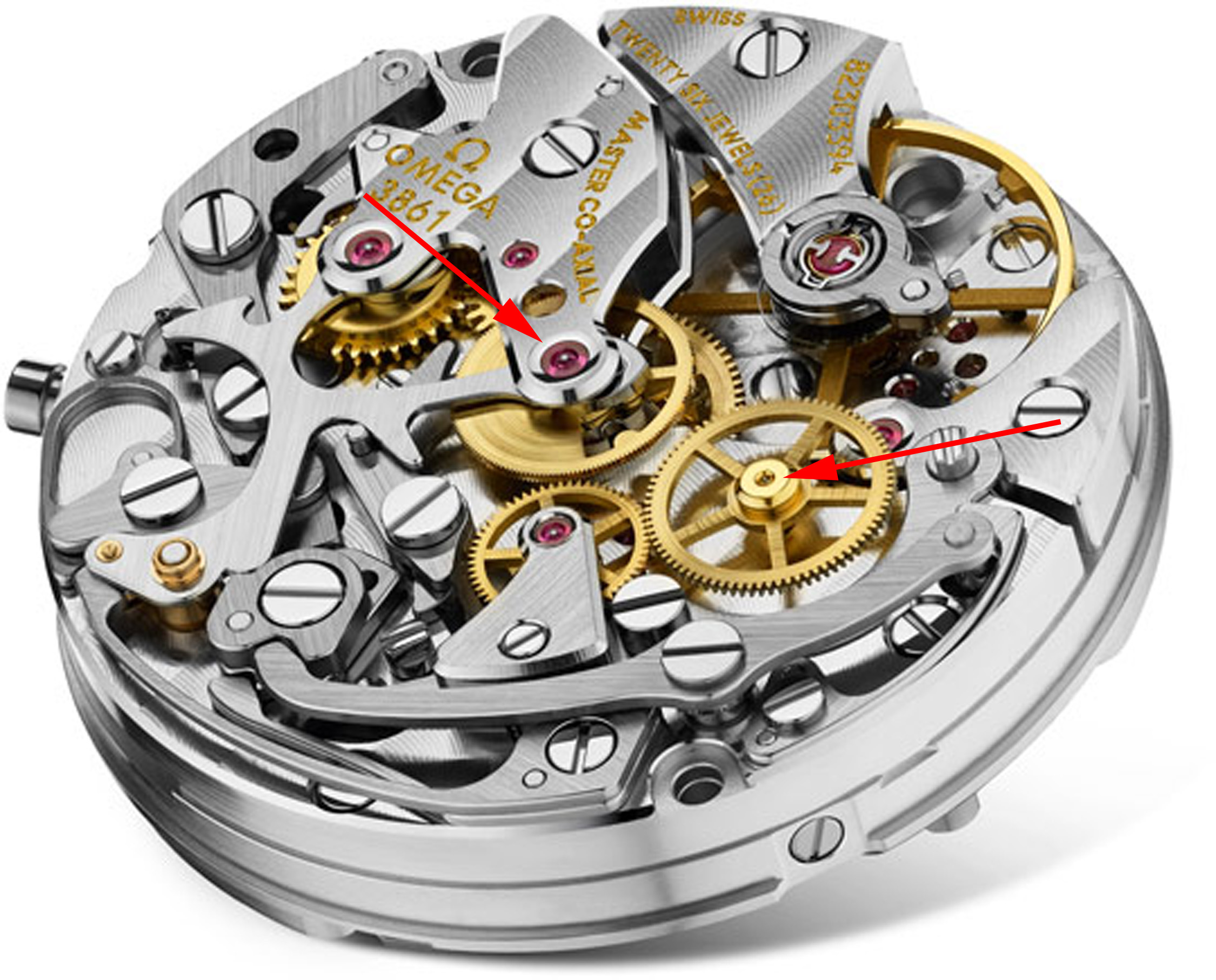 I don't think there is any separate mechanism on the back, just a hand with the Snoopy capsule that is on the central chrono shaft, and an earth disc on the seconds sub-dial shaft. Those shafts would have to be a little longer to accept the hand and disc so their part numbers are probably unique, but everything else in the movement should be standard 3861, wouldn't it? People are oohing and ahhing over the back but there is no magic or special automaton mechanism here. It's novel, but many watches have had two faces driven by the same movement, plenty of Reversos have mechanisms on the back side.