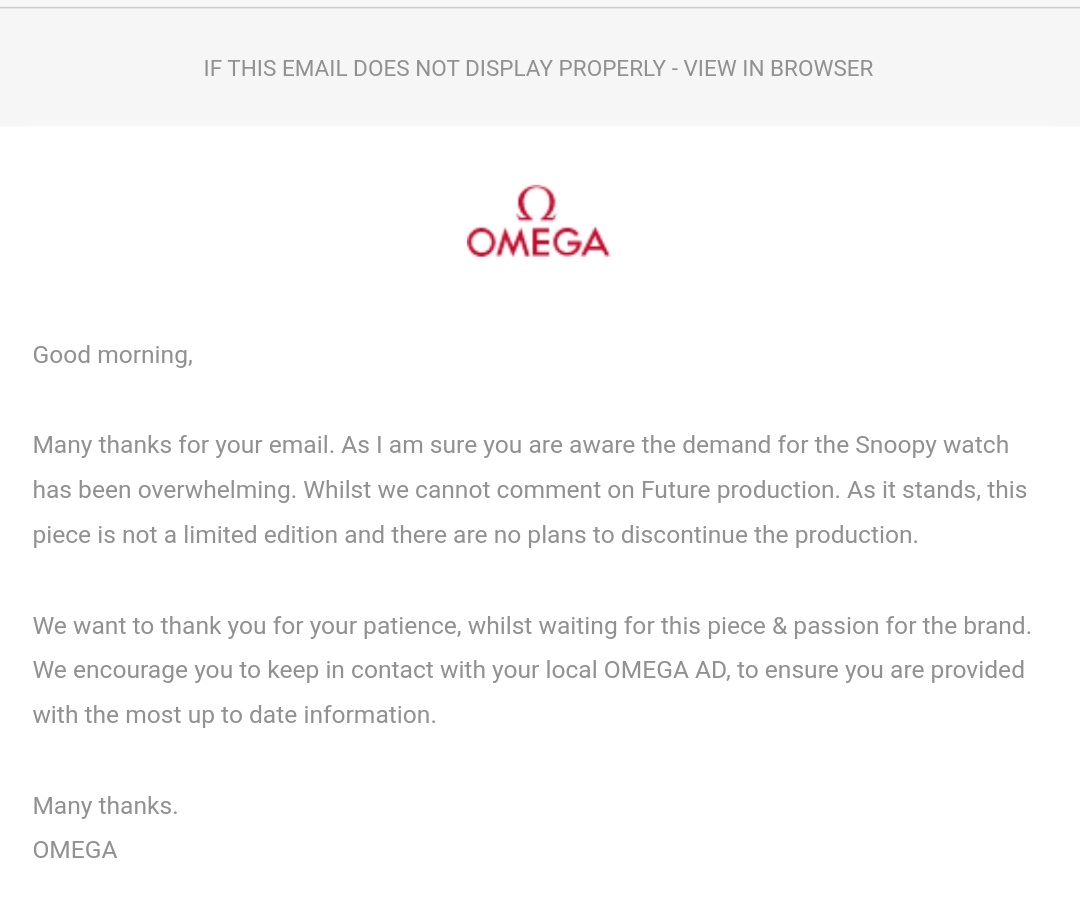 ·I'm in Canada and we only have 1 OB on the West coast, so it makes no sense to trying to get one. I have a deposit at my AD in the GTA and have given up hope and thinking to get my deposit back. The last 2 years have been an absolute embarrassment and have totally turned me off from Omega and can't see myself buying another one. Rolex plays AD games yes, but don't take my money for 2 years with zero information on delivery.