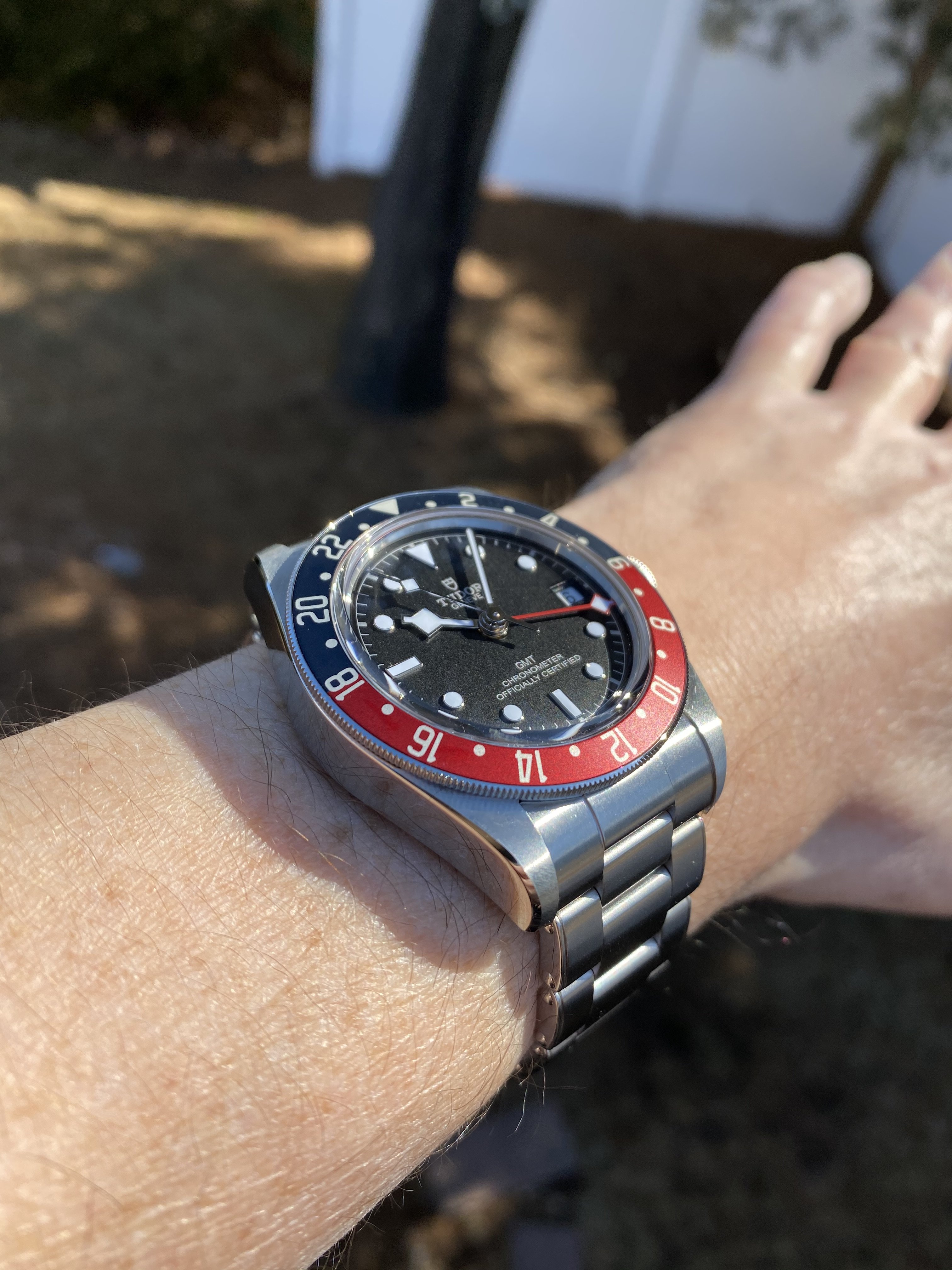 thanks for that last comment, actually i had the tudor BB GMT in mind when saying this. I am ok with it now on a strap, but on the bracelet, i feel it needs a micro adjust and even they tried to shave that bevel off the sides in the bottom, i do feel that slabbiness.... would you mind posting a side profile shot? and did you also get a bracelet with it