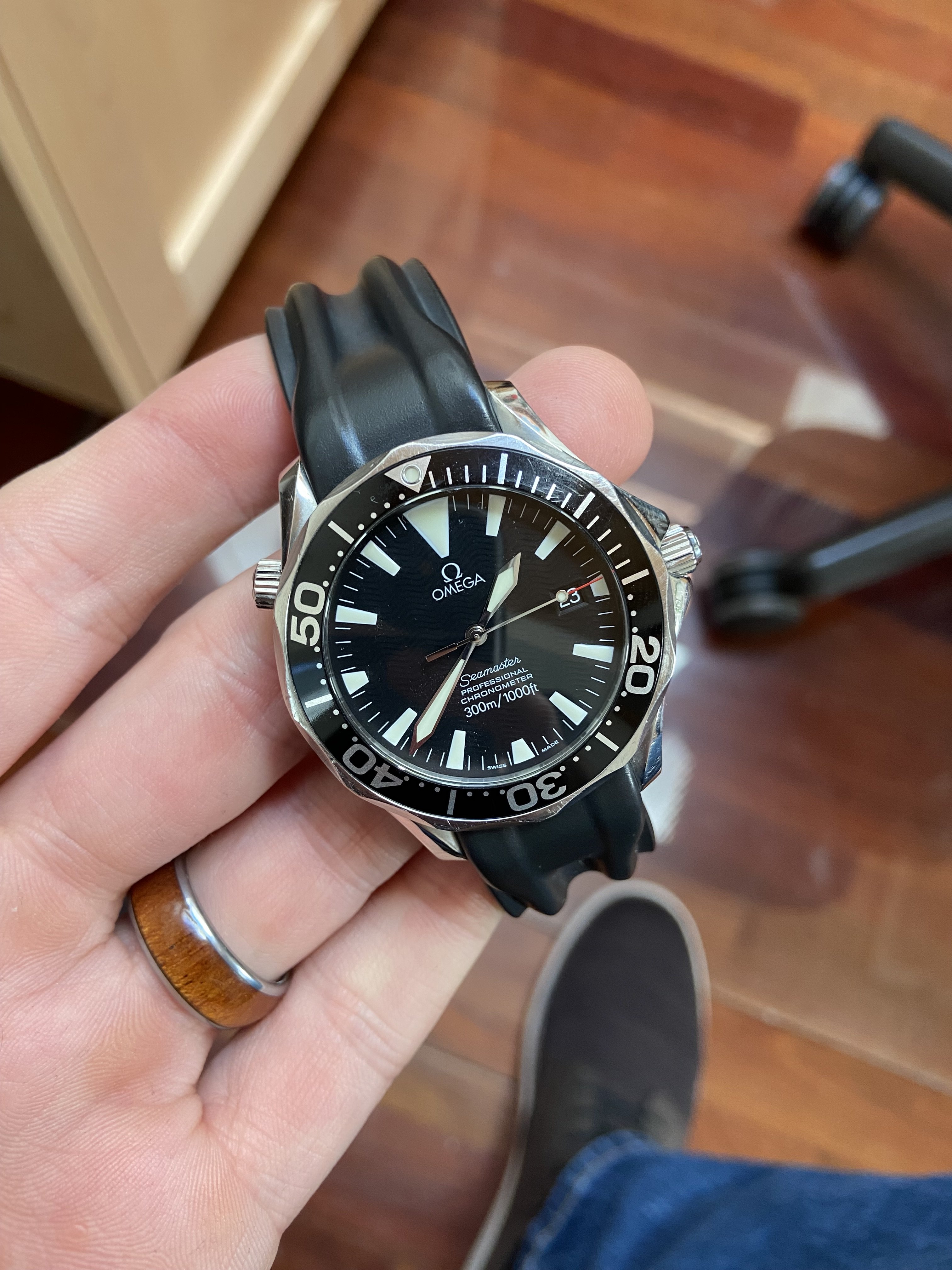 edit to add: a bit thick and clunky of a clasp but by far my fav strap for a Seamaster.