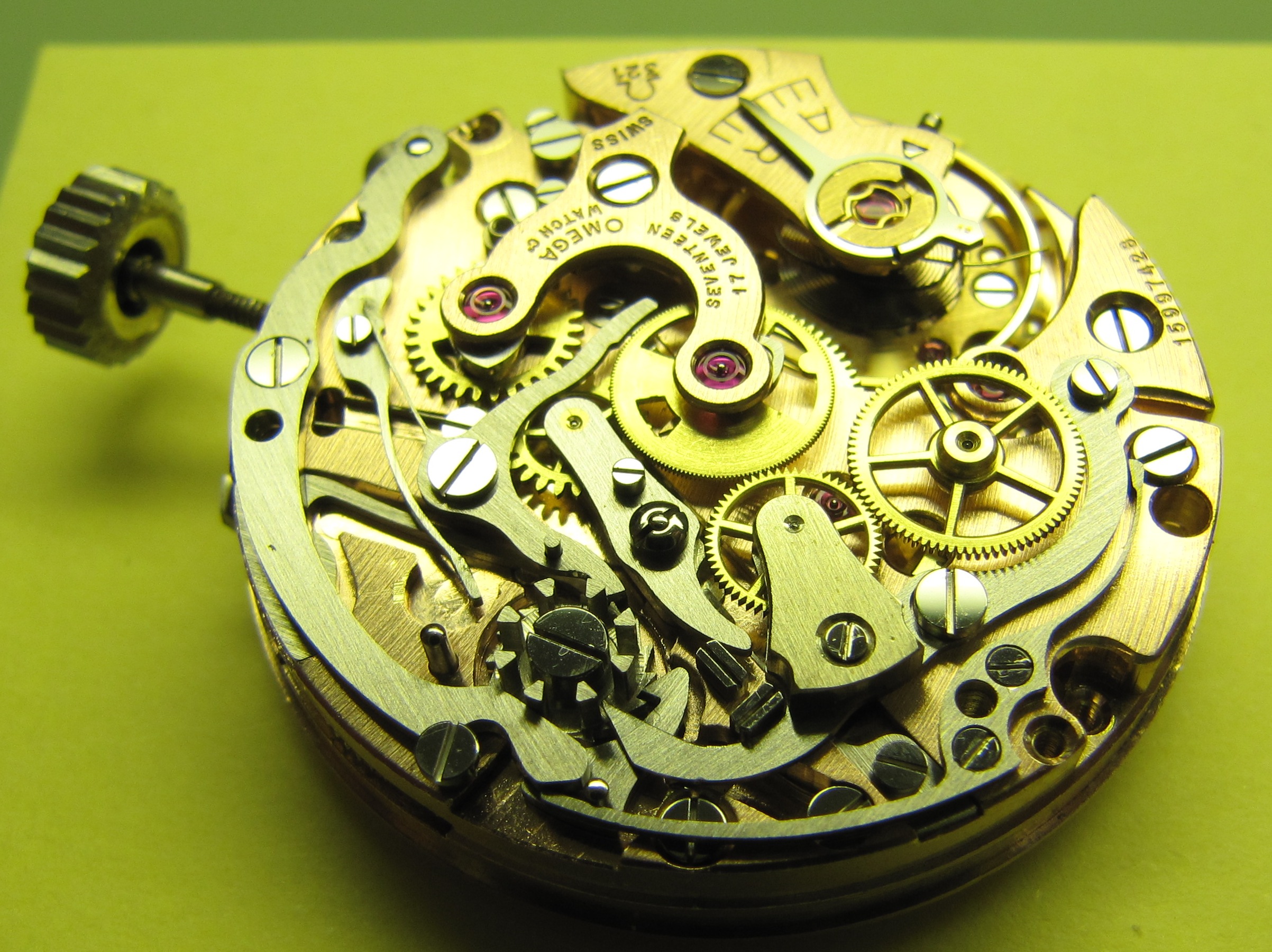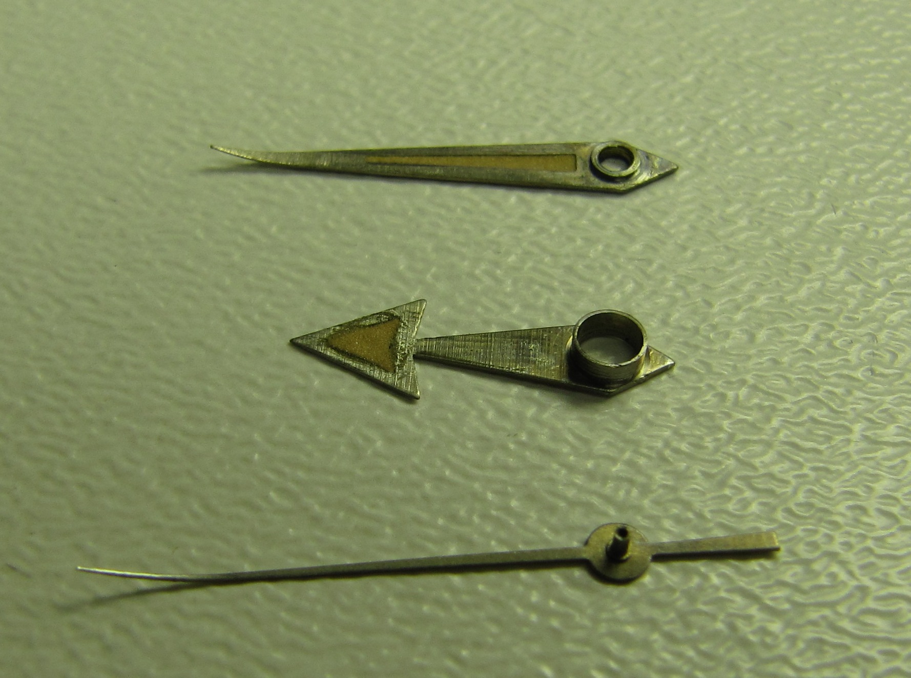 Despite the non-originality of some of the components and the evidence of many years of wear to the case (Simon thought that there had probably never been a hippocampus on the back and the SPEEDMASTER on the step is very worn), the movement is original and in good condition and I love this watch. Simon wasn't sure about the hands and I have included a picture of their undersides and would appreciate your opinions about them.