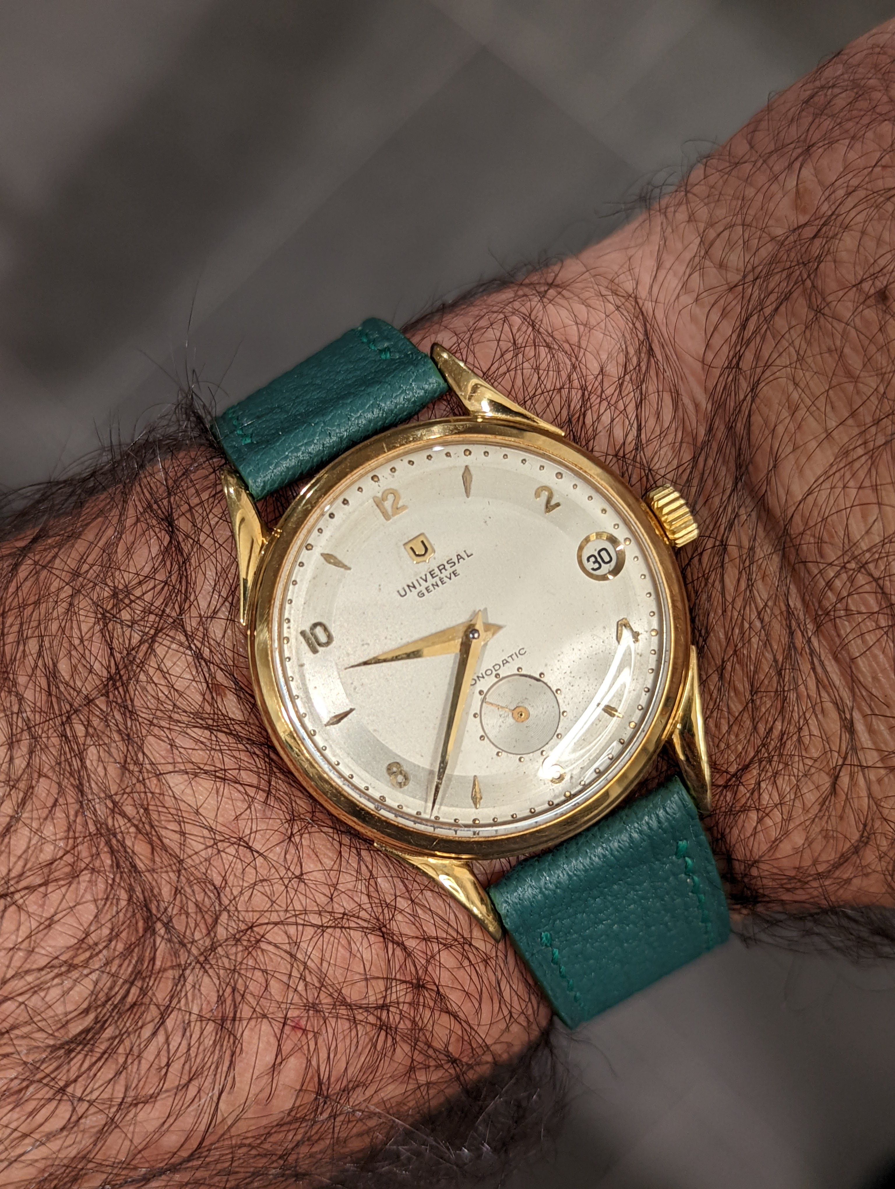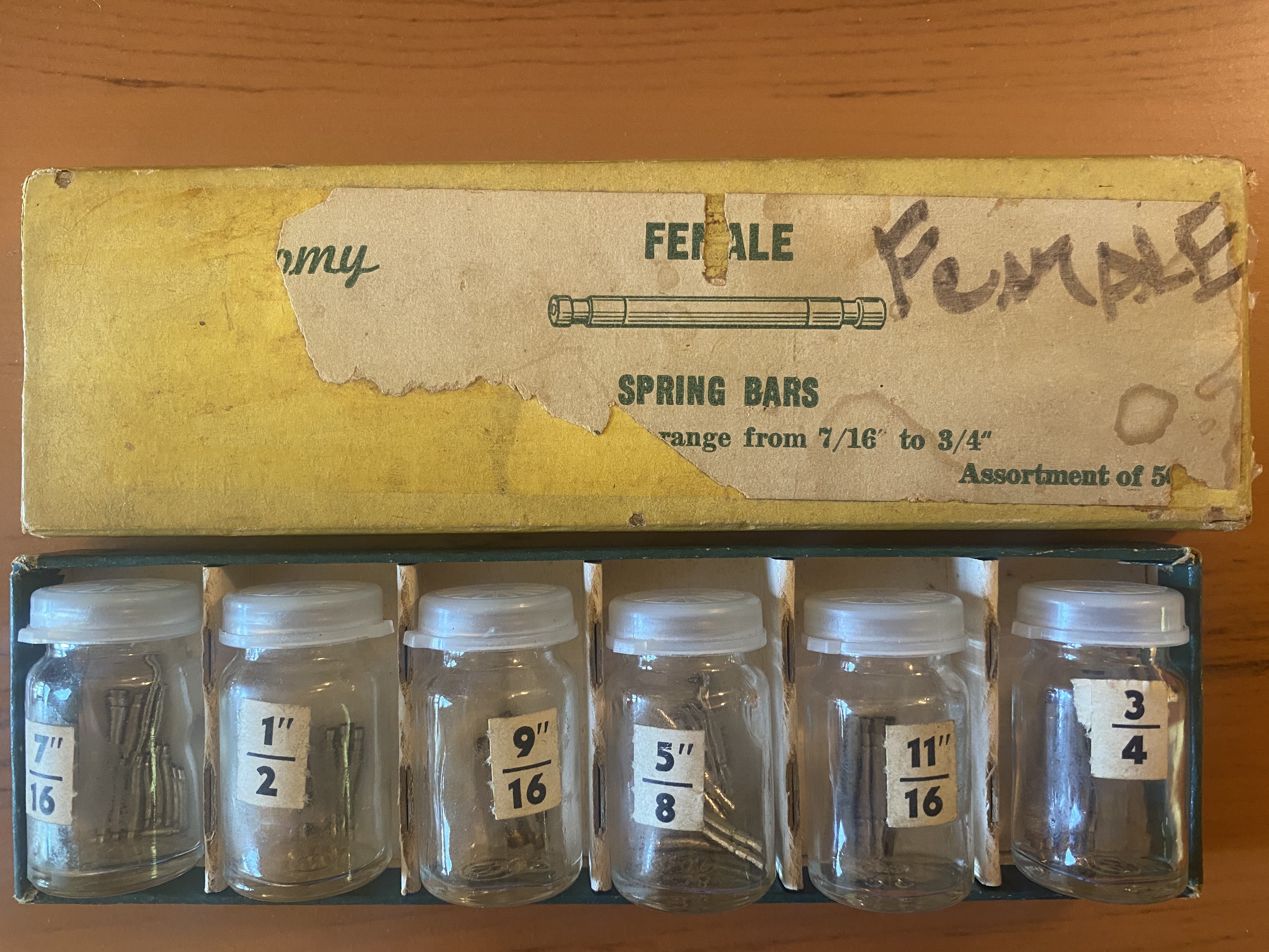 Update: mission accomplished. I ordered old style spring bars from eBay for a painful price, but they are actually very easy to mount. This Delugs strap is nice and soft so wasn't hard to shape into the lug space. Nice and Christmassy!