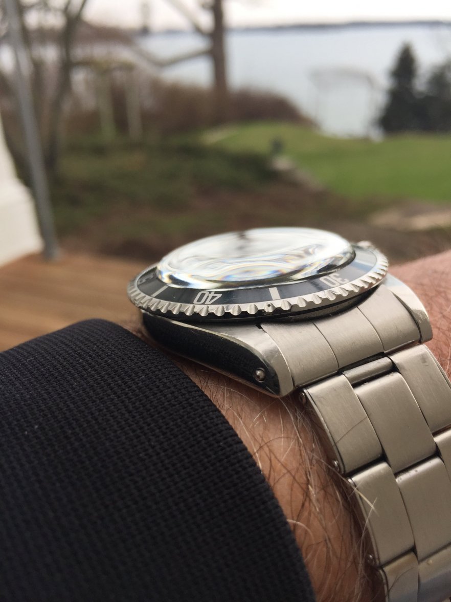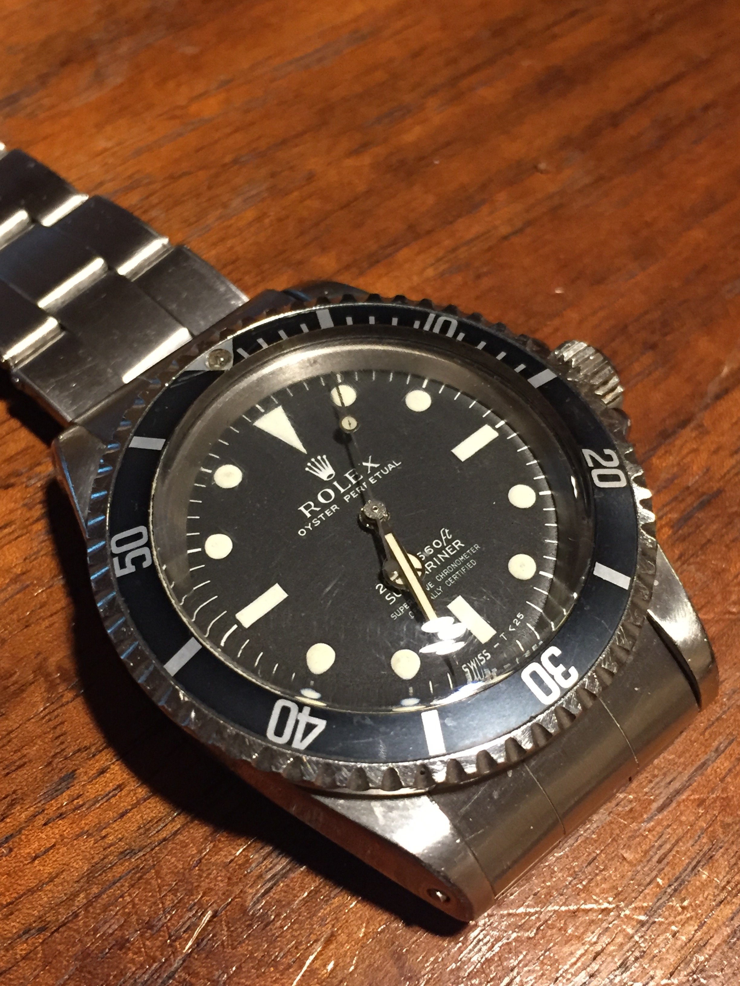 These are interesting. Here's the story by jedly over on VRF During the transition phase from the gloss dials to the matte dial we would see all the way through the 1970's there was a roughly 12 month period where these interesting dial were used..all the ones i have owned have been dated 67). They have the luminous mixture and application of a gilt dial but on what would become a standard matte dial layout, i am not suggesting this commands a premium, just that you see very few of them and with their big 'half malteser' markers that just like a gilt dial still can be stirred to give some luminousity they certainly wear well on the wrist and are unmistakably 60's rather than 70's. And They STILL Glow!