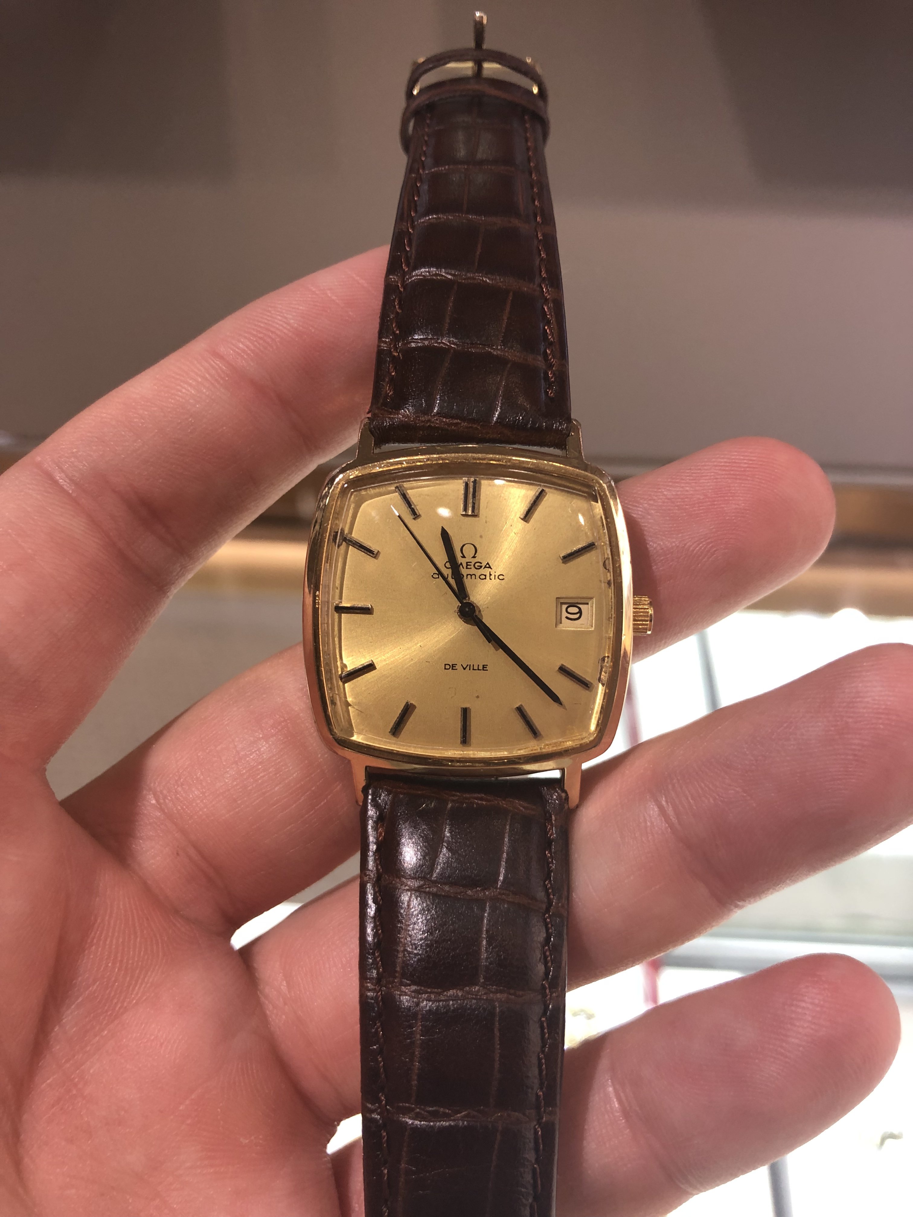 The tarnish / patina look correct. I’m guessing the crown was replaced as it does not have the Omega logo.