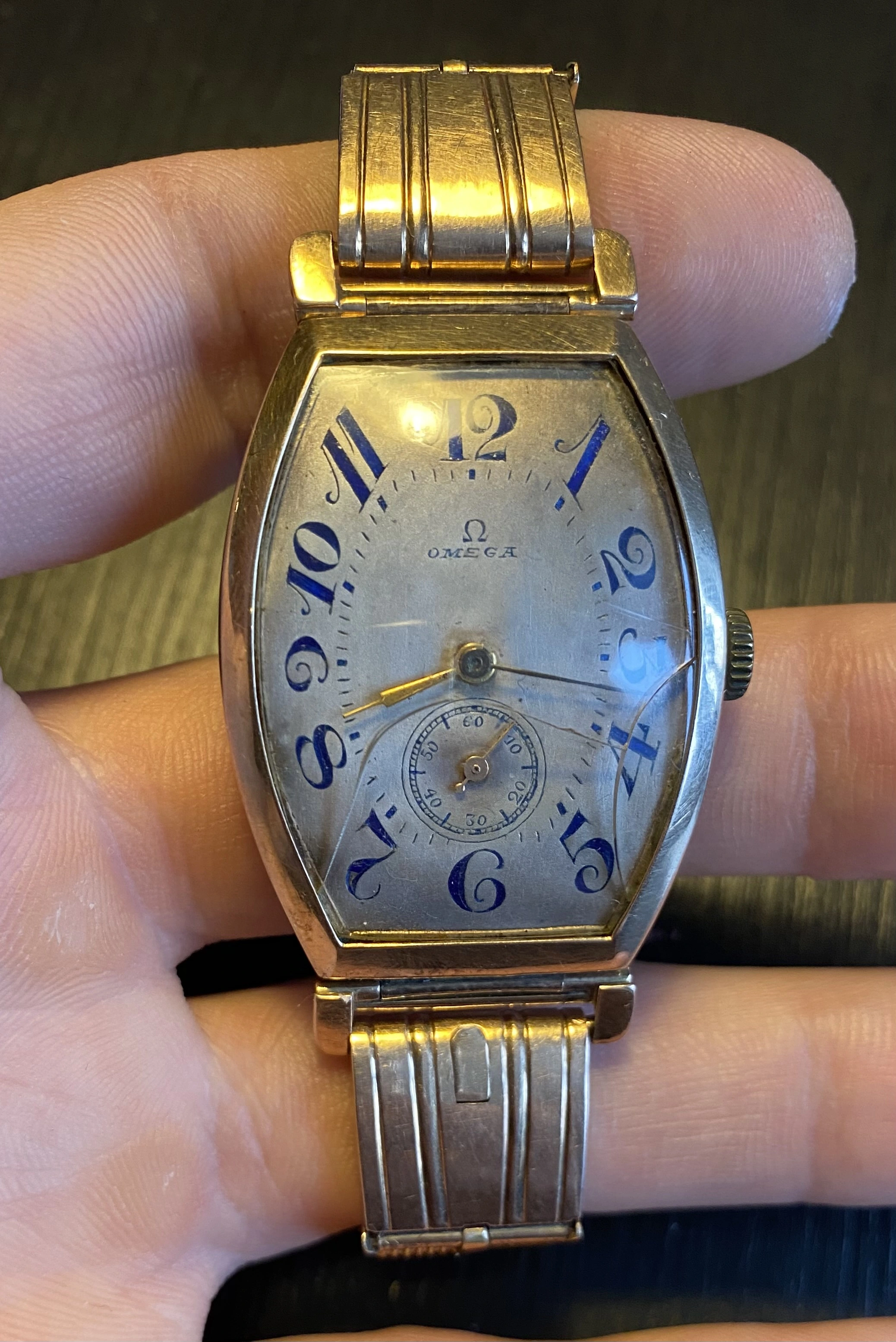 I found a few pictures of early omega tonneau and they shows different shapes and color of the hands, mostly black or dark blue, so I have a doubt whether these gold hands are original or not.