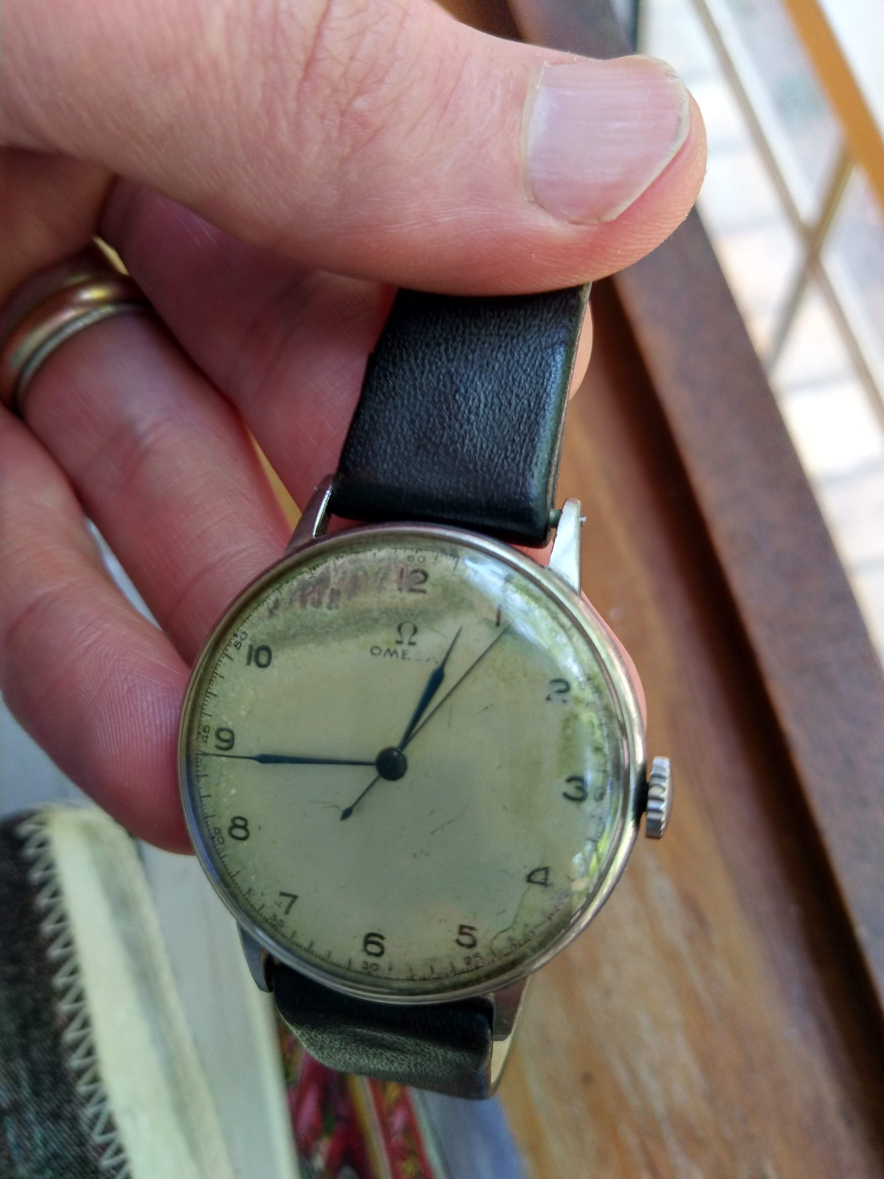 I am a bit of a watch newbie, I just purchased this watch from a garage sale in Australia. The women selling the watch said that it was her fathers, he was born in 1904. I don't think that I was scammed because I didn't pay much at all for it. As you can see it has a bit of damage to the face. It is running at seems to be keeping good time. I am not sure how to open it to check the movement. I have had a search through various images, from what I can see it is about a 1930-1940 model, but I am not sure which one. Many thanks in advance,
