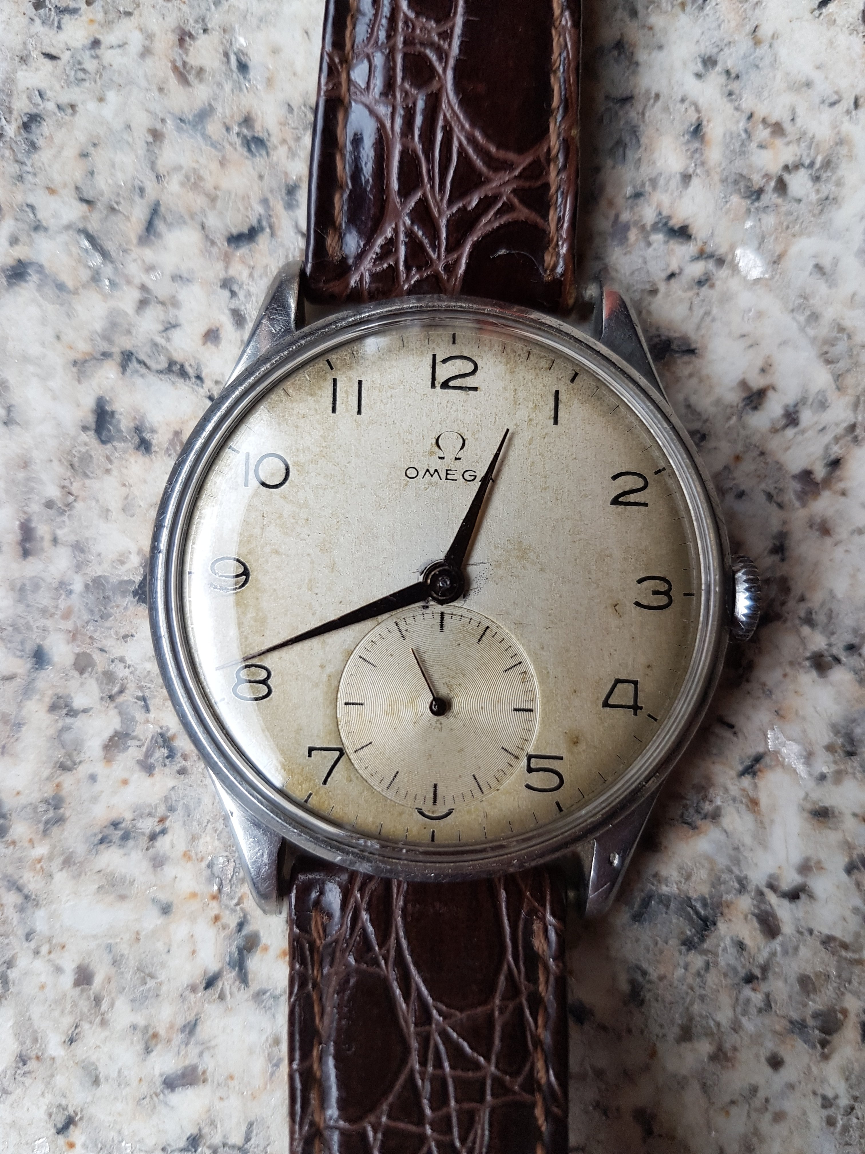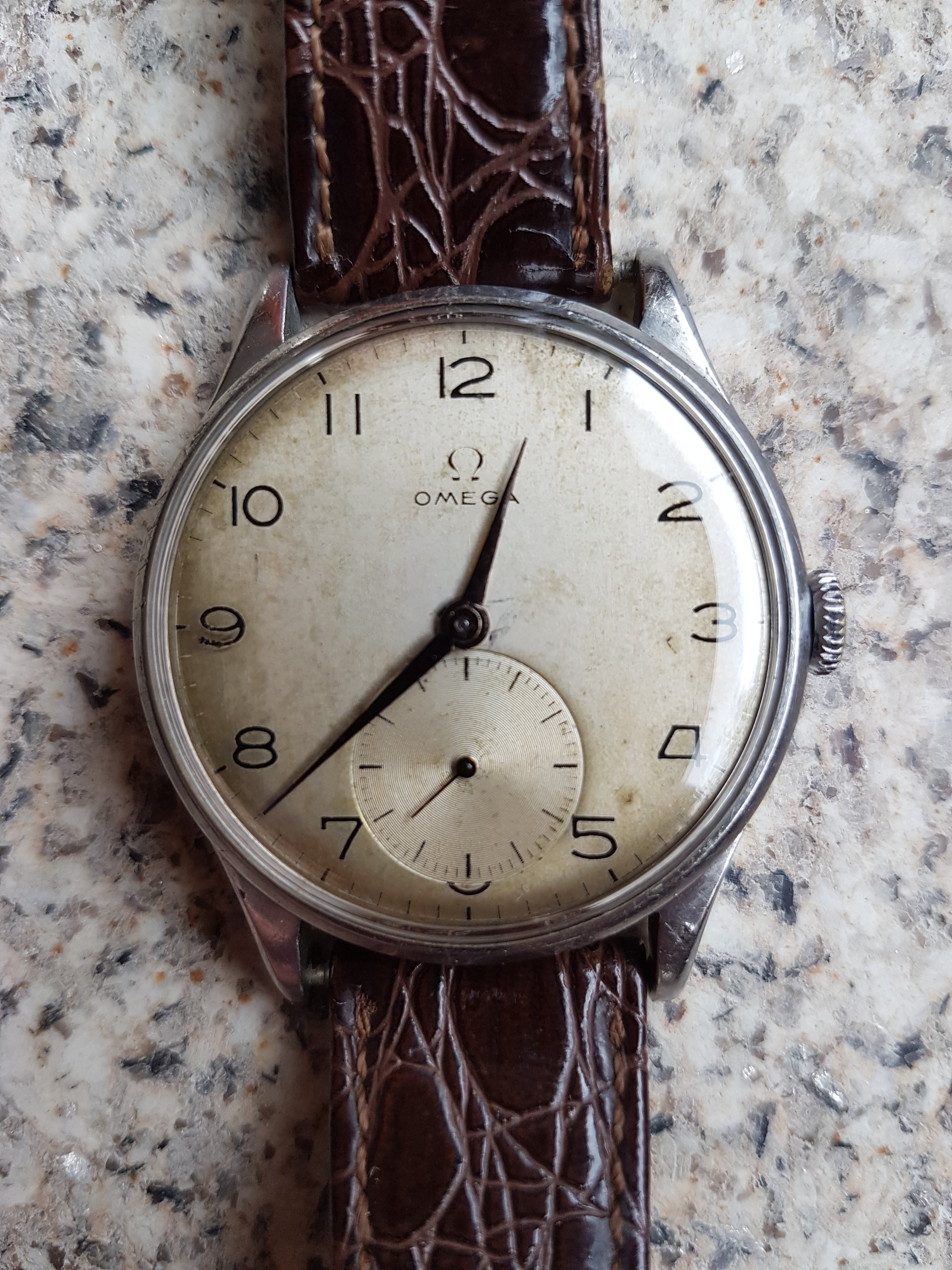 ·Hello ladies and gentleman. I received this watch as an inheritance from my beloved Grandfather after he passed away. My grandfather bought this watch as new in Europe in the late 1940s with his first salary. This watch has a great sentimental value for me and, therefore, I would like to know more about it and would like to know how to better take care of it. The watch is manually wound and has a case with a diameter of 37 mm. I looked on the internet but I couldn't find any watch that looked exactly the same. I didn't open it because I'm afraid of ruining it. I have no experience with watches and would be very grateful if anyone can help. Thank you very much.