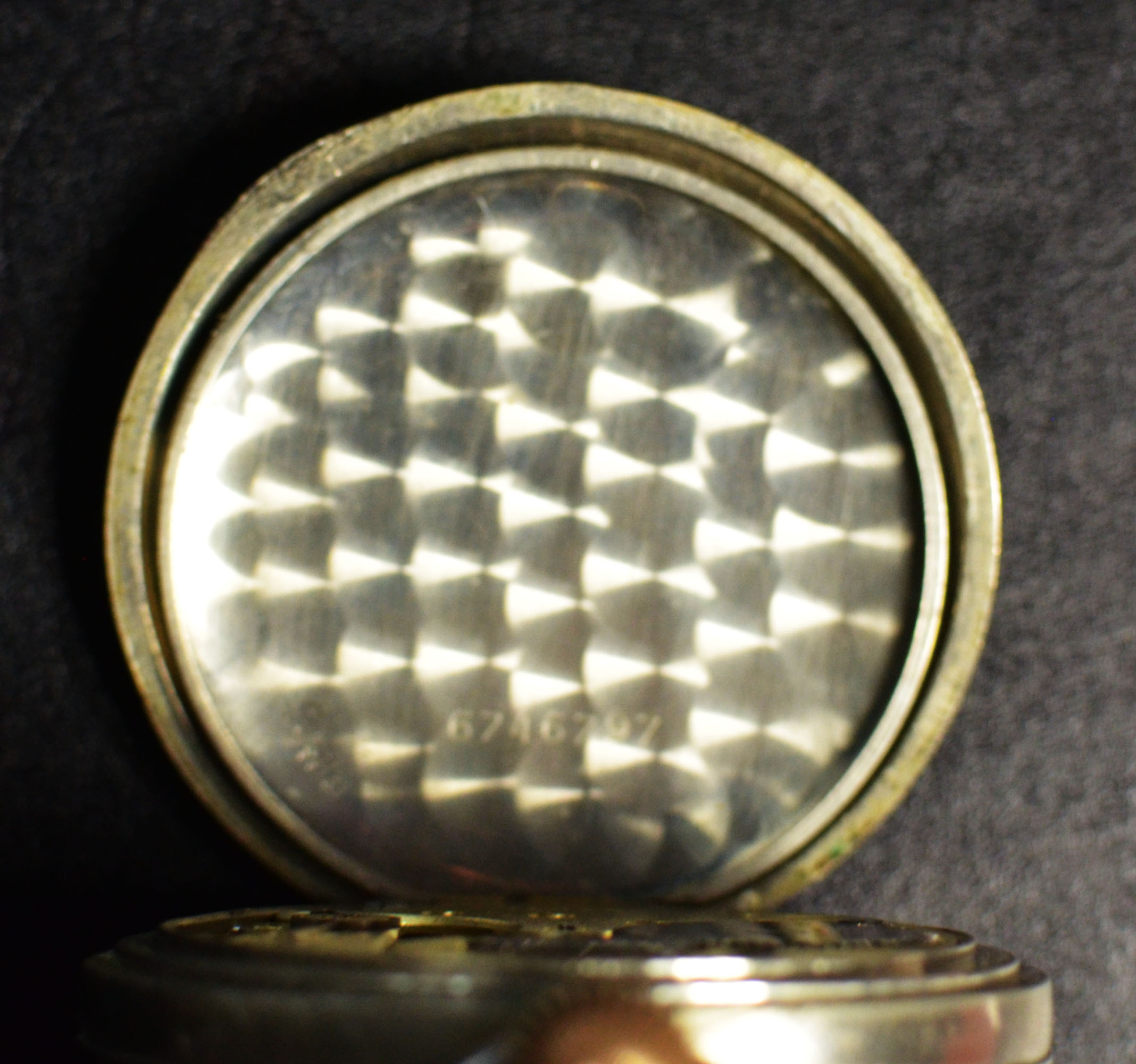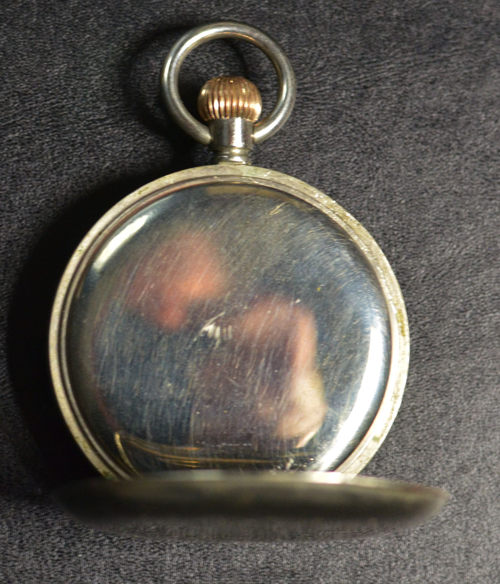 I recently bought an auction lot that included a watch described as a '1916 military pocket watch'. It's in suspiciously good condition considering its age and I can't find another example with the same dial / hand design combination on the net that is older than the early 40s - and that was a wrist watch. The lume on the hands still holds some charge after exposure to light, but only for a few seconds and is still green whereas what I'm assuming to be lume on the numerals is an aged brown. The movement and case numbers suggest that it dates from the early 20s. Could it be a collection of parts? It's remarkably accurate gaining 10 seconds a day sitting flat on the desk. I paid a minimal amount for the lot that included WW1 service medals so the watch doesn't owe me anything.