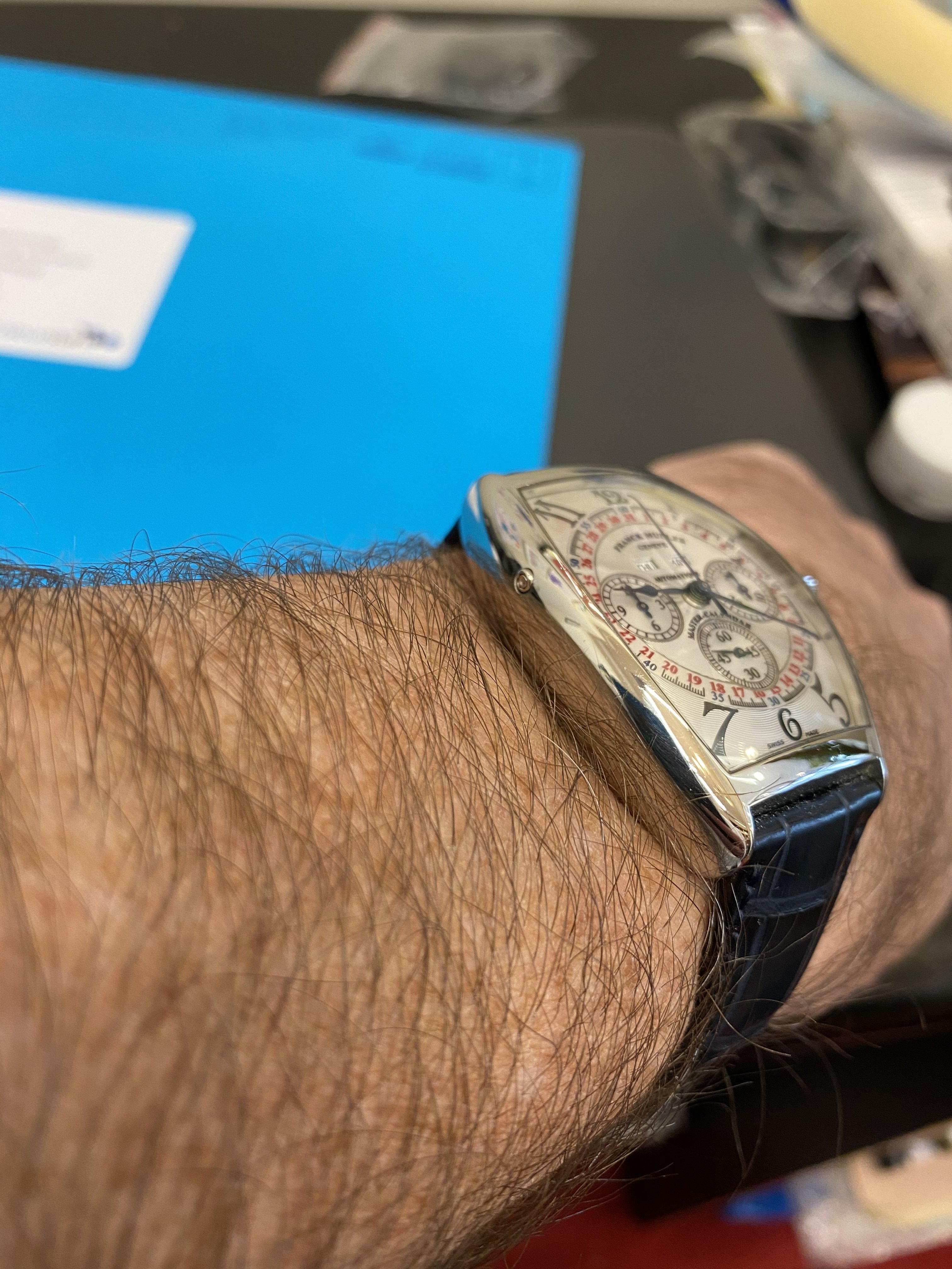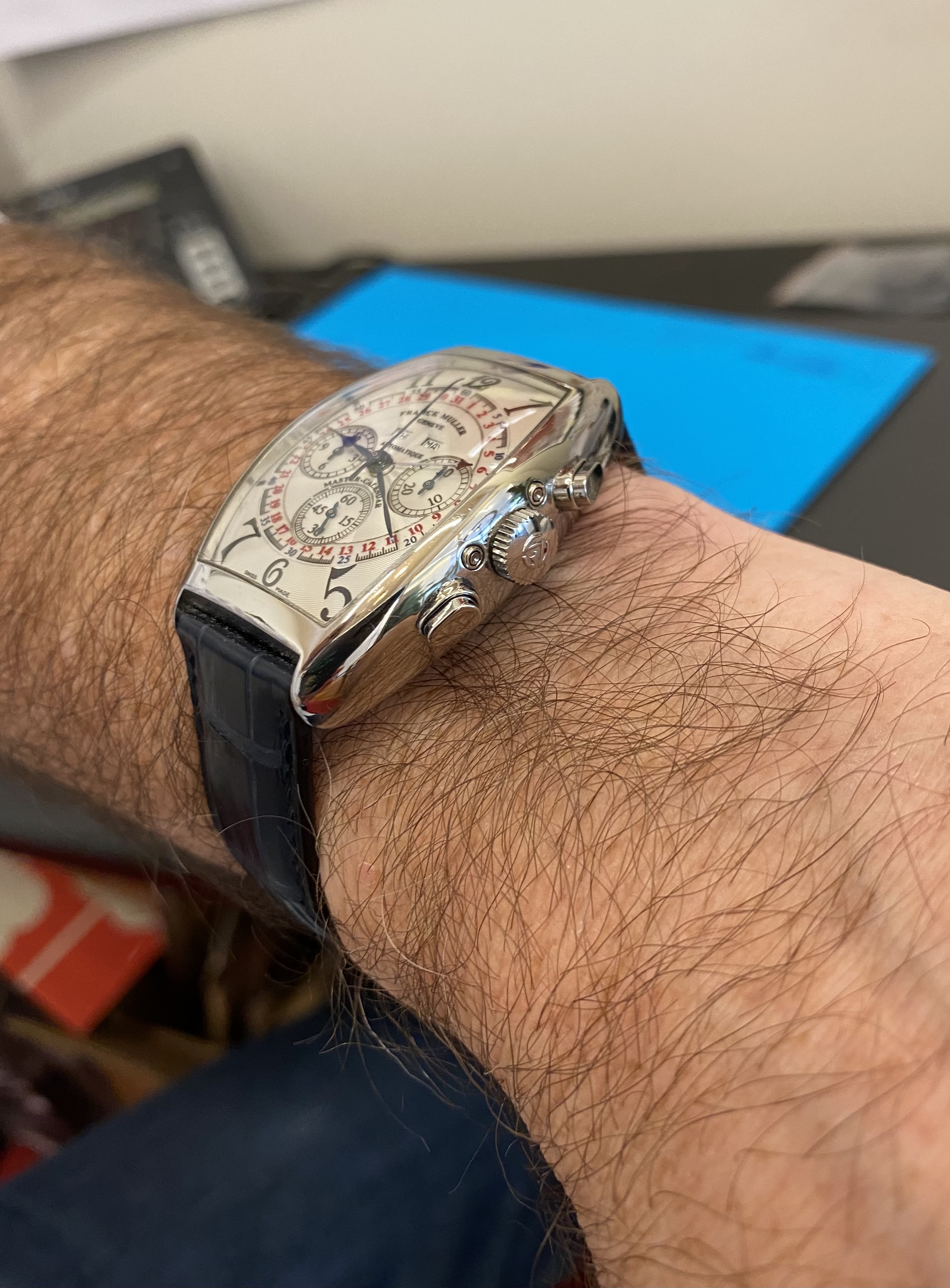 I really like the look of these FM, but you need the wrists for this tonneau shape case. Depending on the number of complications they can be excessively thick. Wish they would sit more nicely on mine. Do you know if the dial is hand guilloched or simply machine stamped?