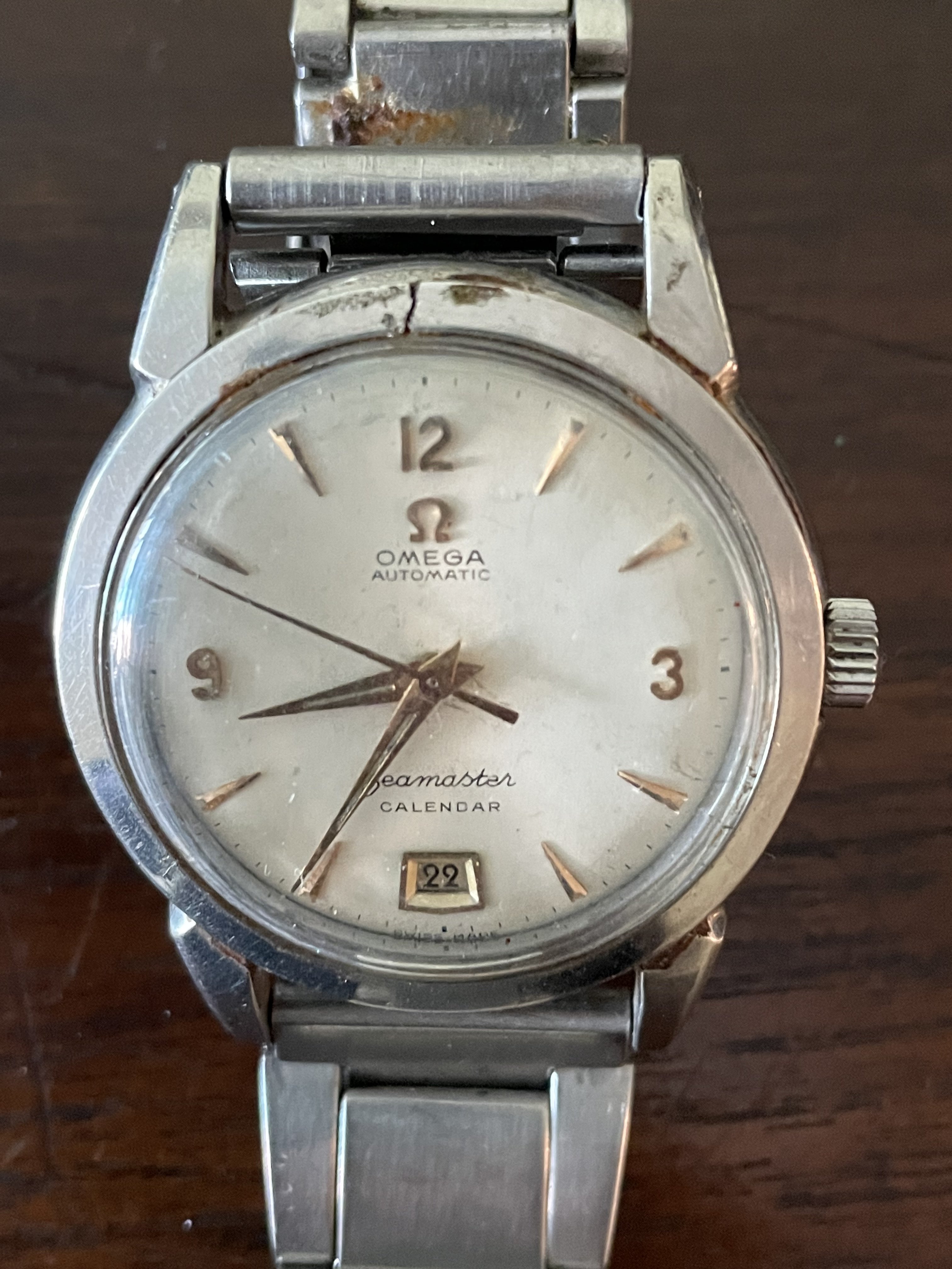 The steel one is a reference 2627. The bezel is clearly cracked, something which can be fixed. I would not wear this one until this repair has been done, if the bezel is lost it would be very difficult to replace.