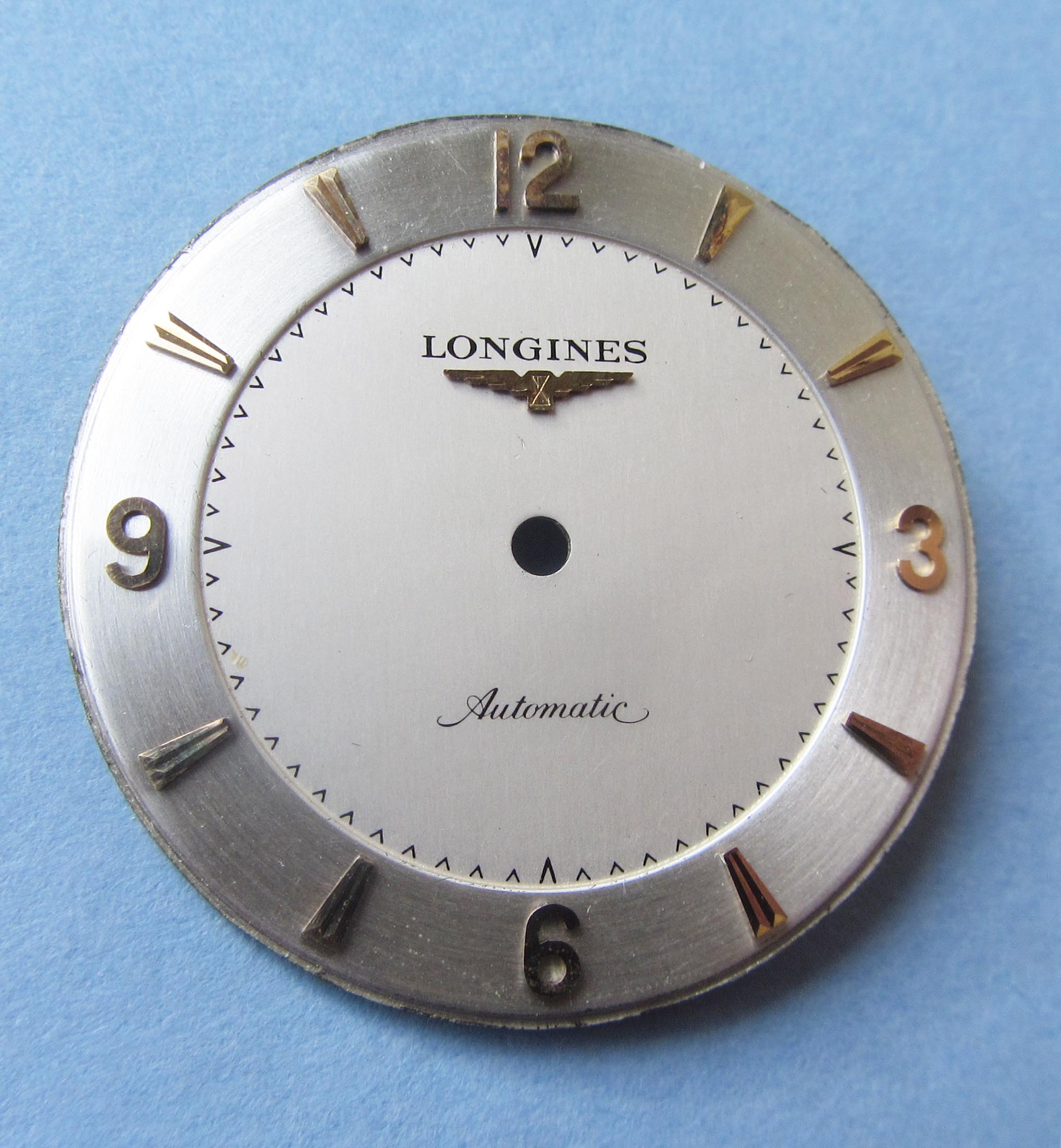 On the second dial, both the glossy surface and reflective/metallic printing are striking. Also, I wonder if the black galvanic coating was applied first, and then scratched off in order to solder the hour markers and emblem.