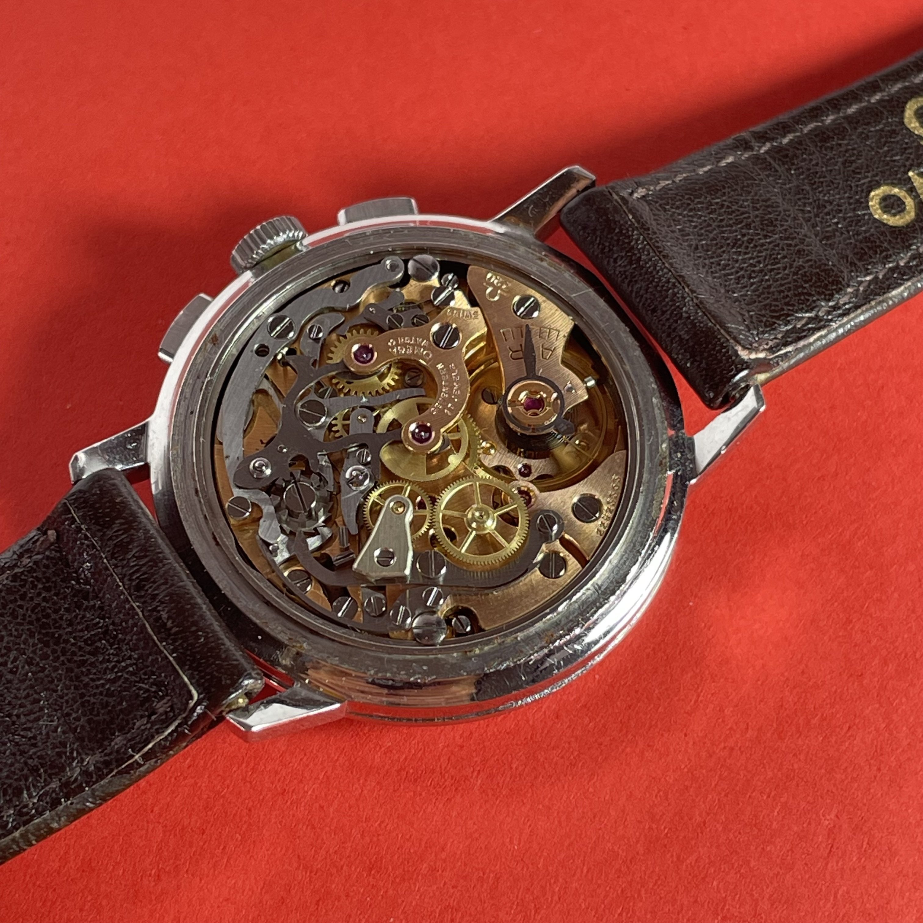 The watch is powered by cal. 320, serial is 22m collocating it around 65/66. The watch runs fine, chrono start, stop and reset perfectly.