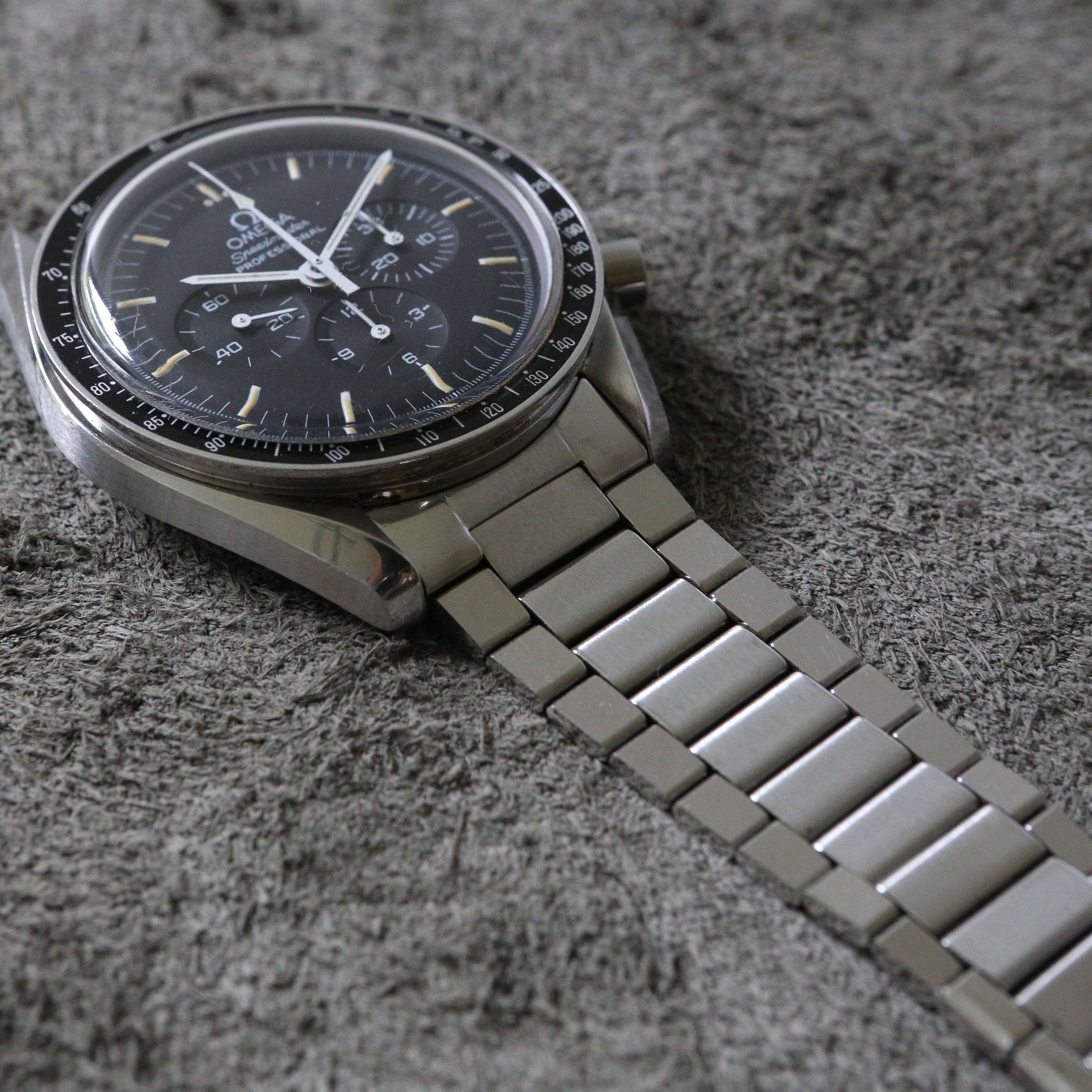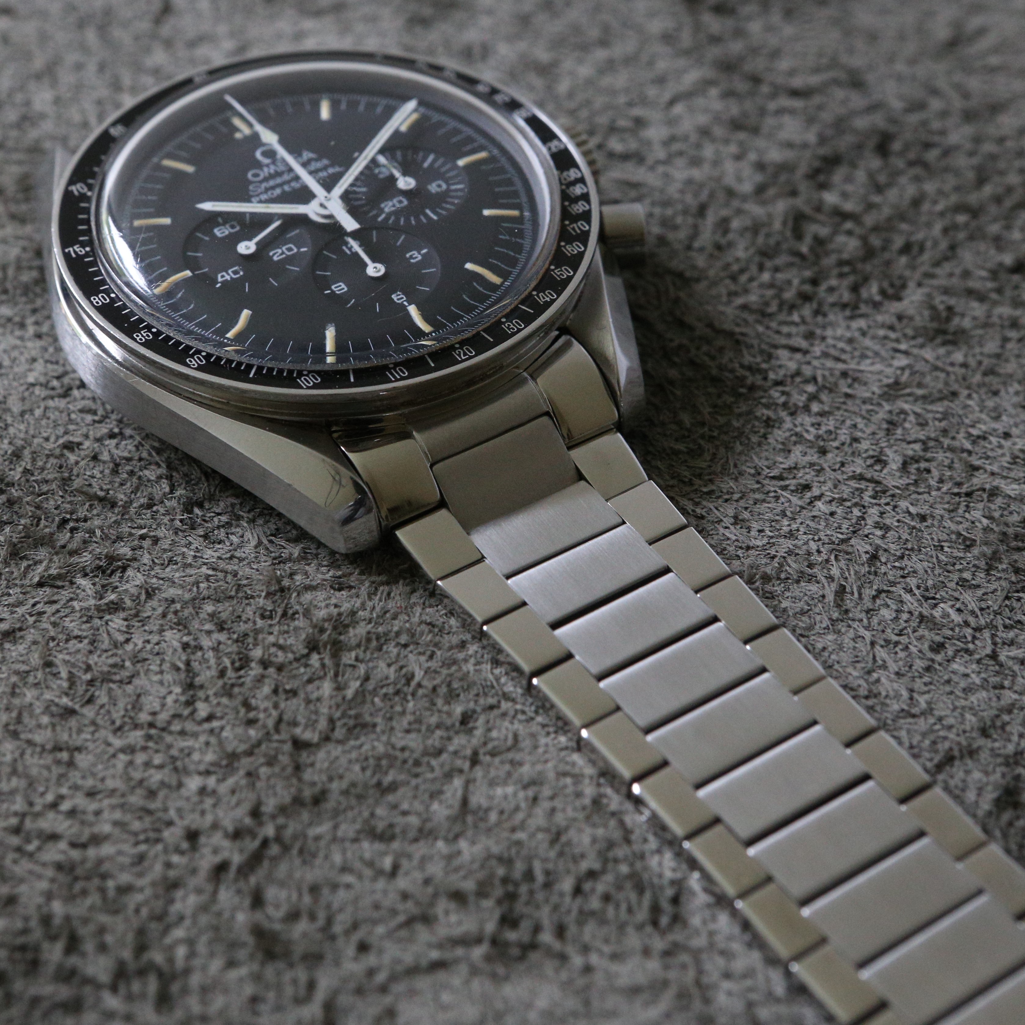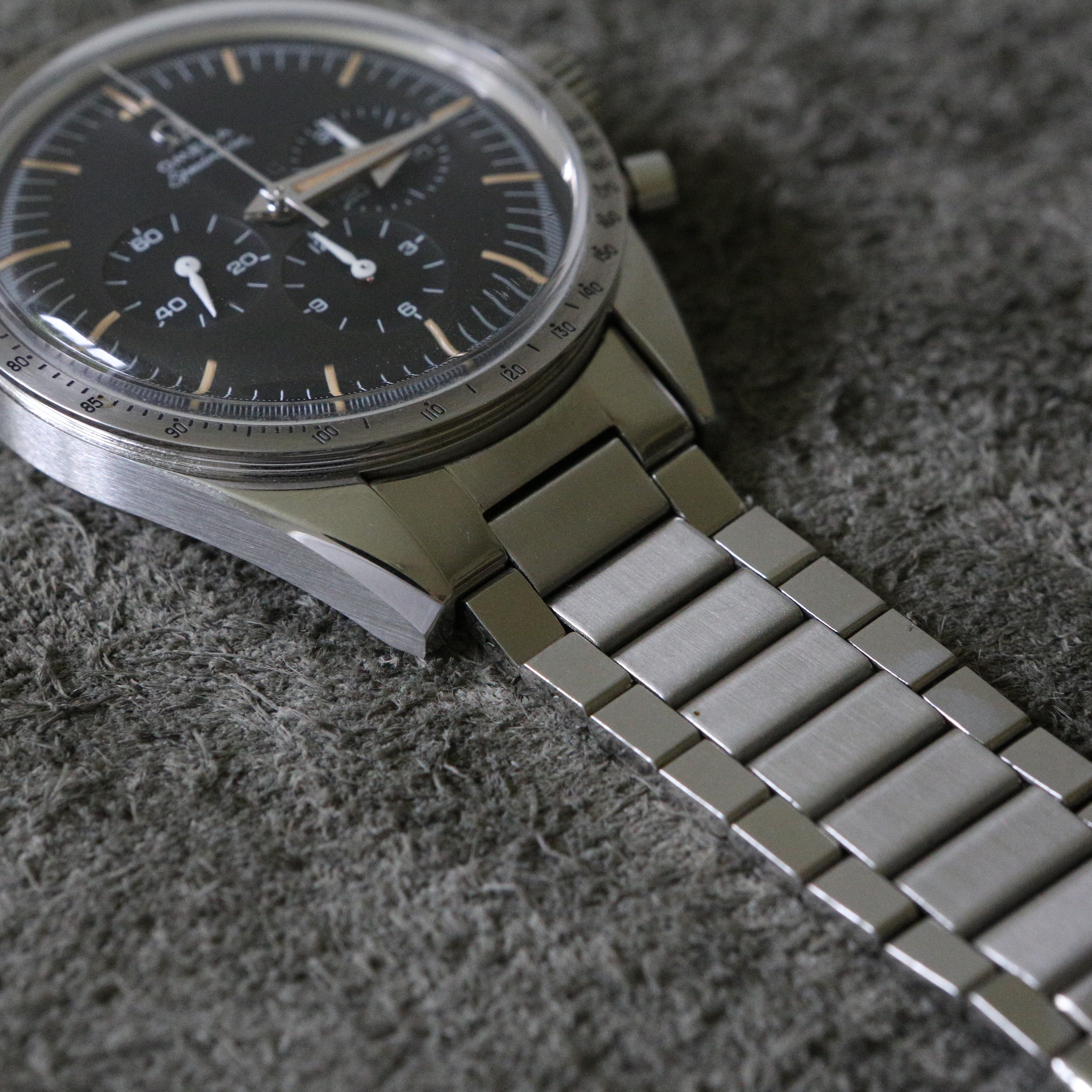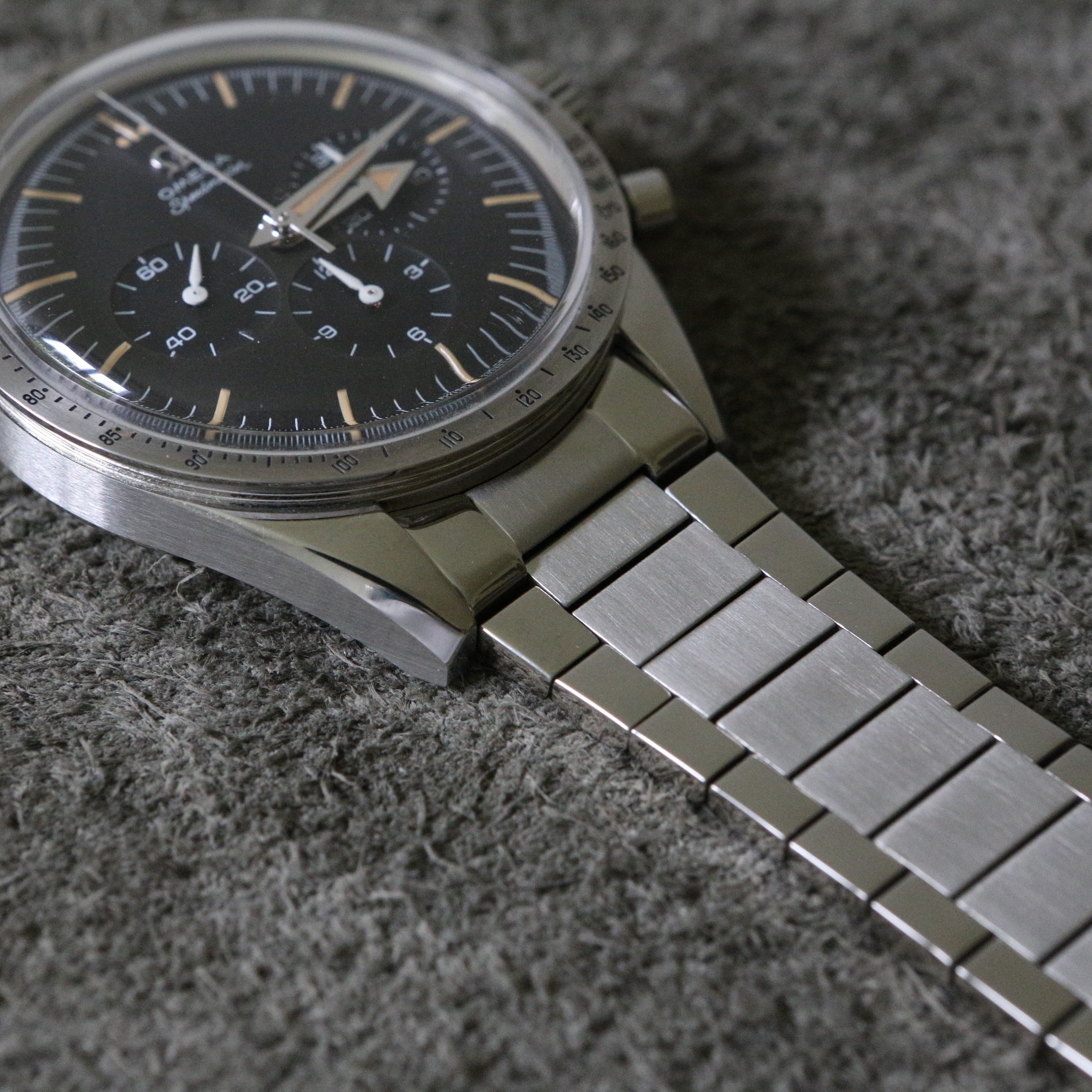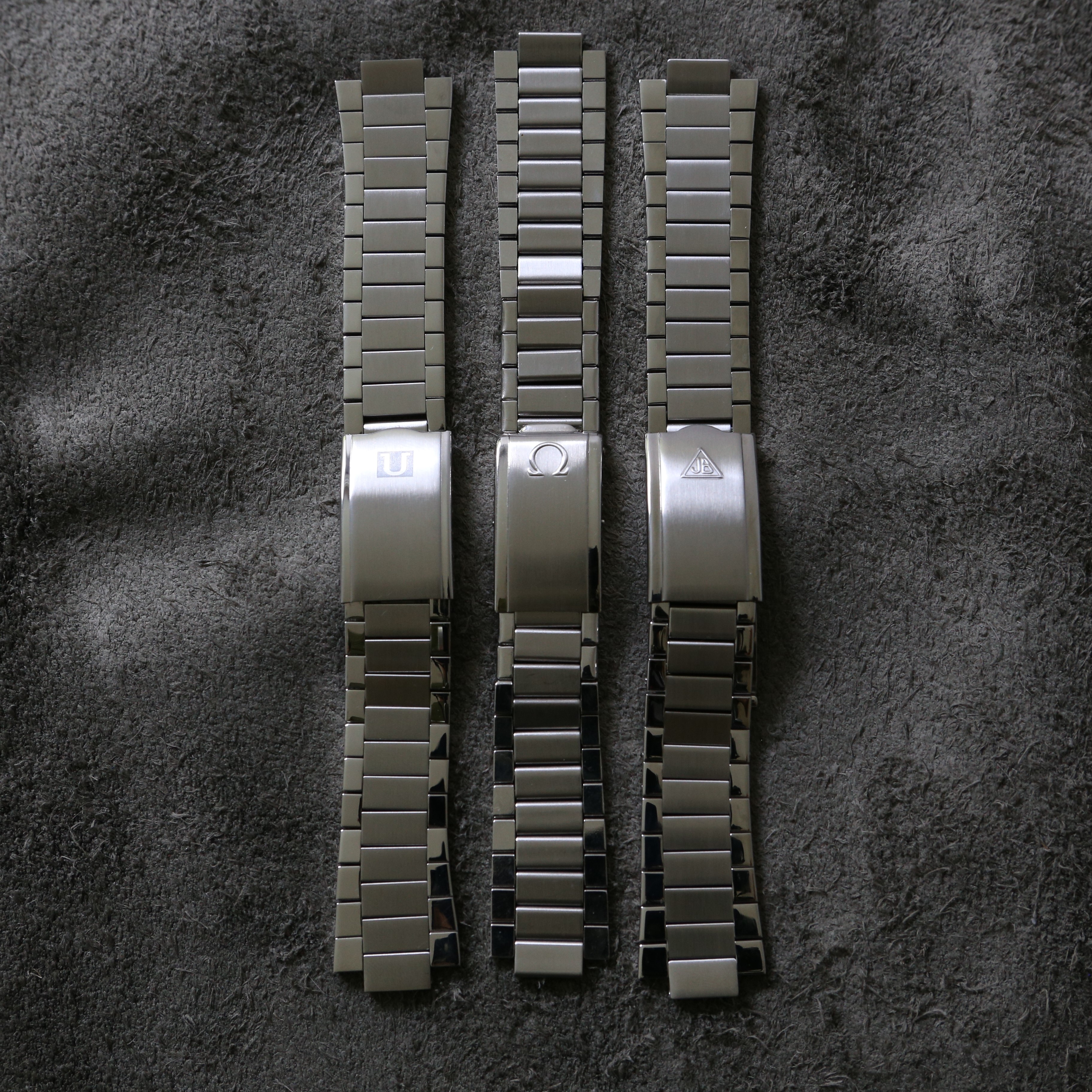As an owner of all three(four!) I have gained some hands-on experience, and I have met some collectors with both Uncle Seiko and Forstnerbands flatlinks and discussed them, so I will add some thoughts, but a picture is worth a thousand words (or so 'they' say). I will not pick a favourite of the two third parties : both Forstnerbands and Uncle Seiko are fantastic, both are similar (Forstnerbands has the addition of stretchable links) with a similar form, with slightly different end-link profiles and construction and thus are better suited to different watches depending on ones taste. Both are well worth their cost (and both should be had at that). It also appears that the Forstnerbands and Uncle Seiko are much more solidly made than the vintage Omega. There appear to be less parts and their construction is better...however we will only truly know in about 50 years ... when these are as old as most 1035's on the market today (and still functioning). Despite that : I'm a pedant, so will say upfront that the Omega wins hands down for me (on my 60th Anniversary Speedy, which fully deserves it), but it took me some years to complete that set, and those parts are like hens teeth to find in such condition, and cost a small fortune, thus not a realistic option for most. I add it here as this is the bracelet that both parties are helping us get onto our watches : what better than to compare to the original?