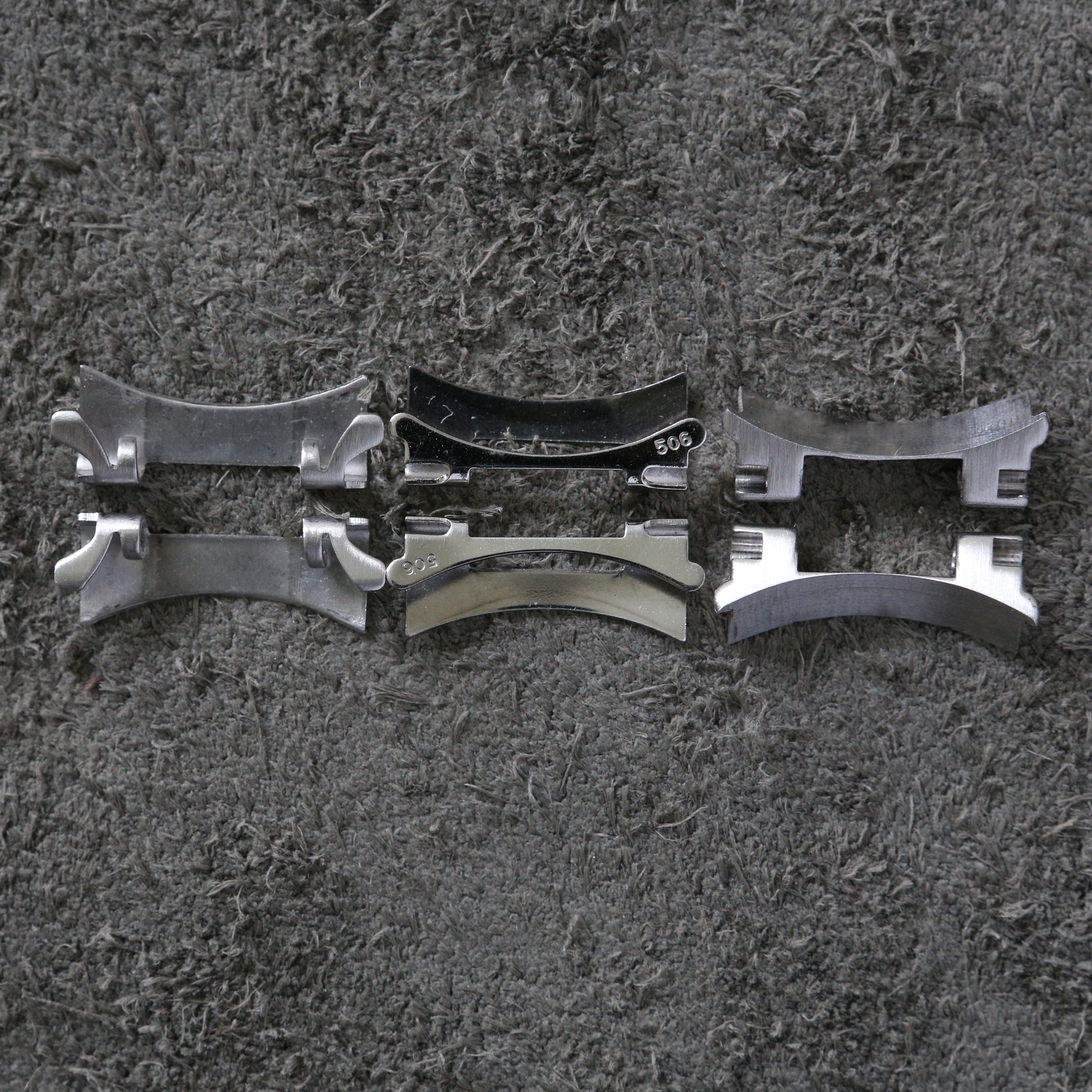 The endlink side profile tells a different story. Its clear to see that the US endlinks match the Omega 506 profile the closest, have a flat-ish top, wheras the FB endlink is fully rounded. Now depending on the watch, this may be desirable or not. Personally, I do not like how the curved end-link sits above the inside of the lyre-lugs of the Speedmaster professional cases. However, I think it looks fantastic on the straight-lug cases. The US endlinks also sit higher than the Omega’s (but lower than the FB), as the bend radius of the metal is greater (on these) which may be noticed upon installation. As mentioned earlier, US/FB parts are interchangable, and spares are readily available, and well priced.