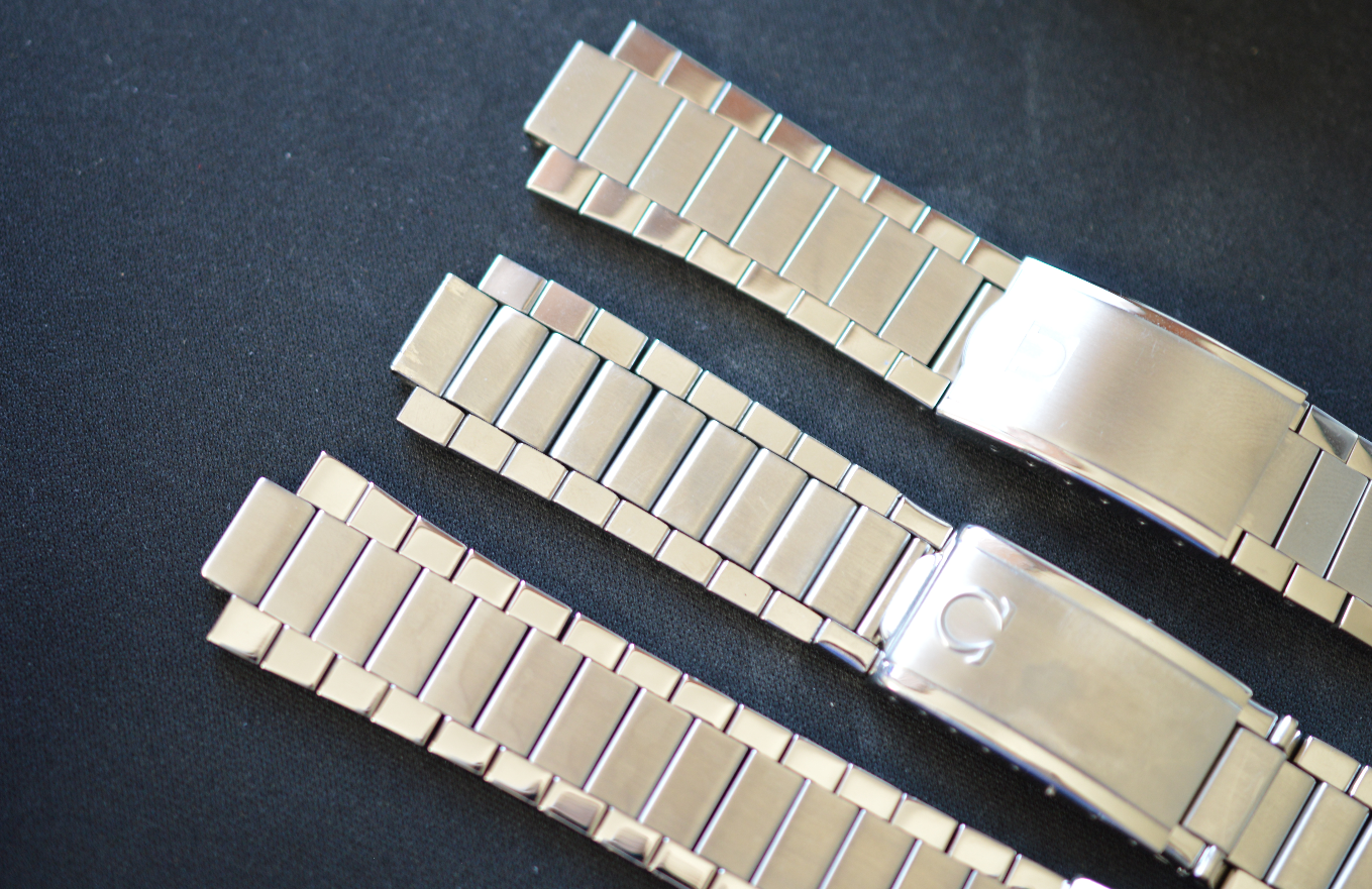 A closer side on view ... this nicely highlights the difference in construction between the folded metal of the Omega vs the solid links of the other two.