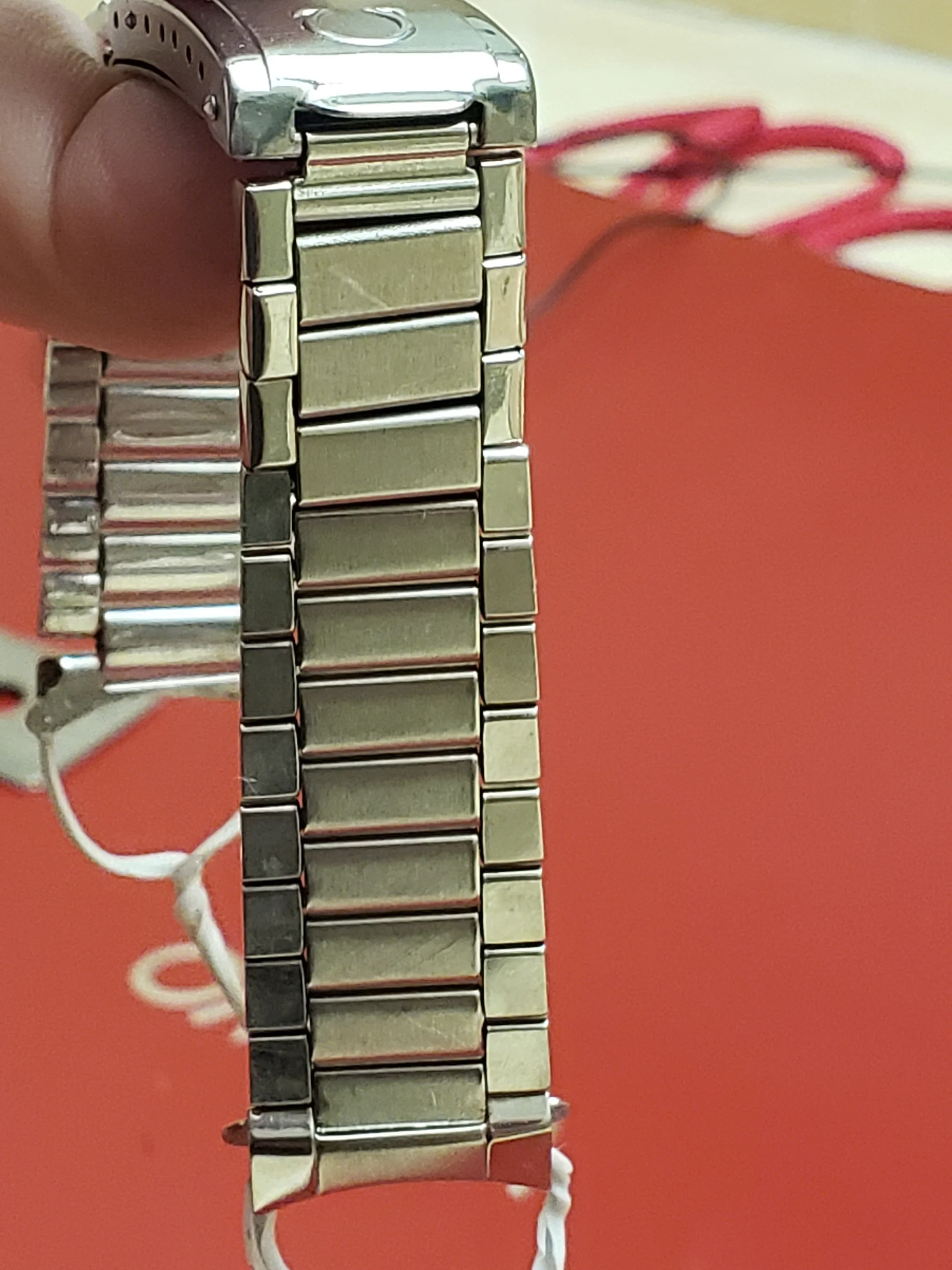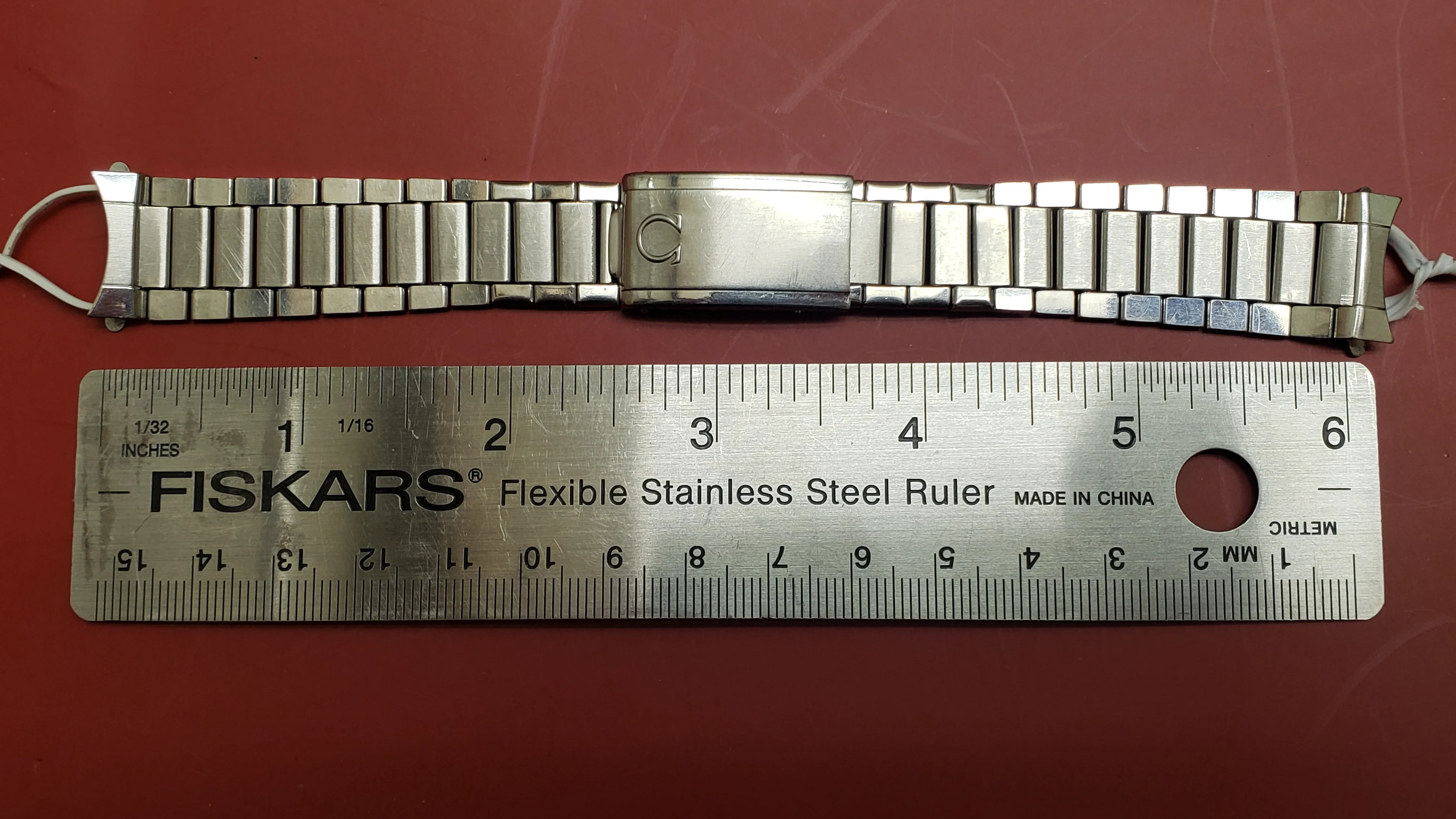 The bracelet is includes all 8 permanent links and a total of 7 spring/stretch links. and has a total length of 16mm/6.25" The date stamp on the clasp denotes 4th quarter of 1971. There is very little stretch in the links and the spring links work very well. The clasp snaps closed tightly. The terminal links are just sort of 18mm and paired with the included #630 end links will fit 18mm lugged Omega models such as Rancheros, Seamasters and the Speedmaster Reduced.