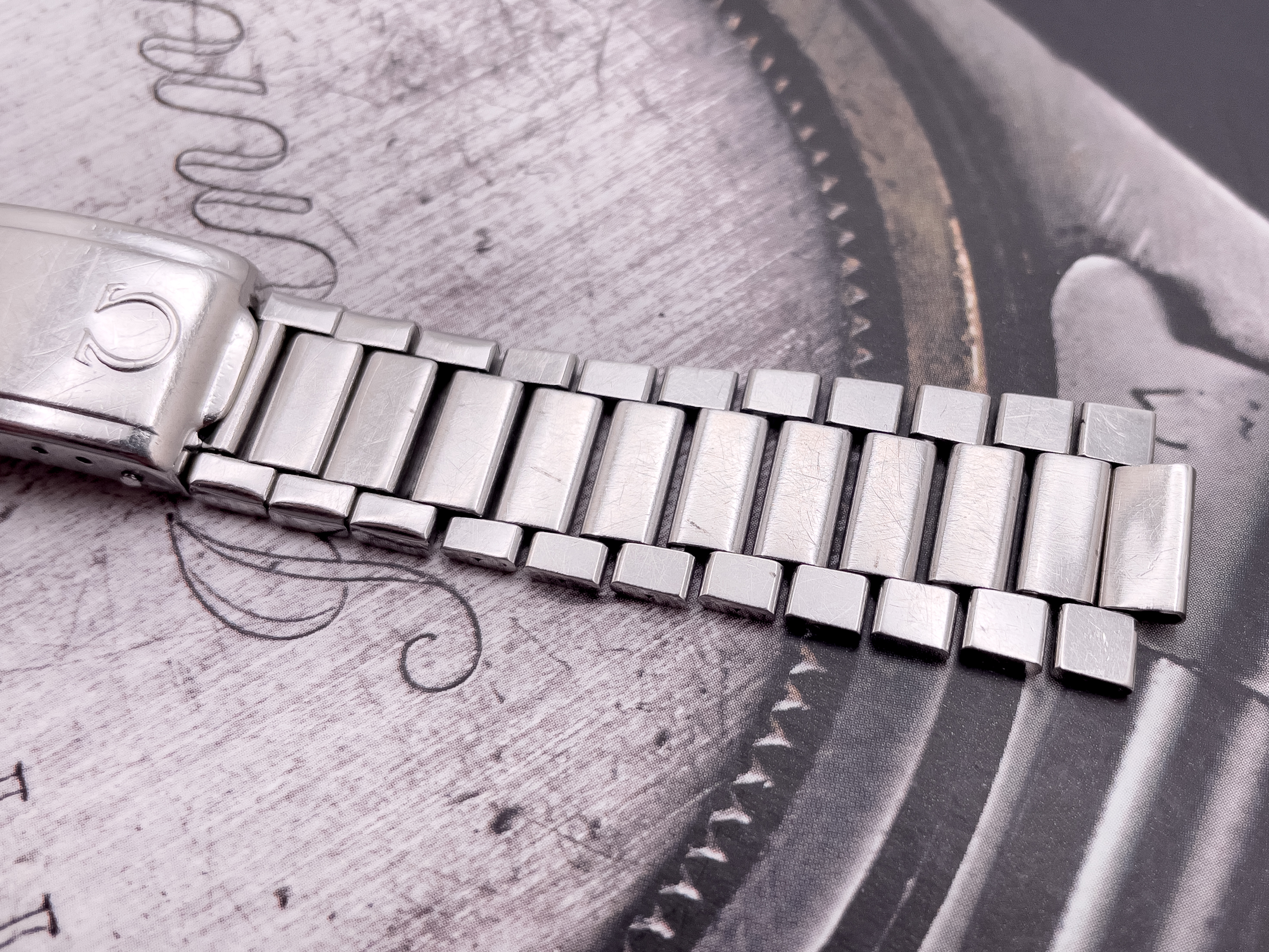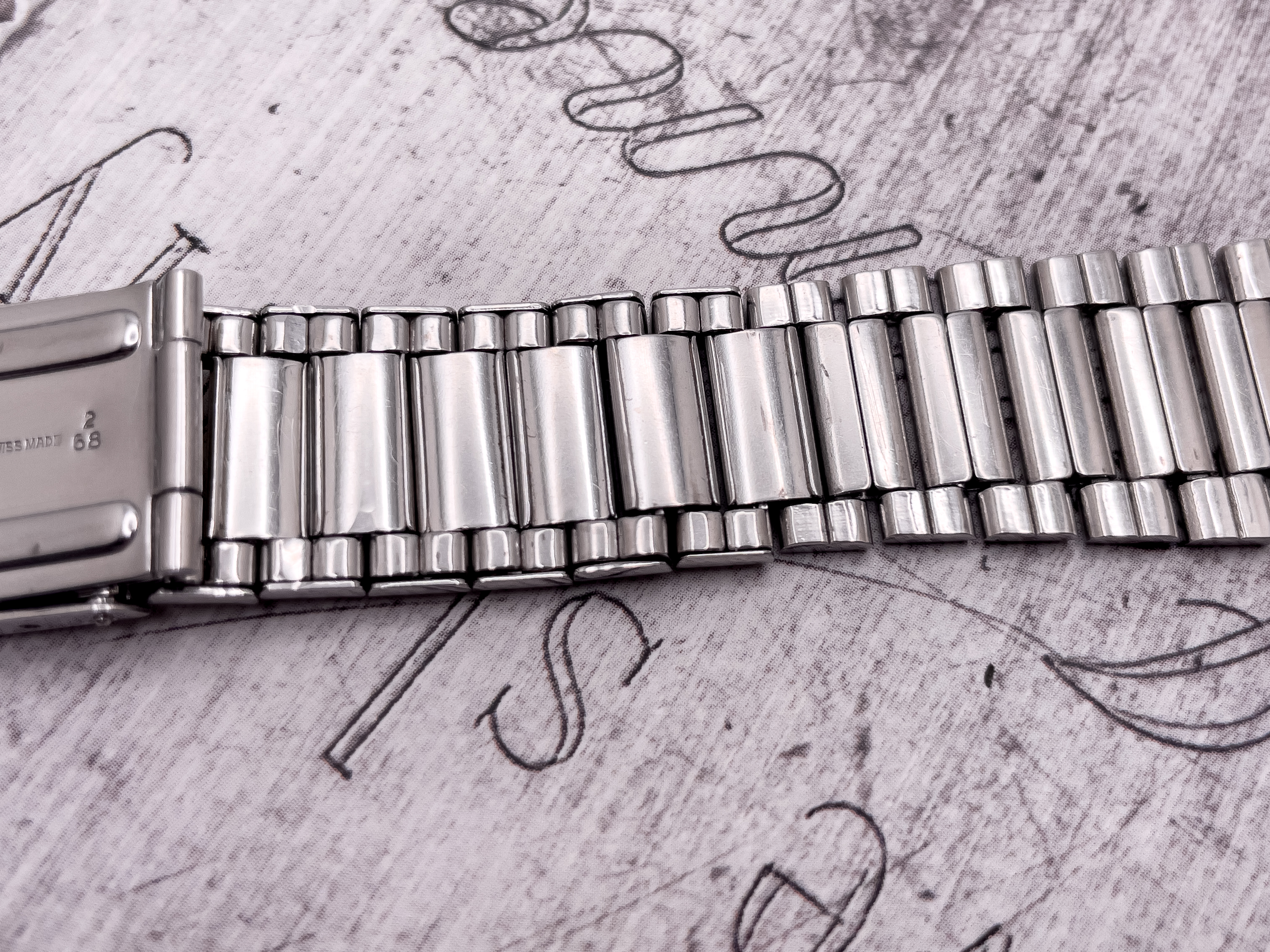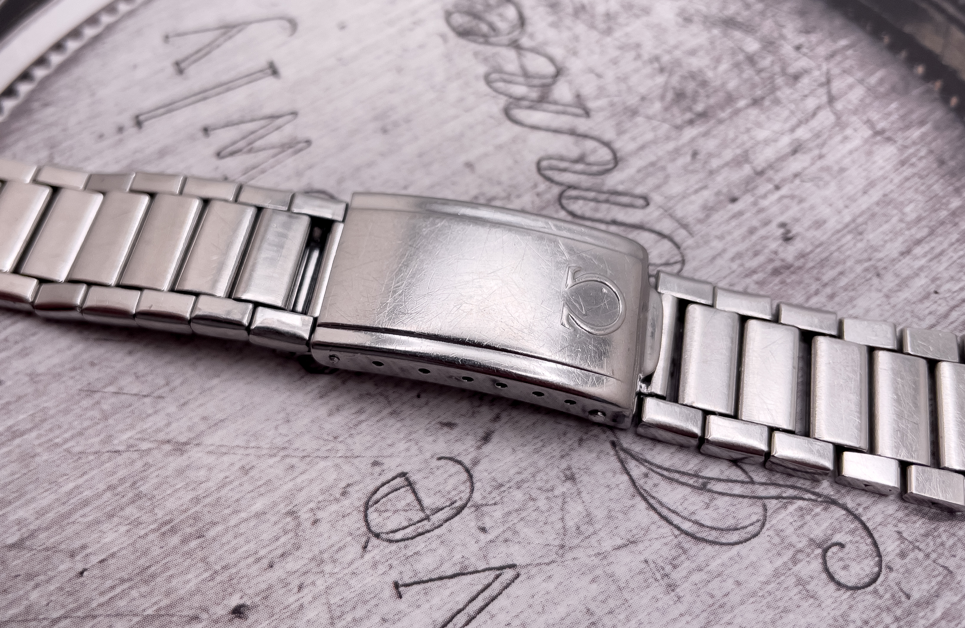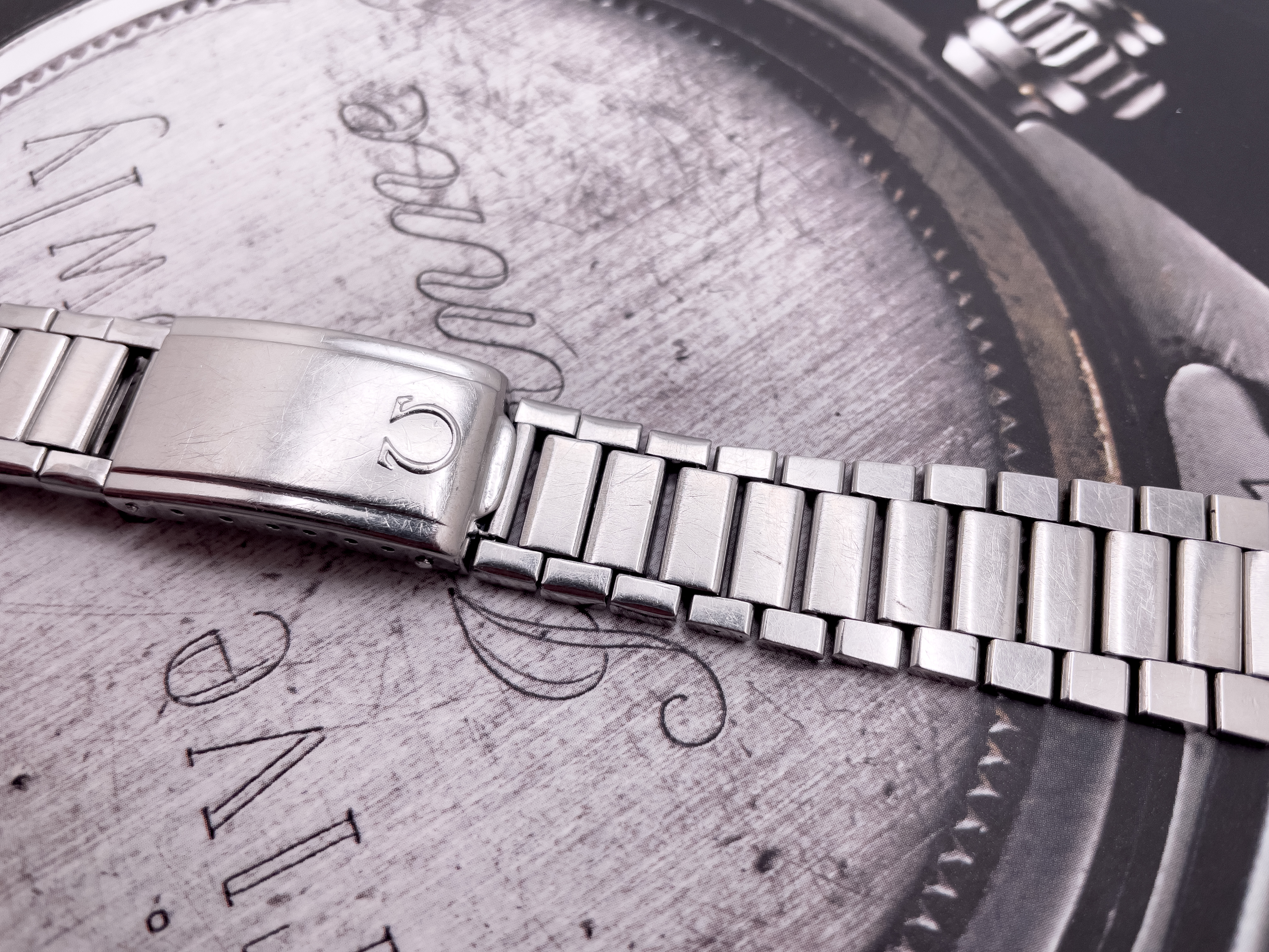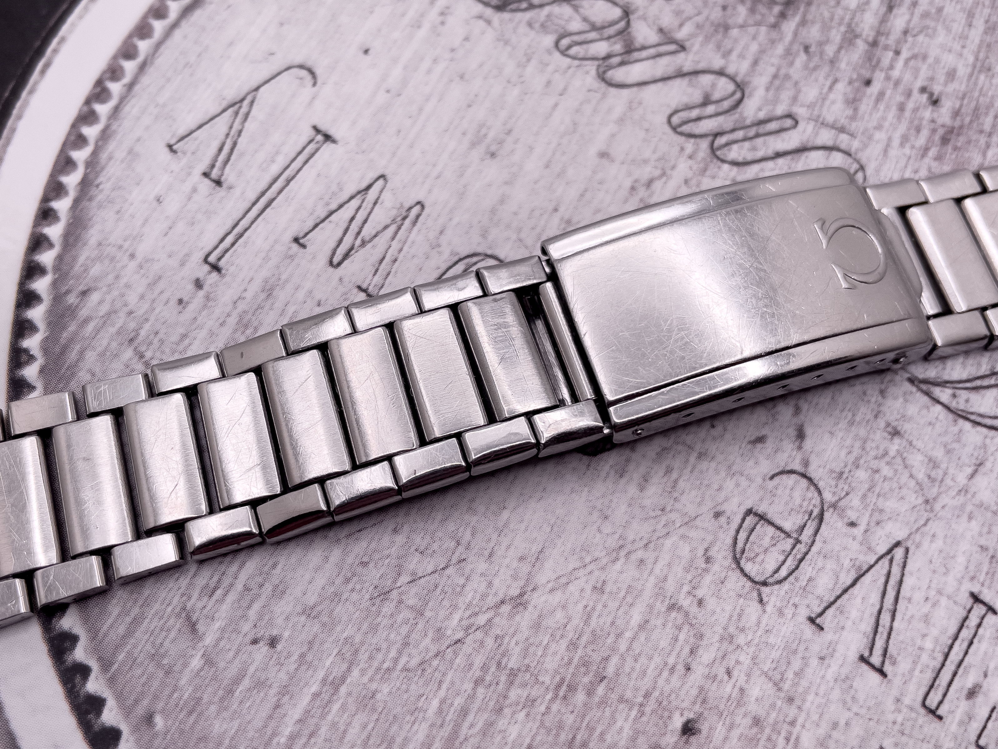 ·For sale I have a 1039 from the second quarter of 1968 with 25 total links. Both sides have 8 solid links. One side has 6 stretch links. The other side has 3 stretch links. Two of the stretch links have largely lost their tension, as you'll see in the images below. The remaining stretch links have largely retained their tension. The clasp securely snaps closed. The bracelet was worn and shows wear commensurate with its age, but that said, it is still in good condition. Would make for a great candidate to be restored. I do not have the original 516 end links as they were filed down to 18mm and I sold those separately. Please let me know if you require further images. I will be more than happy to provide those. (The black spot on the underside of the bracelet on a link closest to the clasp is just dirt. I have since cleaned it off).