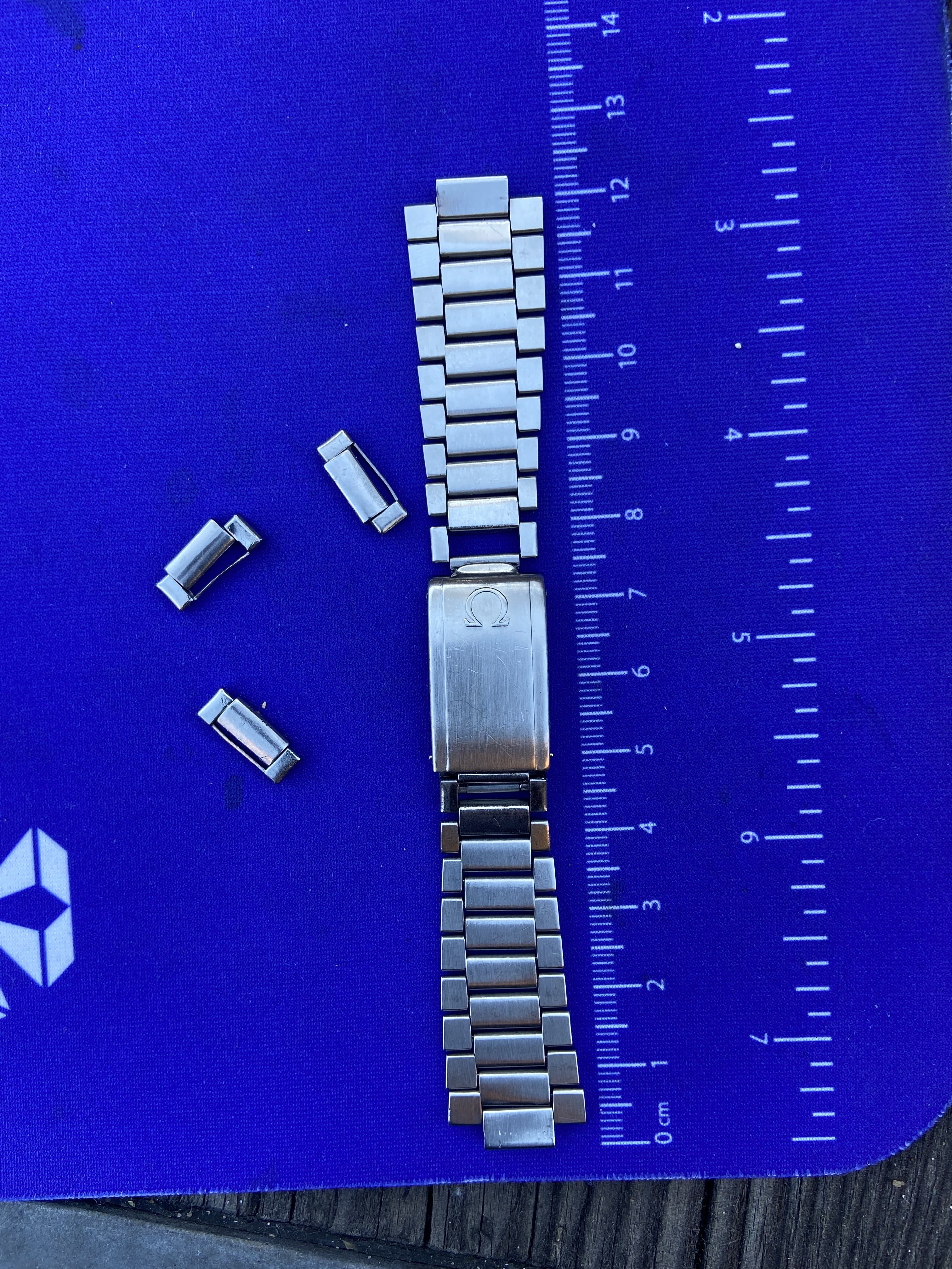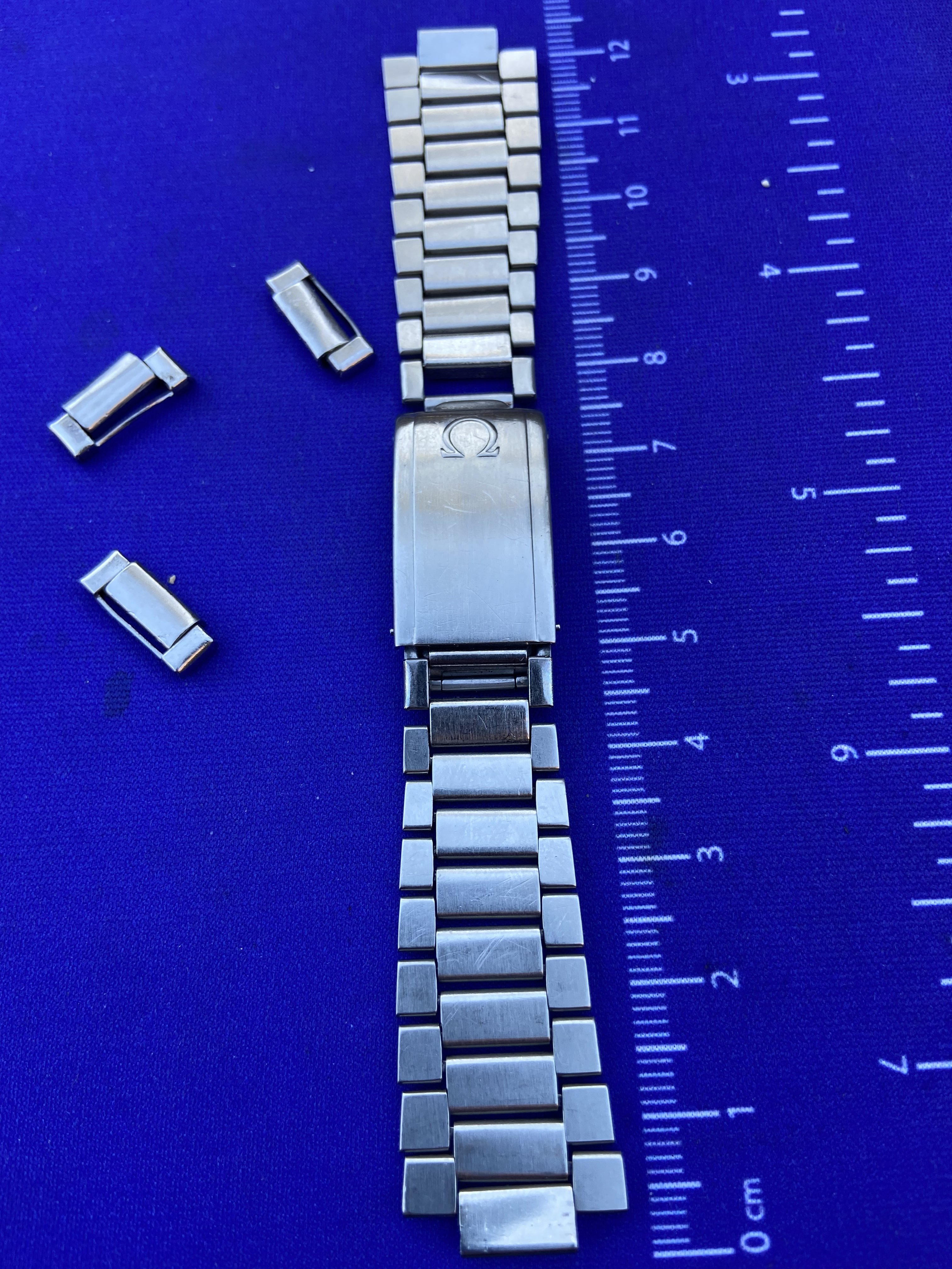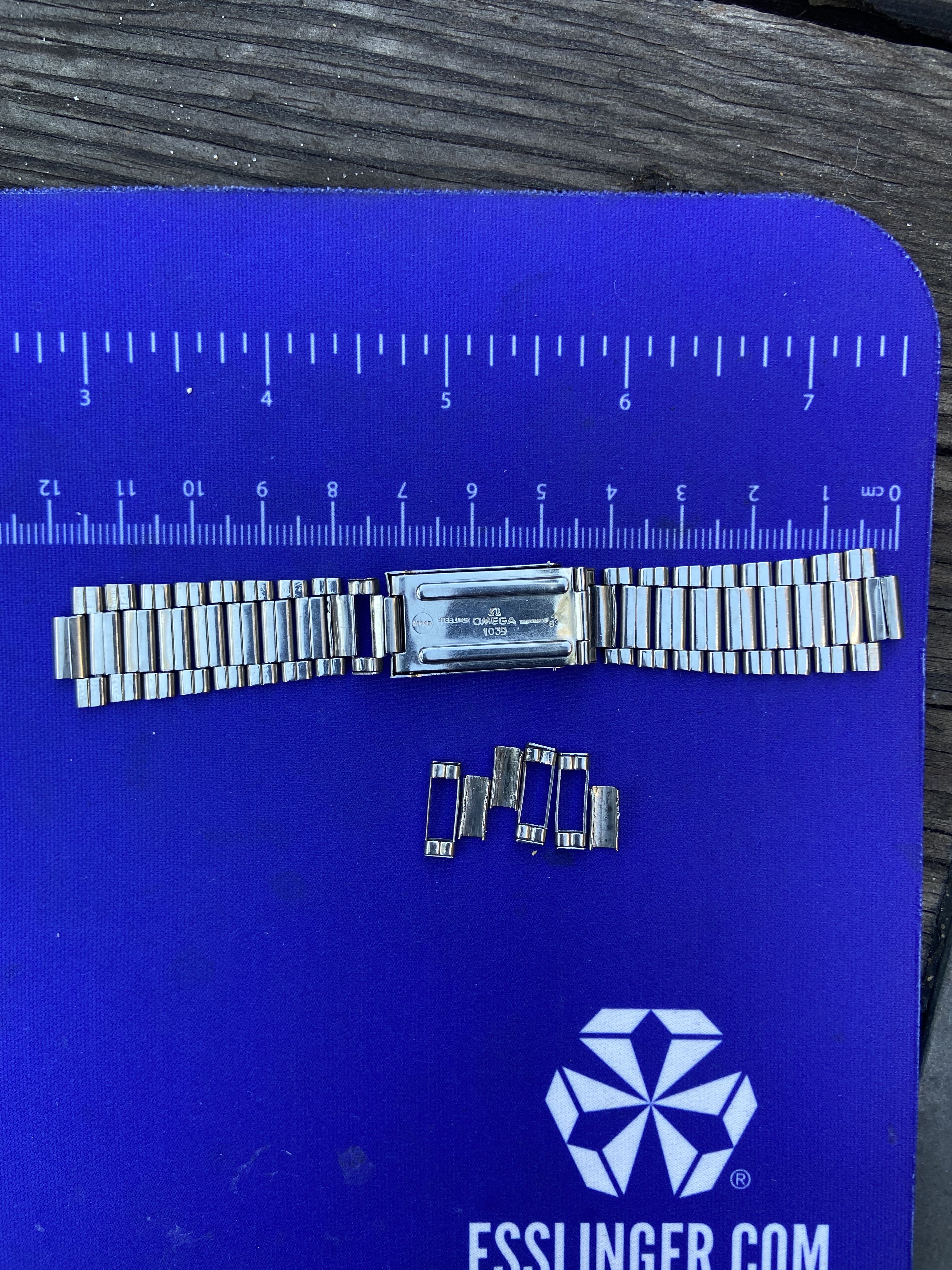 Whoever owned it last didn’t understand the removable links it seems; all spring links show tool marks but thankfully contained to the back side of the bracelet for the ones in place so it still looks good while wearing. The spares have more tool marks.
