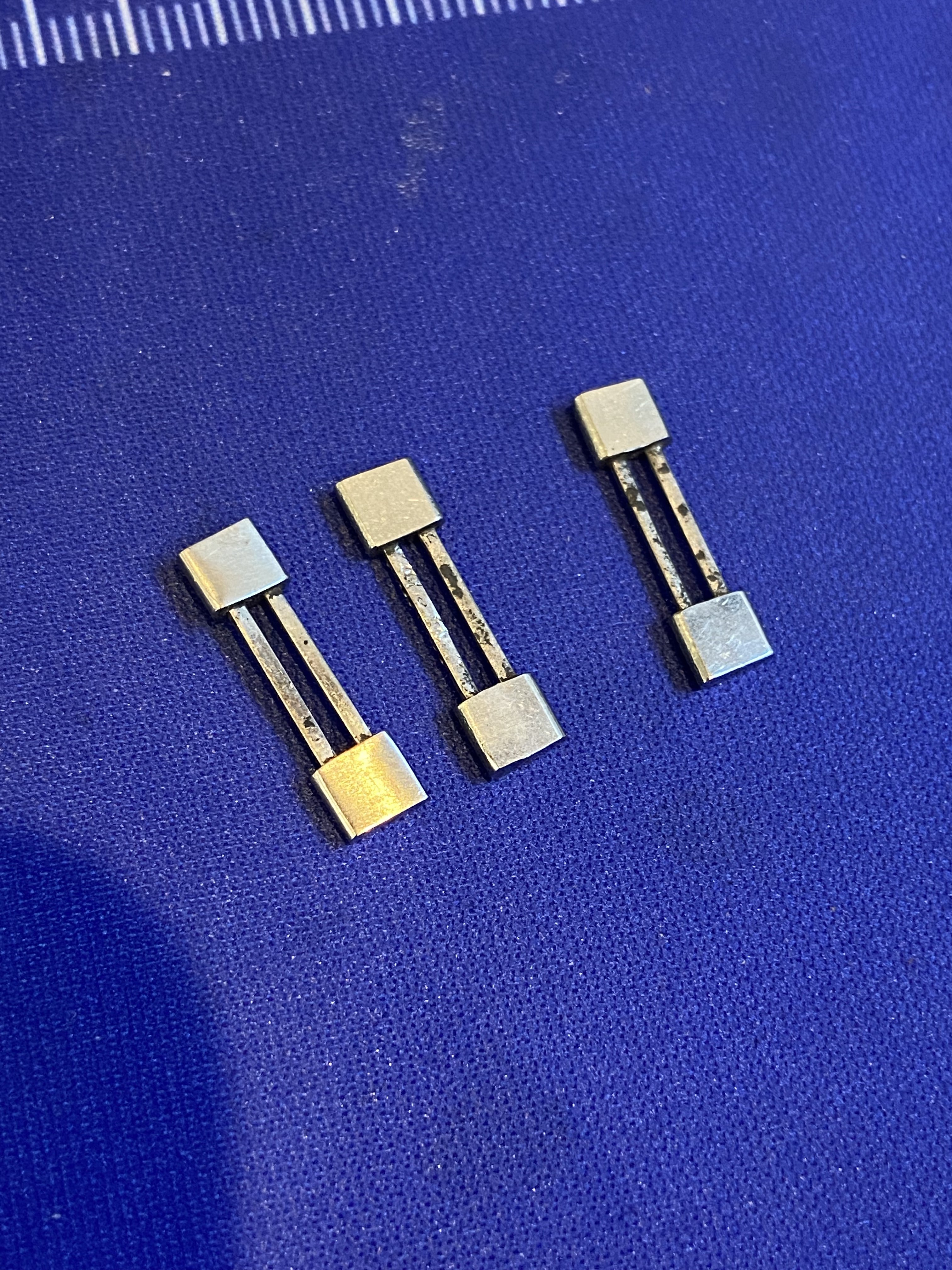 3ea Fixed Link pieces SOLD!- not sure why someone removed these but they came as part of one of my link-lots. 1ea squared, last link towards end links, 2ea 1st taper that sit against the last link as it begins to taper.