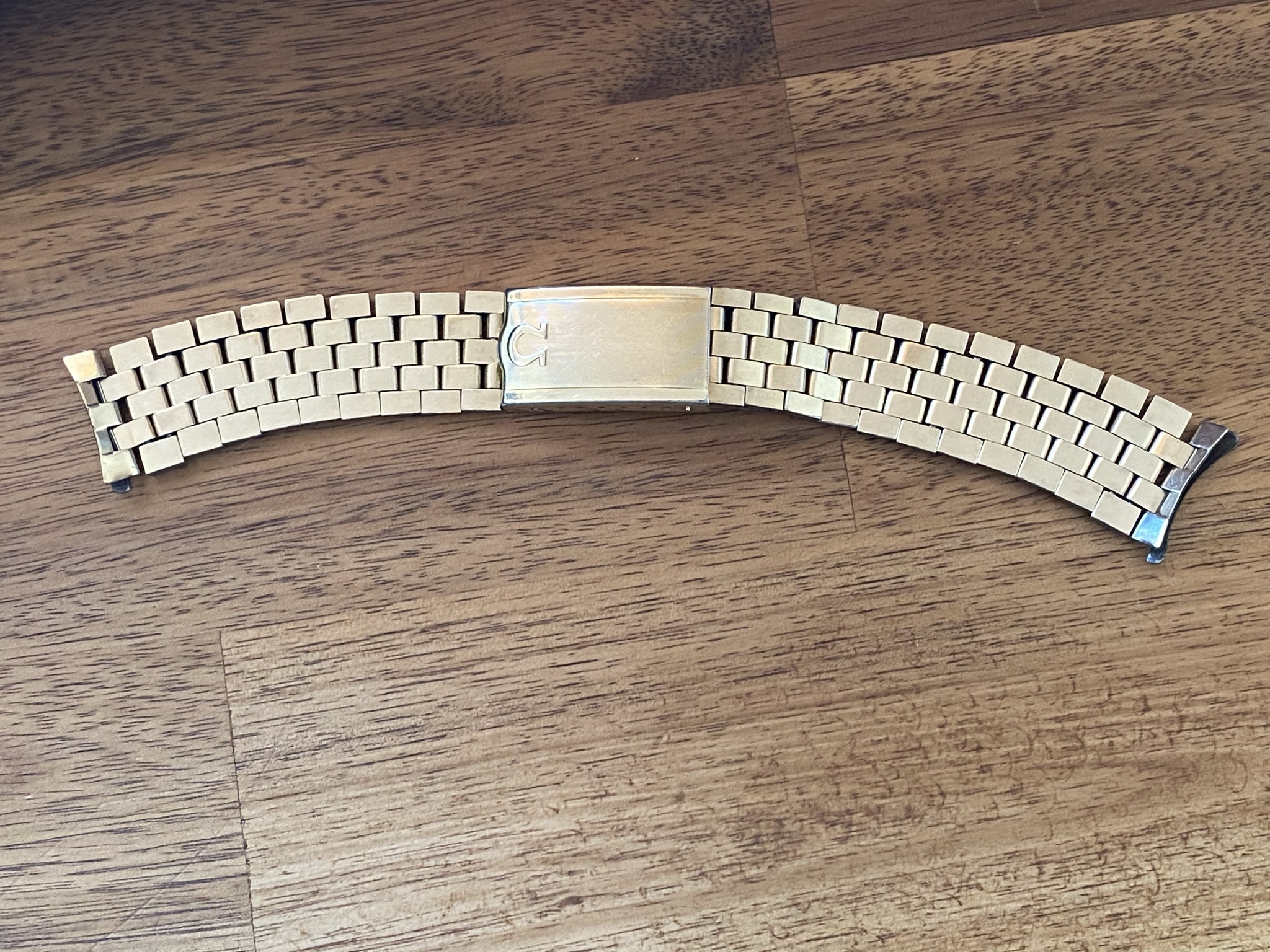 continuing to clear up my drawer of bracelets a little. For sale here is a gold-plated 1040 Omega "brick" bracelet with 518 endlinks, fitting the C-Shape Constellations with their 19mm lug width: