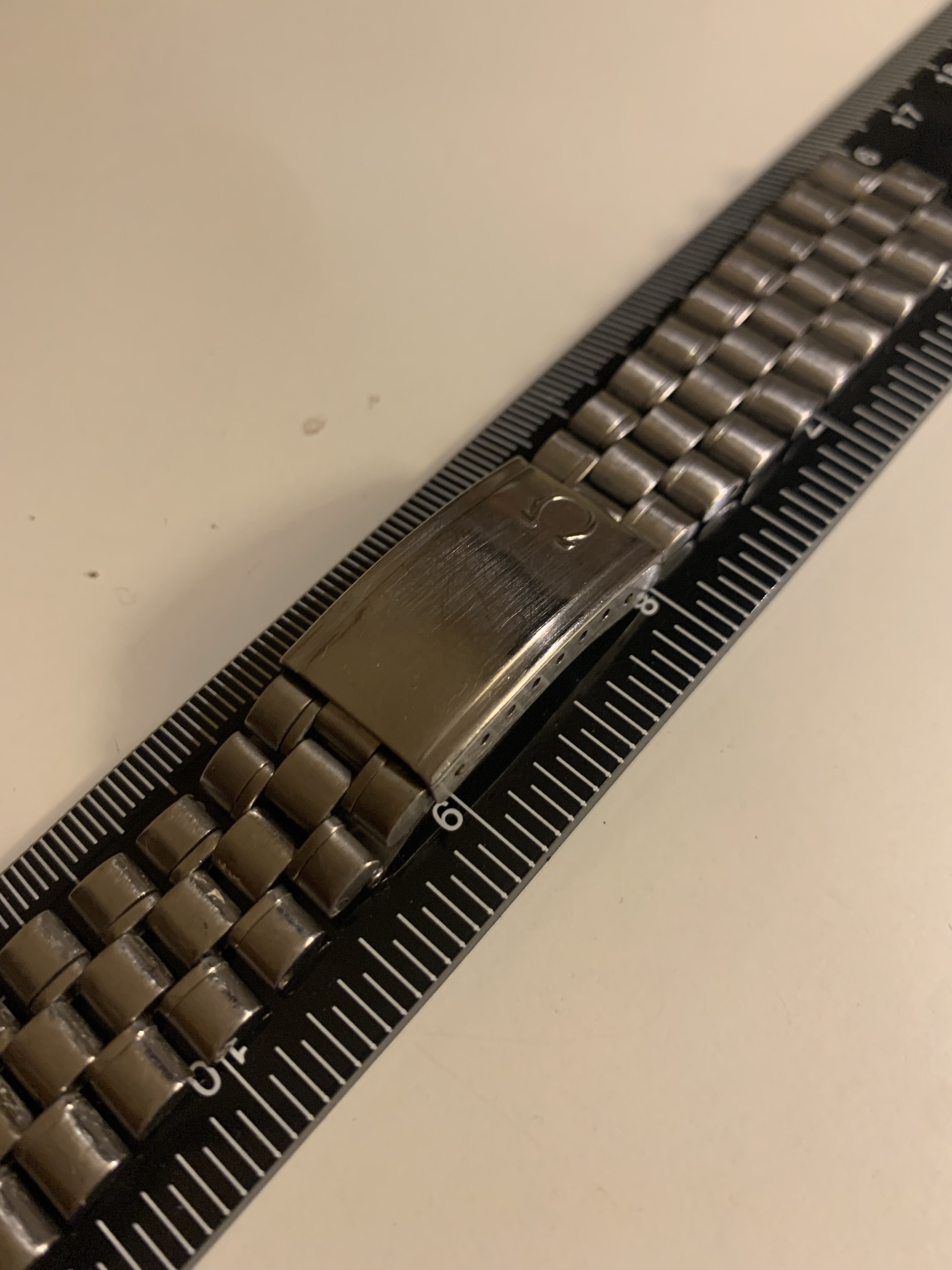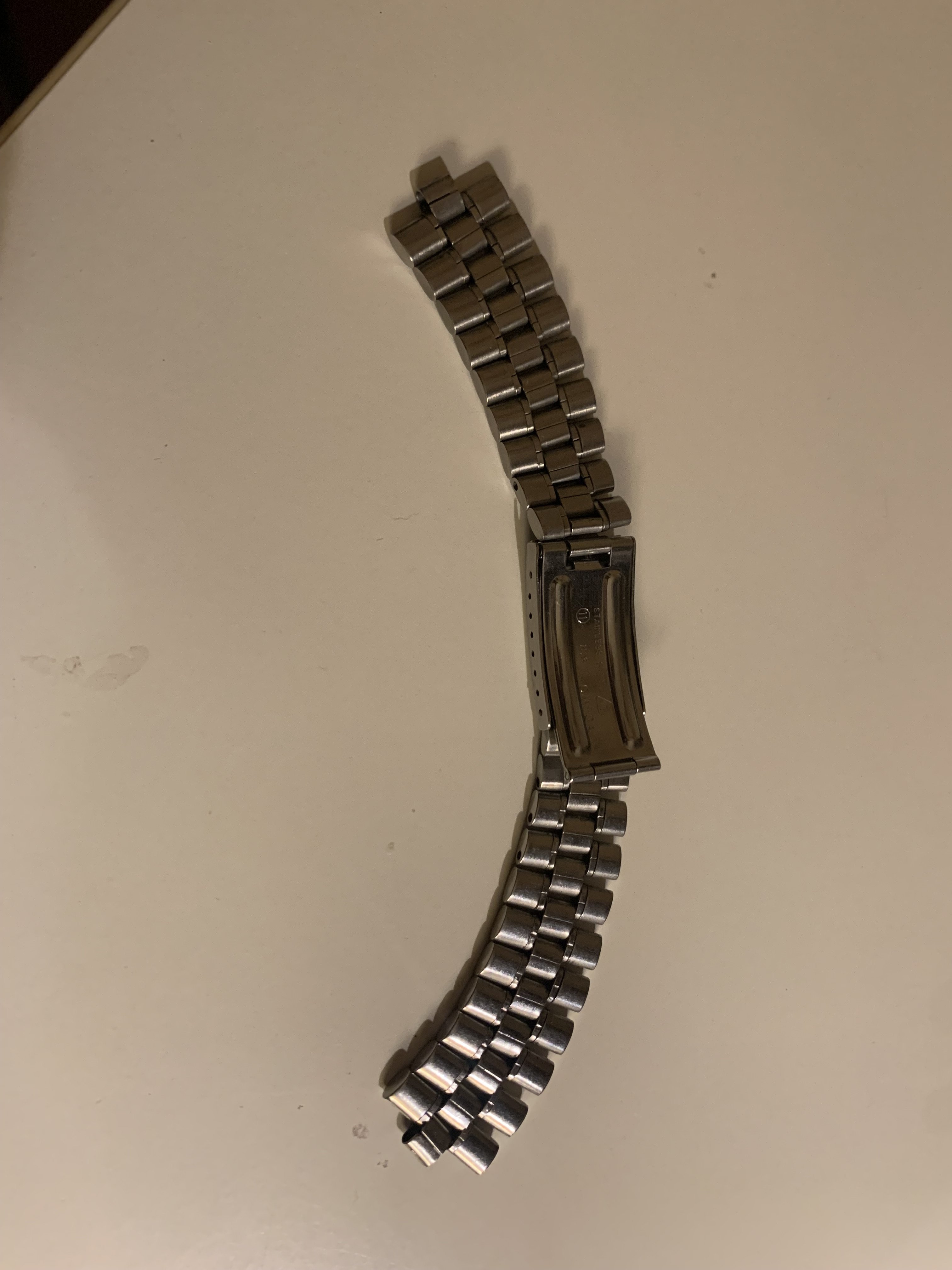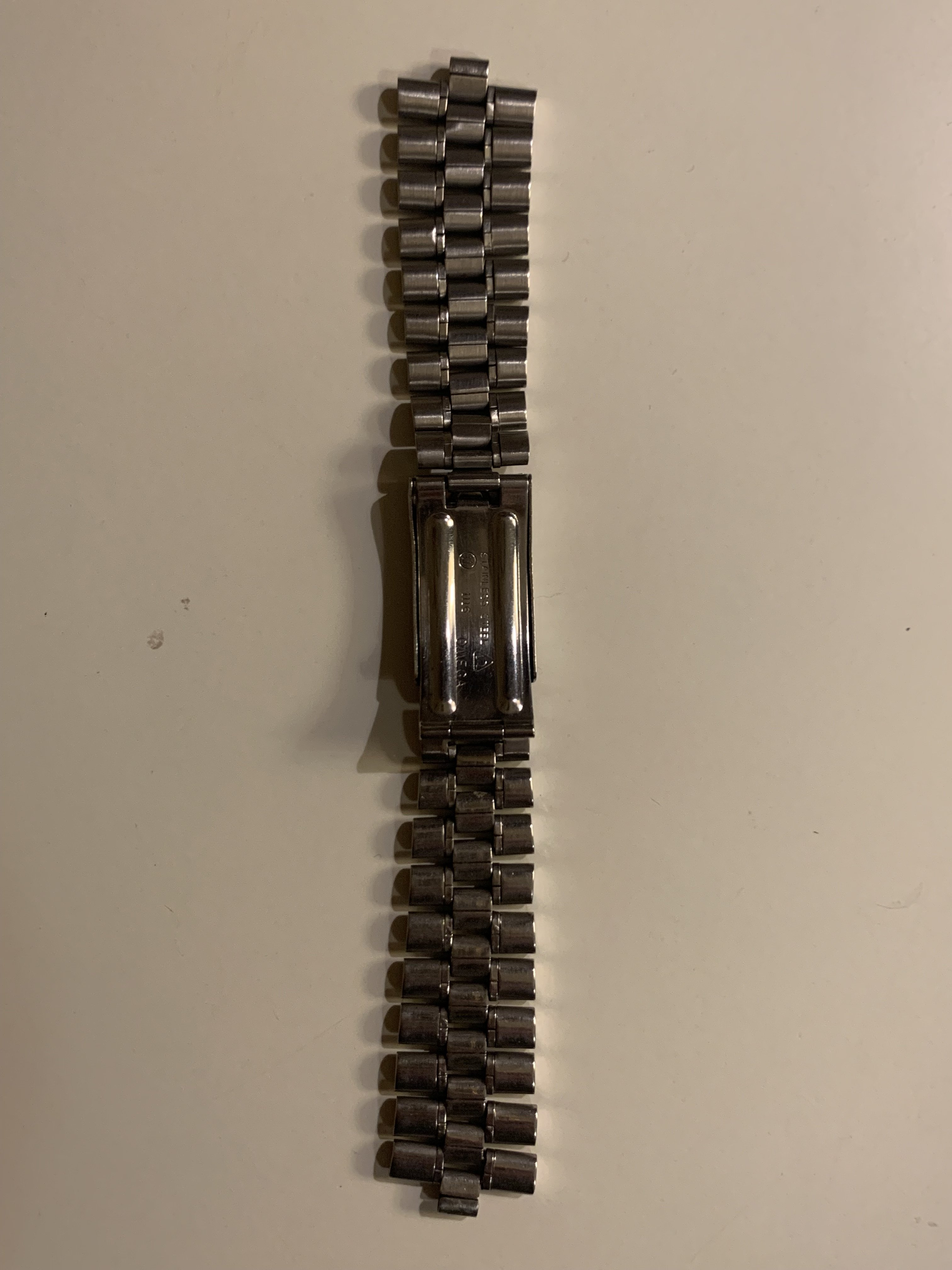 The bracelet was not polished by me. It has little stretch for a 1116 and the clasp closes tight. It has a length of app. 16,5 cm (6,5 inches)It has solid steel links and a fully brushed surface. Included is a pair of original 548 end links, so the bracelet is ready to be installed on your watch.