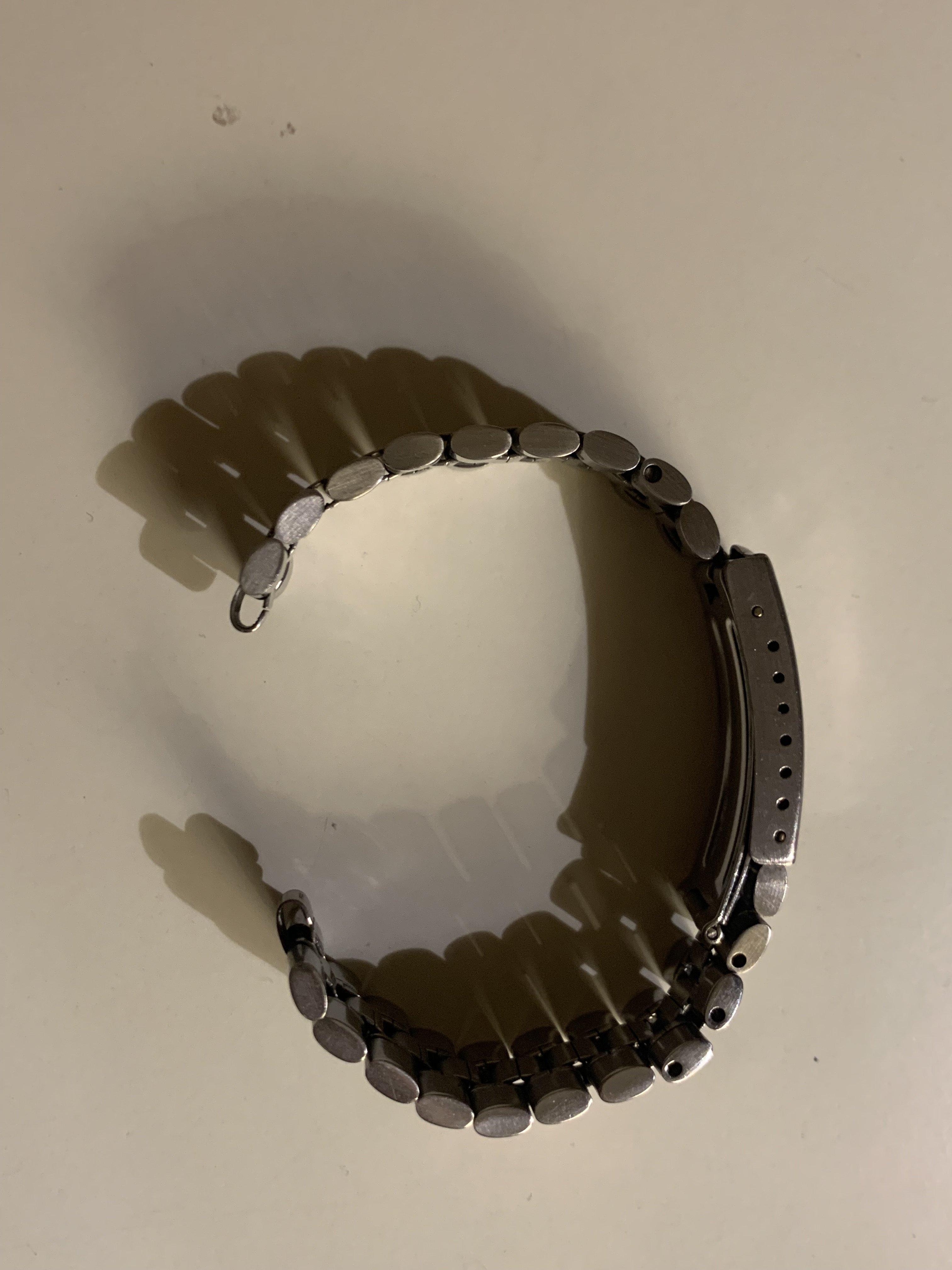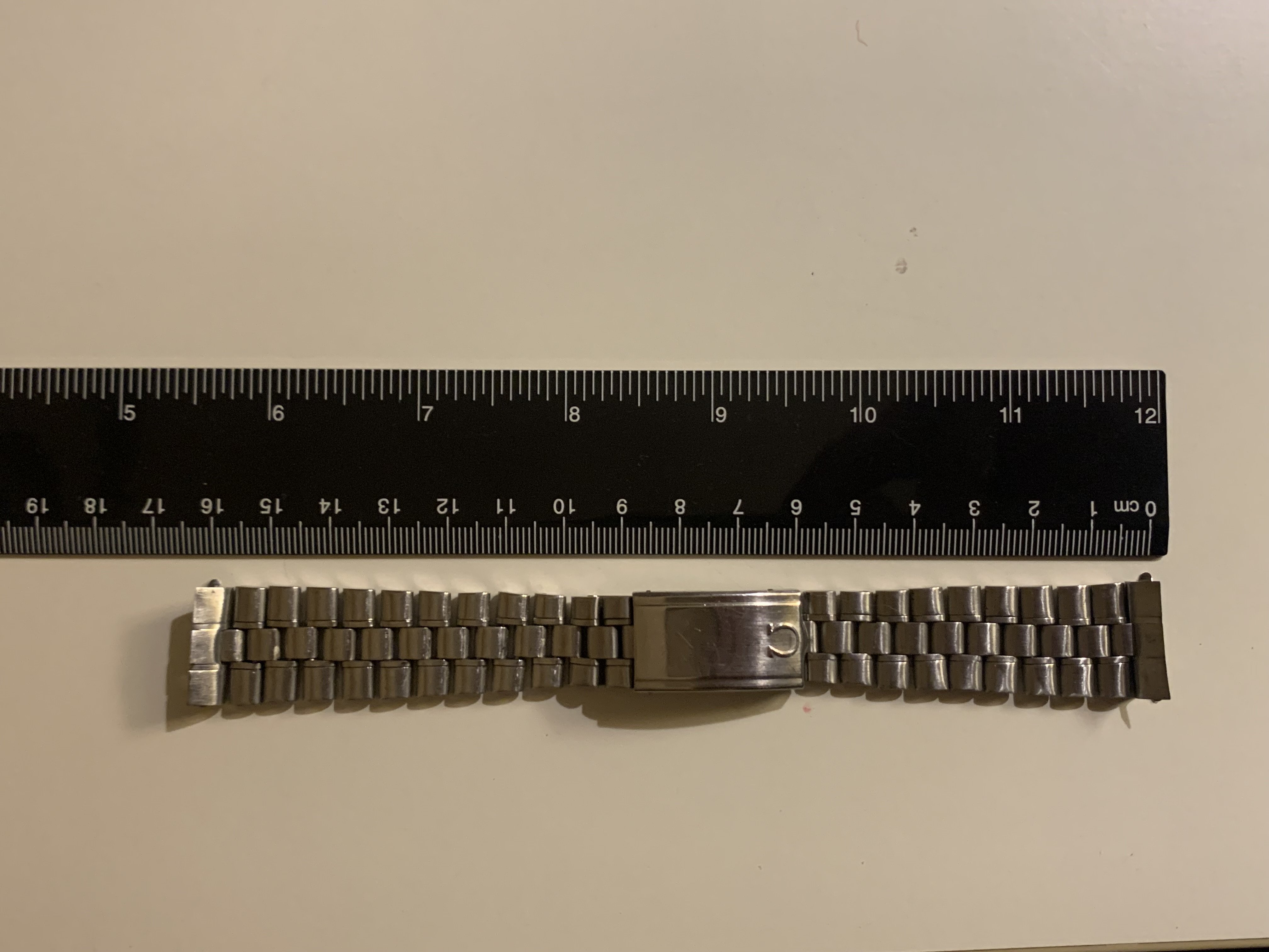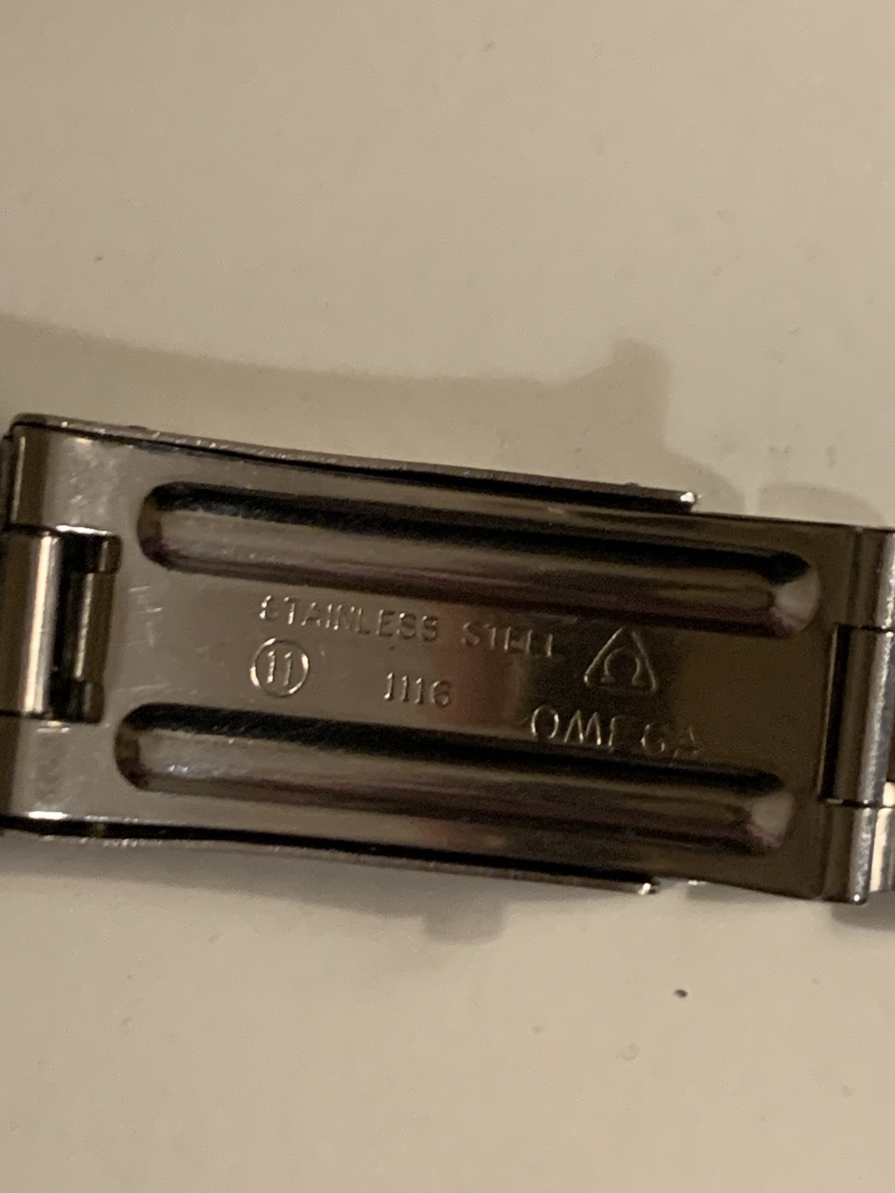 The bracelet was not polished by me. It has little stretch for a 1116 and the clasp closes tight. It has a length of app. 16,5 cm (6,5 inches)It has solid steel links and a fully brushed surface. Included is a pair of original 548 end links, so the bracelet is ready to be installed on your watch.