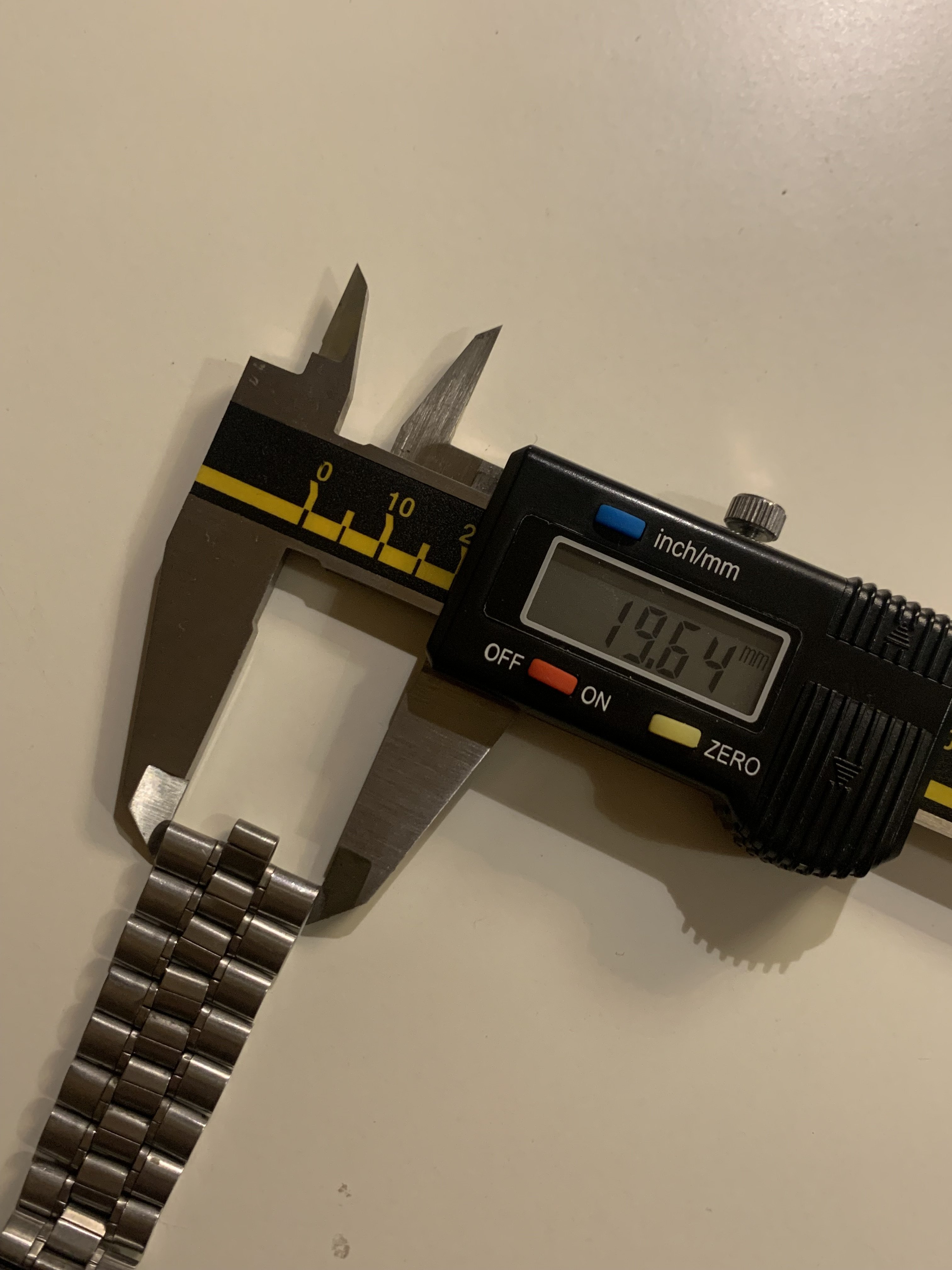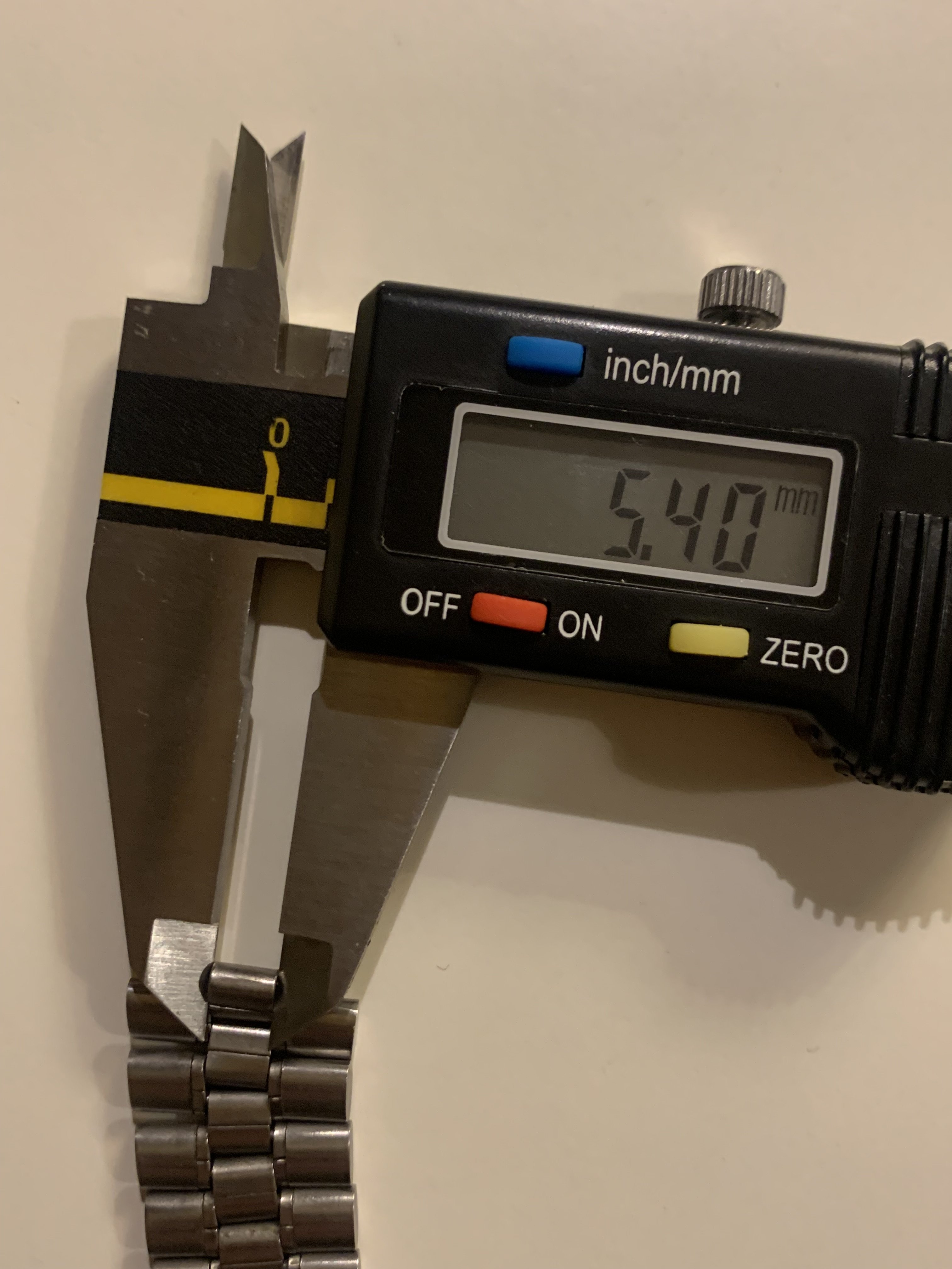 Last link has a width of app. 19,64 mm, the link that fits the end link is about 5,40 mm. For additional dimensions please ask and I will measure and provide more pics.