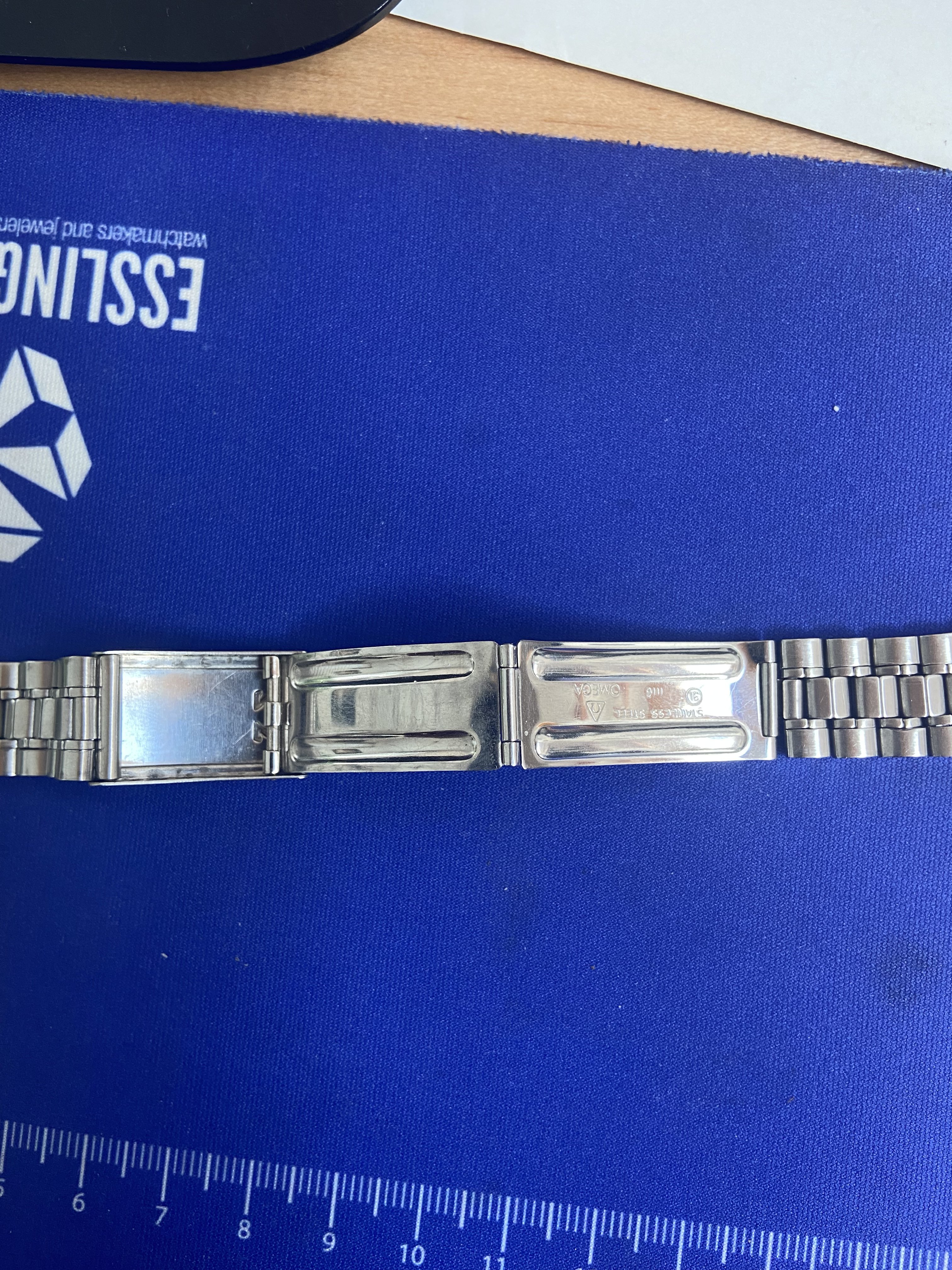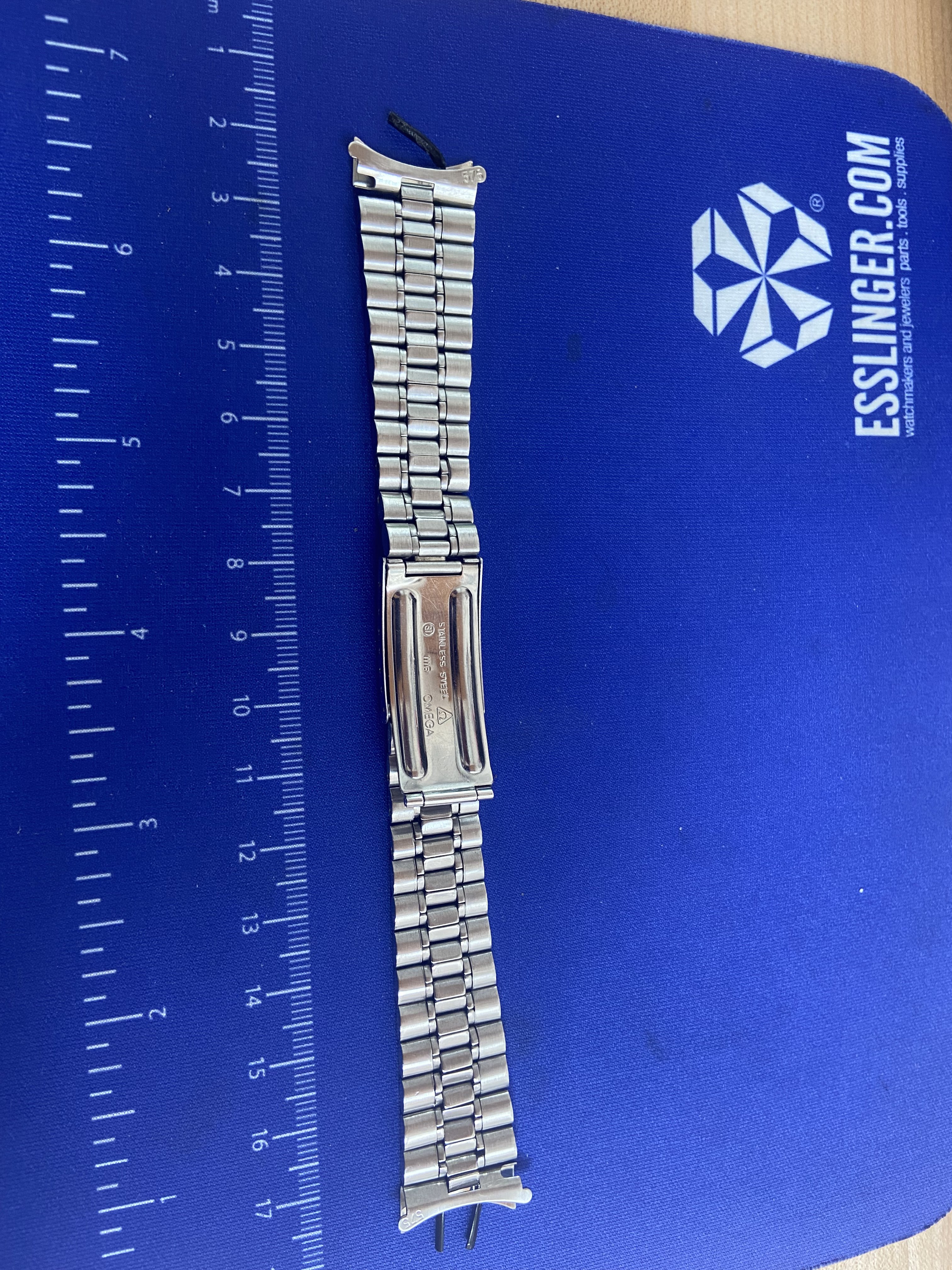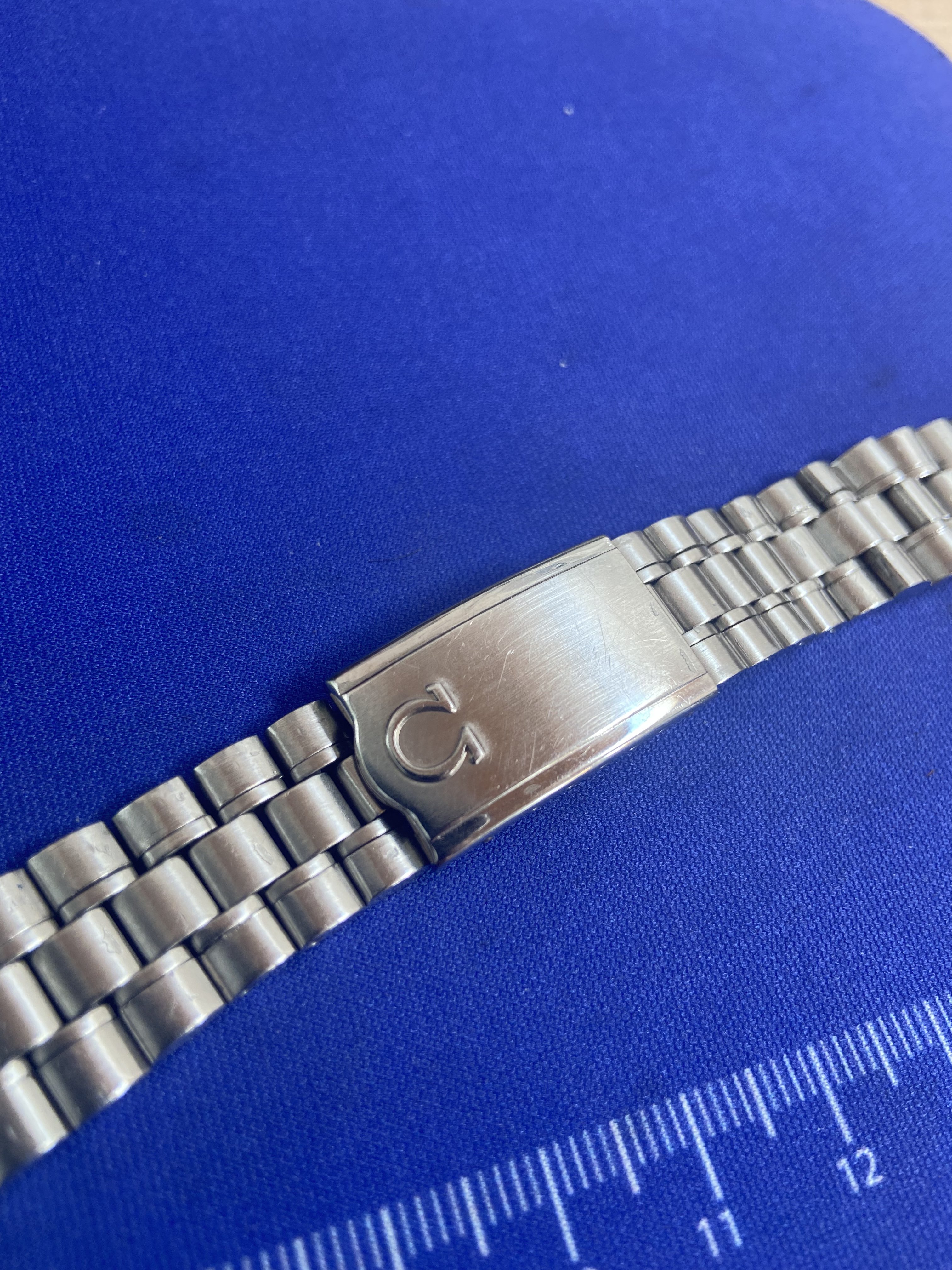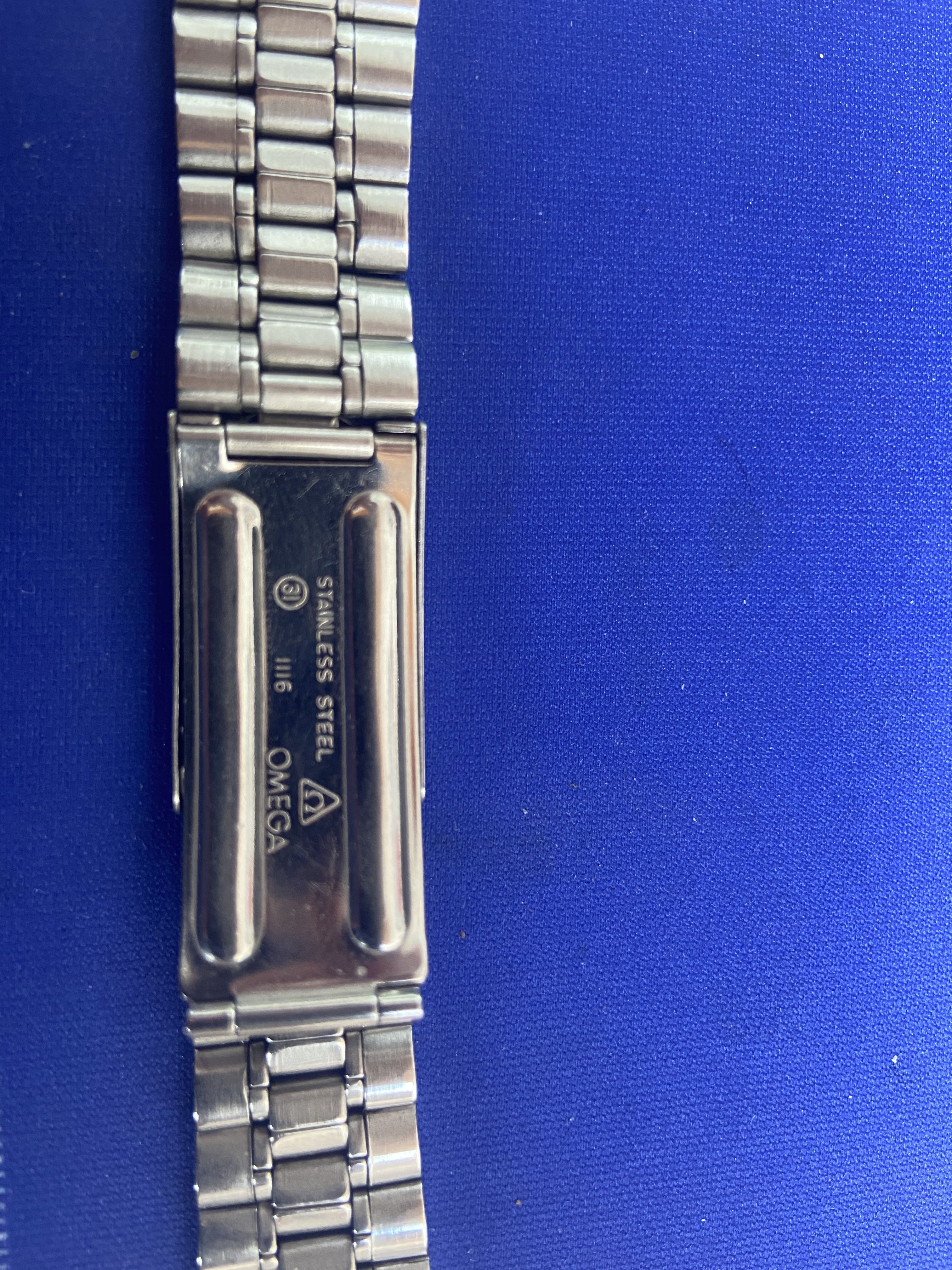 Nice 1116 with 20mm 575 end links. Bracelet is appropriate for Speedmaster models 105.012-66, both 145.012 models, and 145.022-68 through -71 models according to MWO. This is the bracelet the one for the modern 3861 is based on. It also works for late 60’s and early 70’s Seamasters with 20mm lugs.
