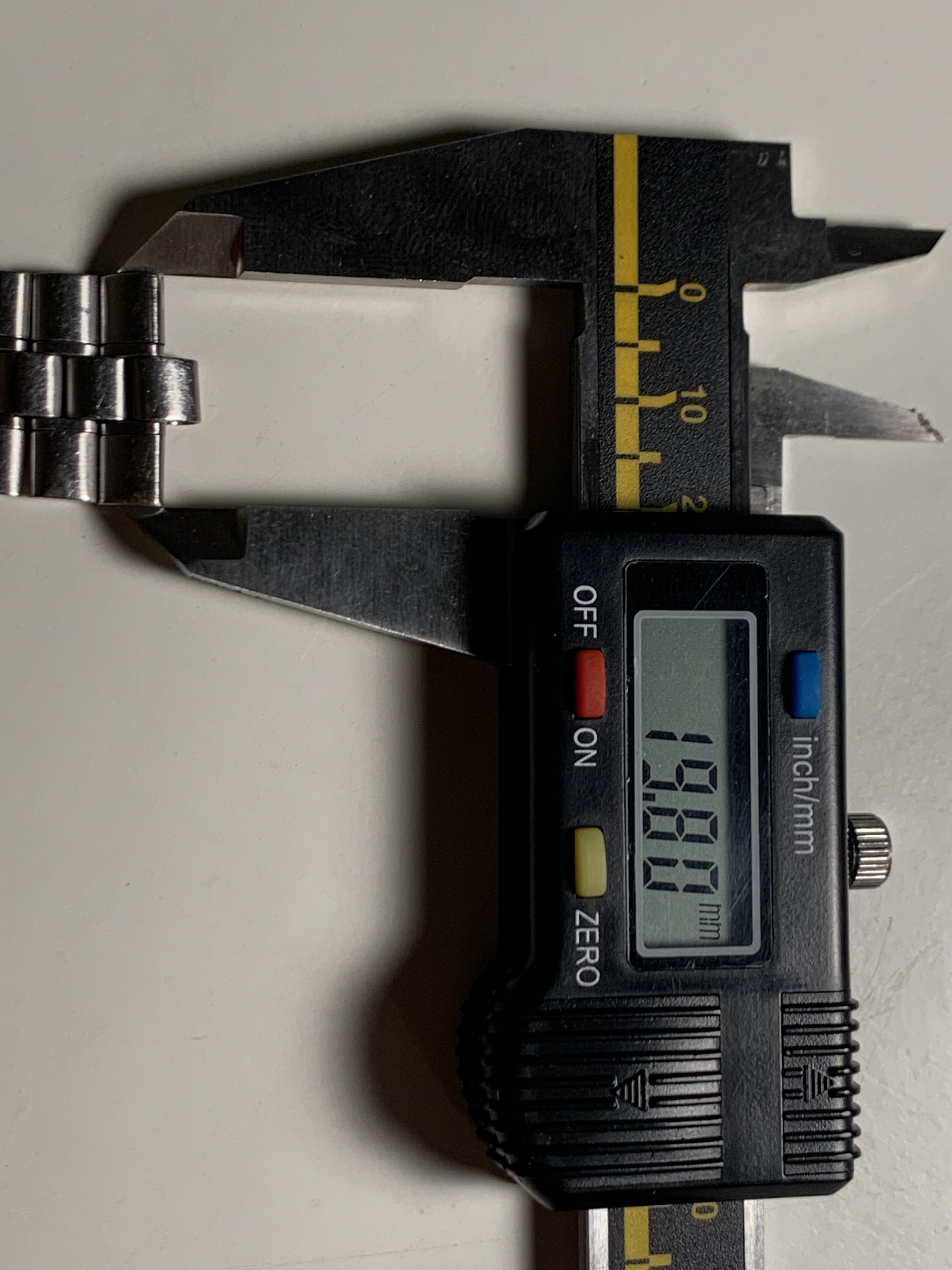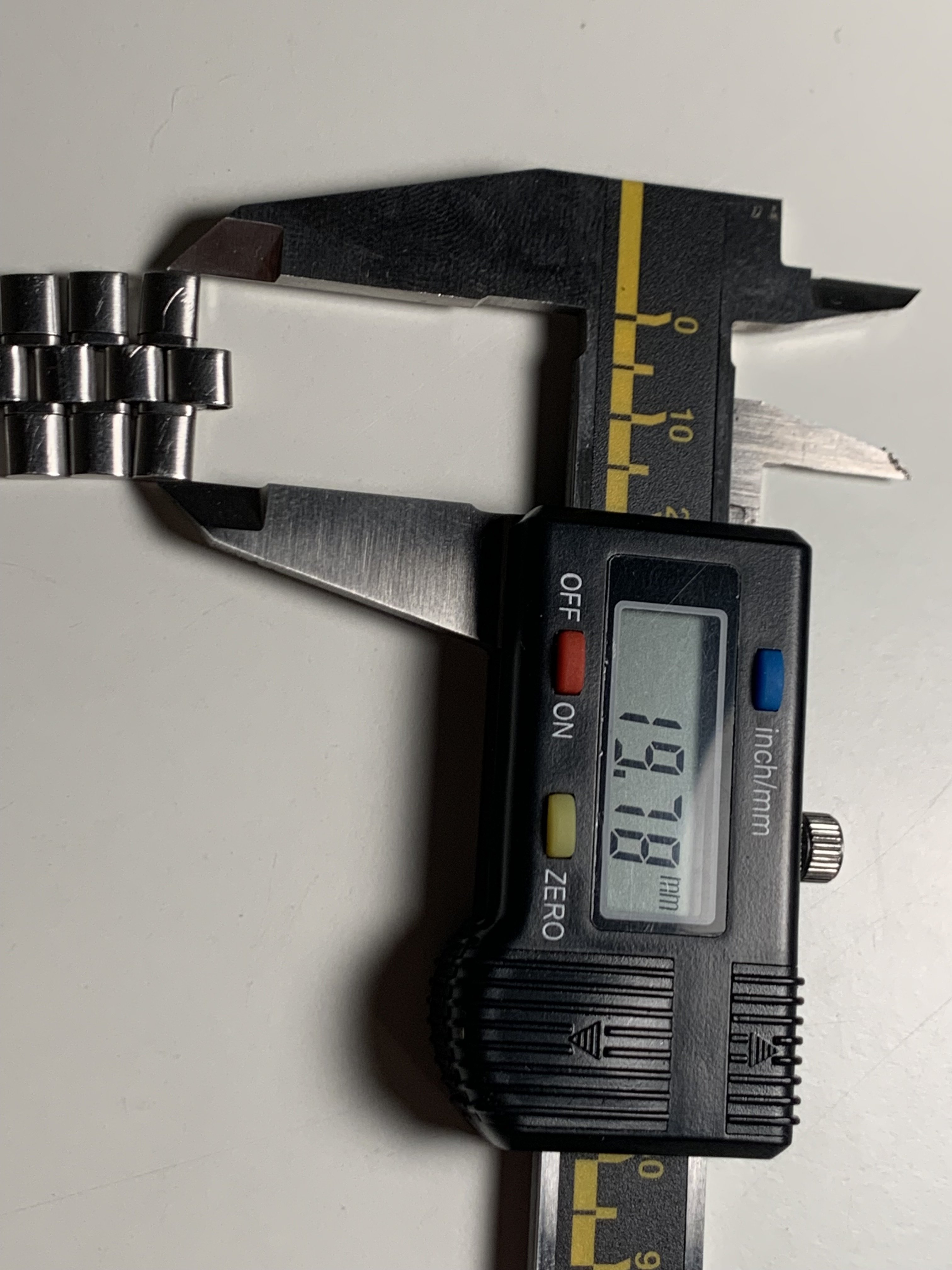 Last link has a width of app. 19,80 mm, the link that fits the end link is about 5,40 mm. For additional dimensions please ask and I will measure and provide more pics.
