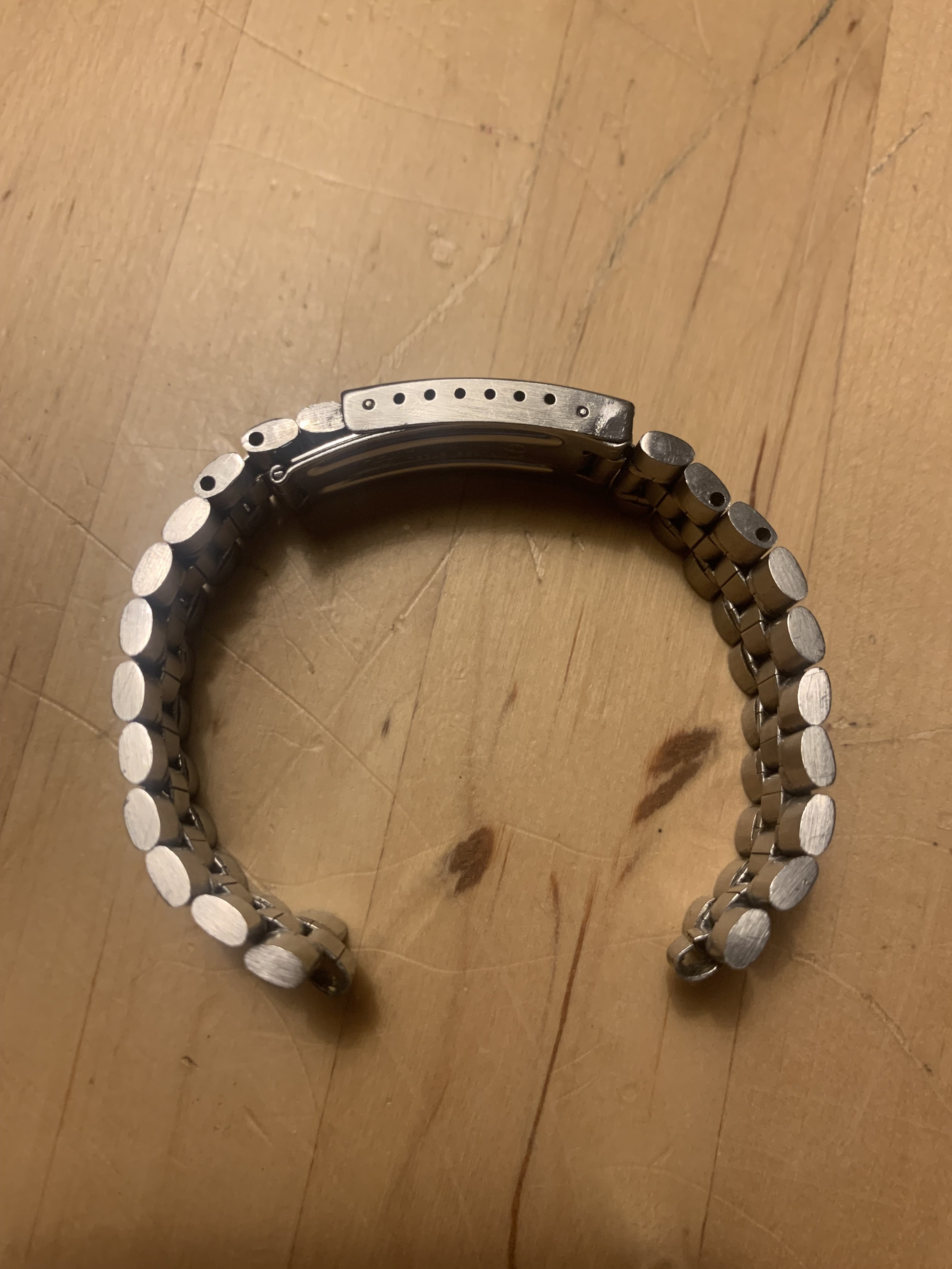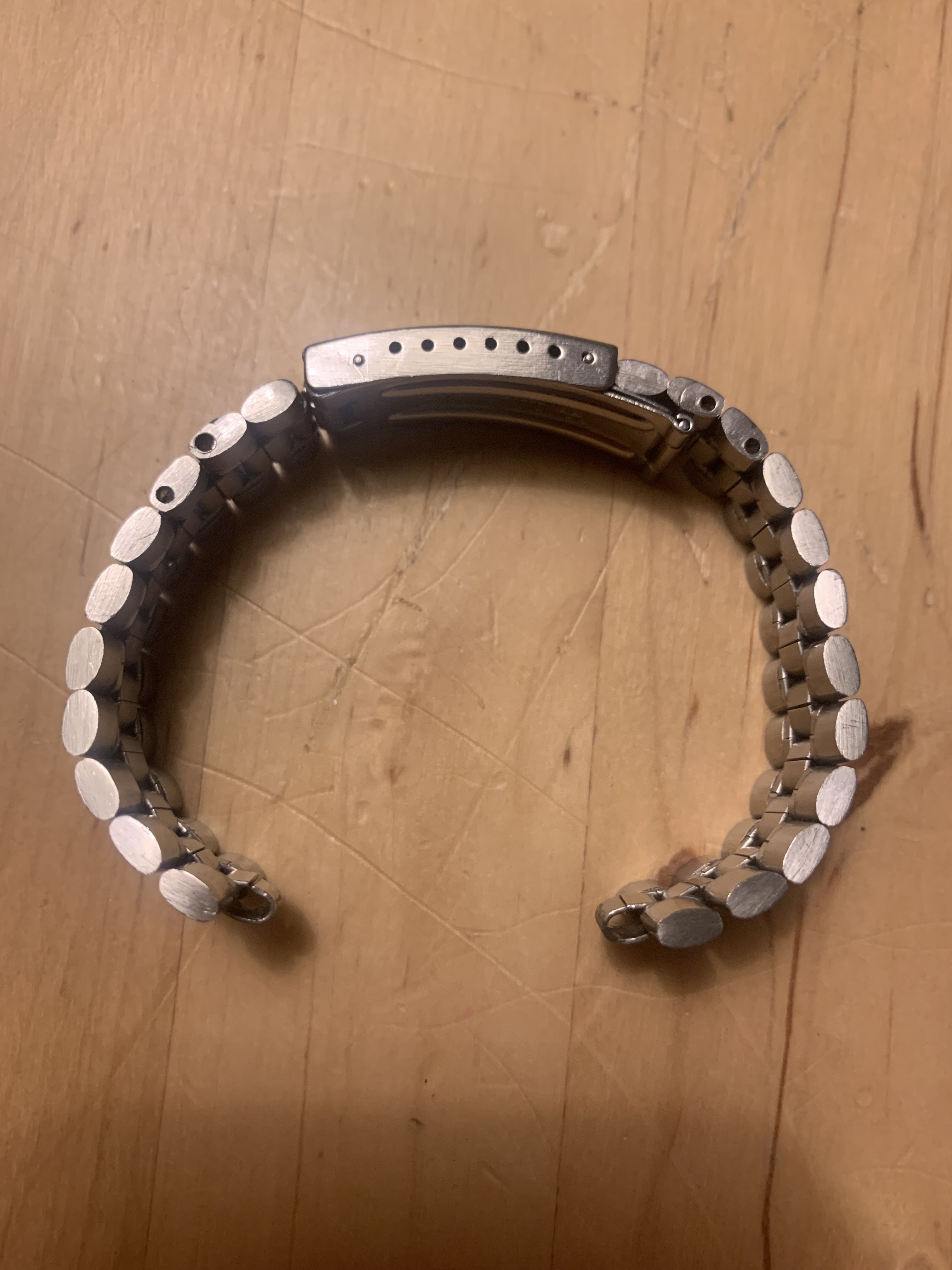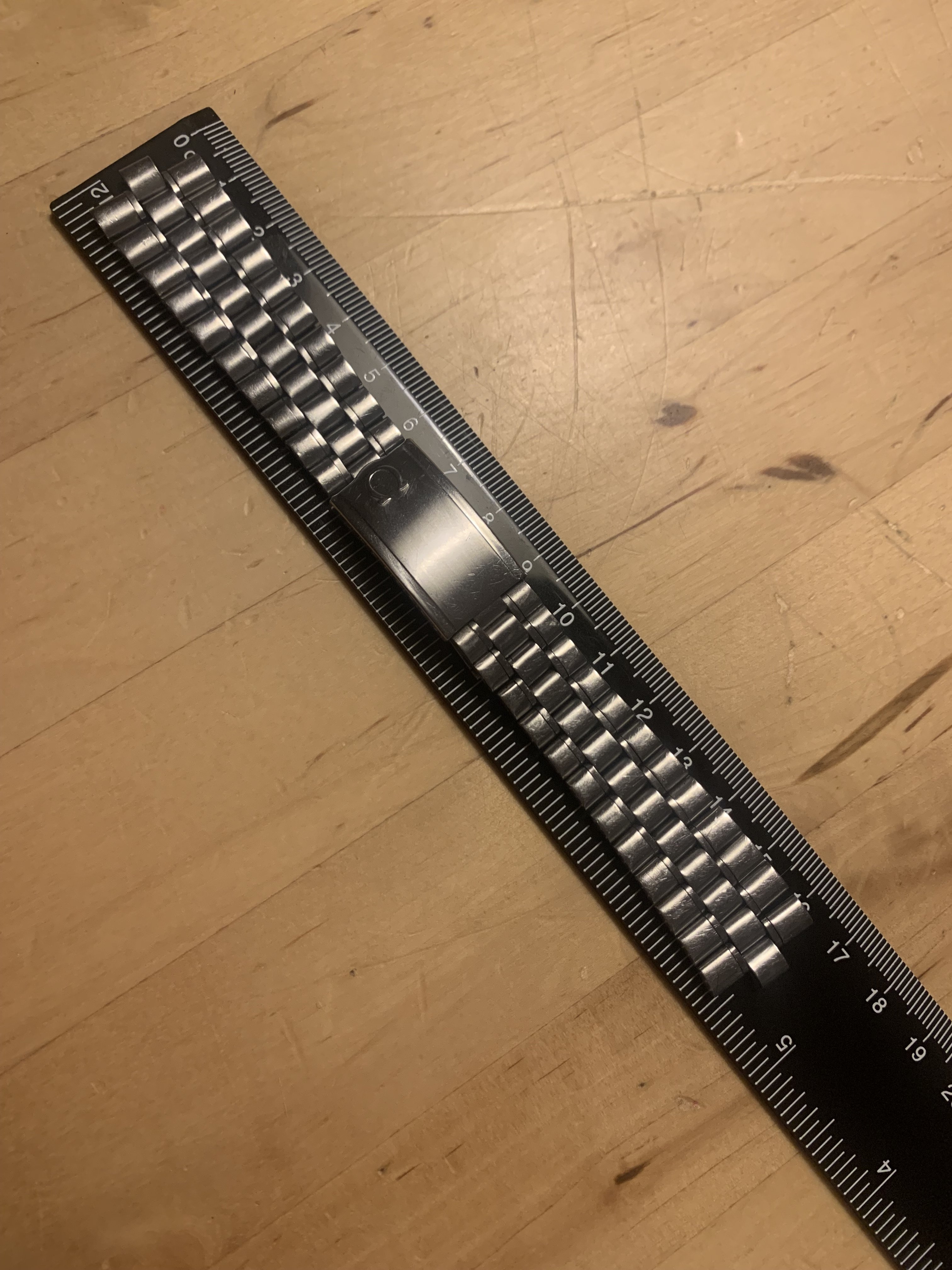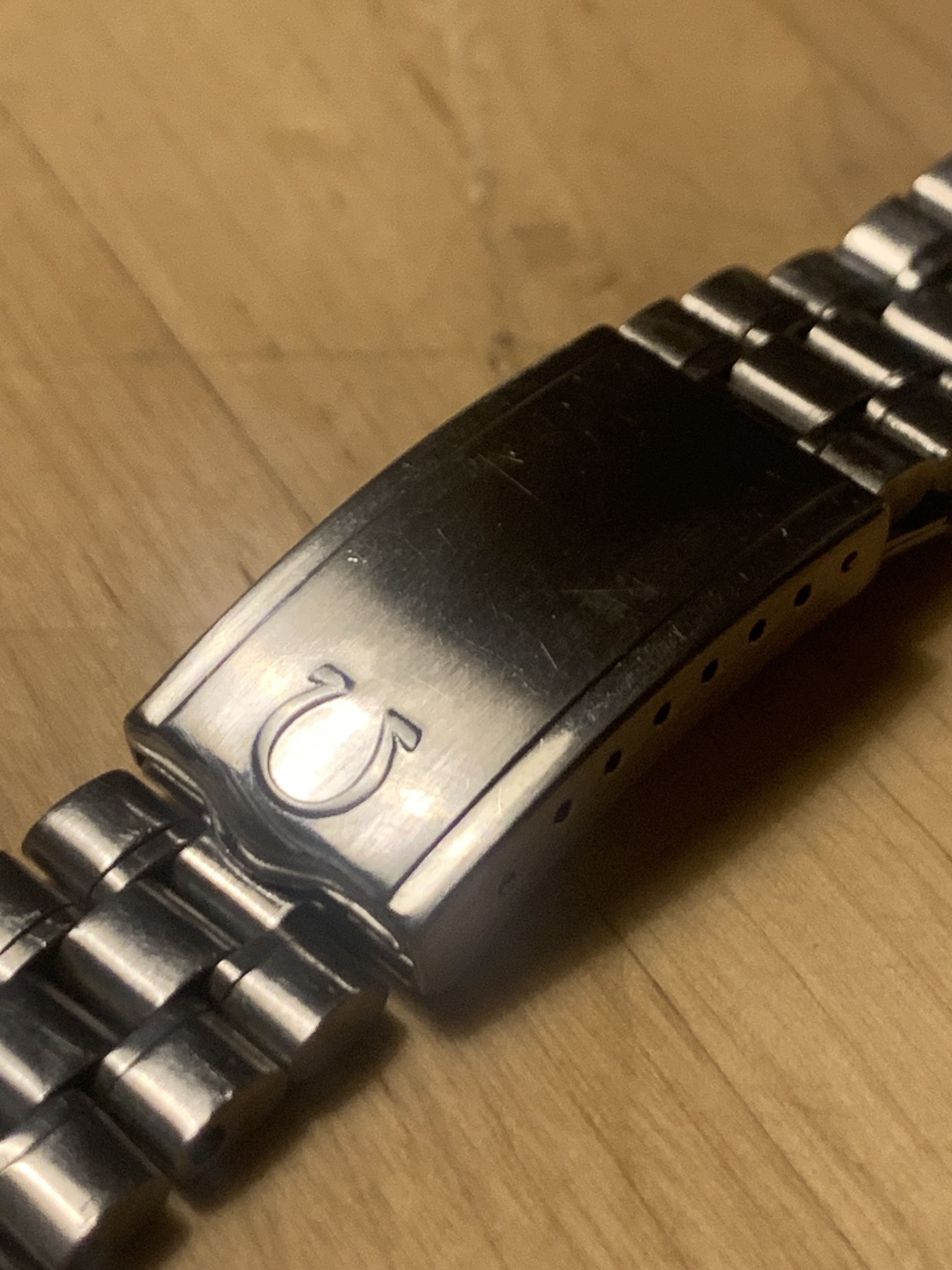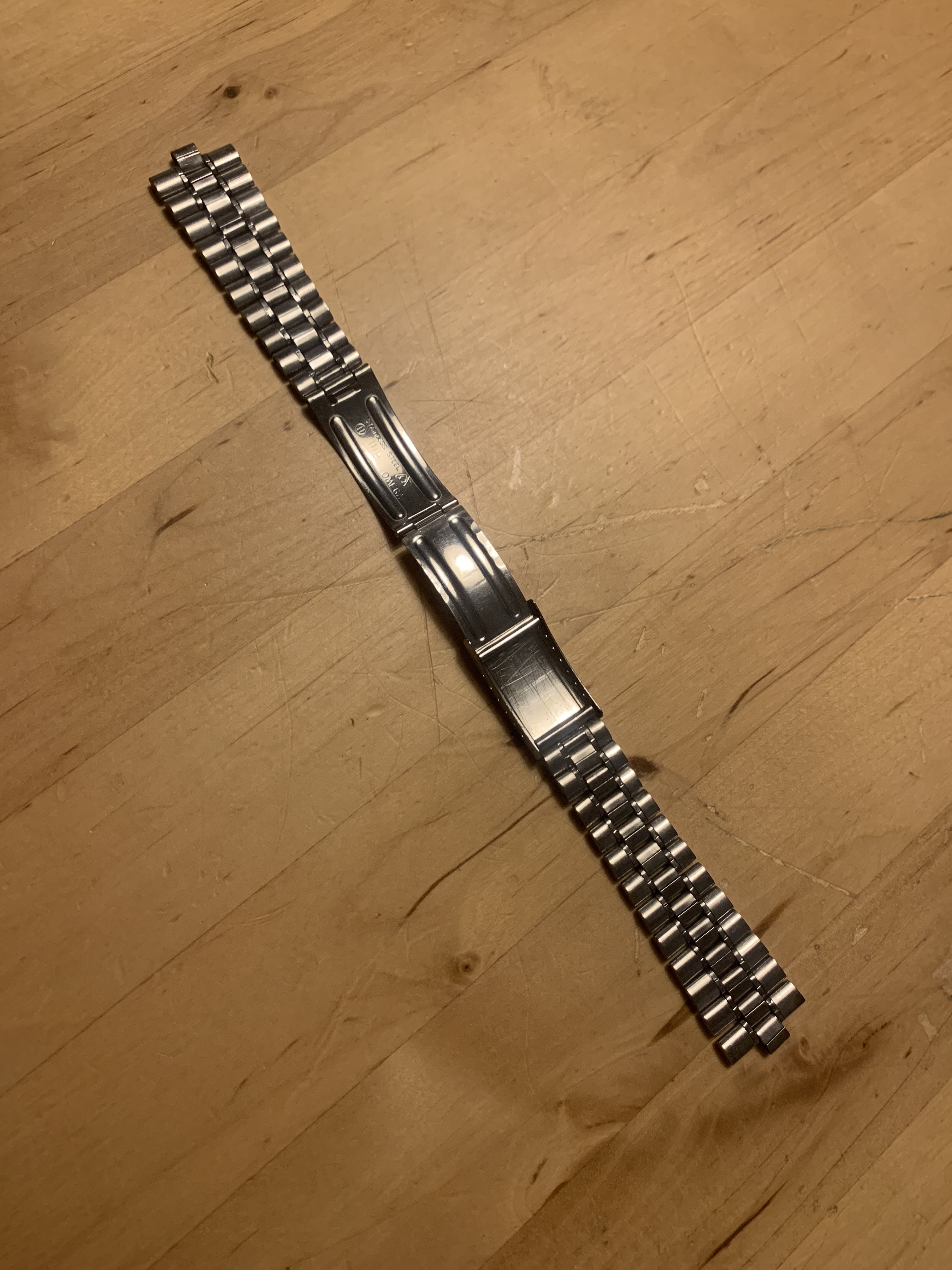 The bracelet was not polished by me. It has very little stretch for a 1116 and the clasp closes tight. It has 22 links and a length of app. 16,5 cm (6,5 inches)It has solid steel links and a fully brushed surface. Included is a pair of brand new and still sealed original 575 end links, so the bracelet is ready to be installed on your watch.
