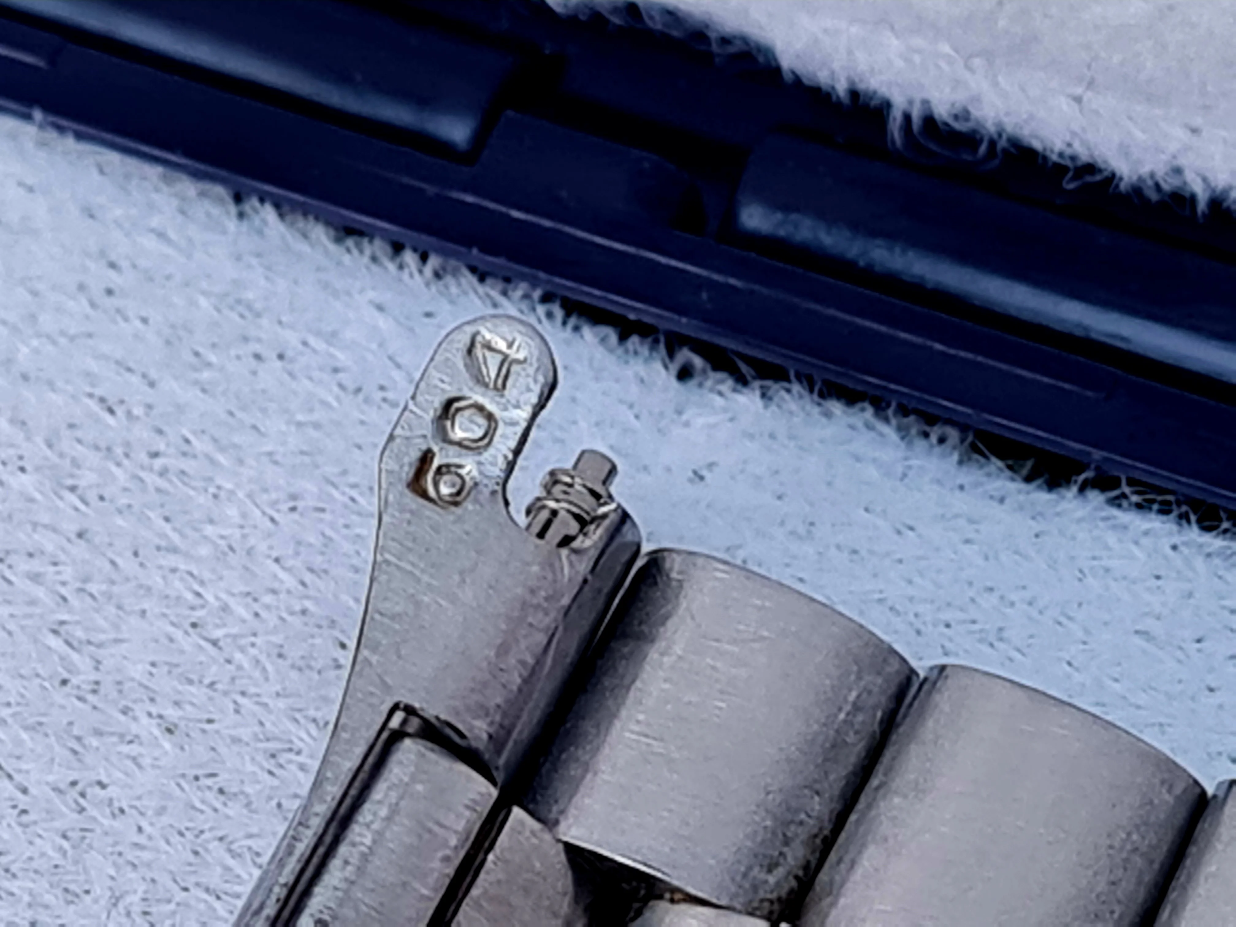 The bracelet is in good condition with only minor stretch, unpolished brushed surface and has a length of 170mm (plus about 8-10mm inside the clasp).