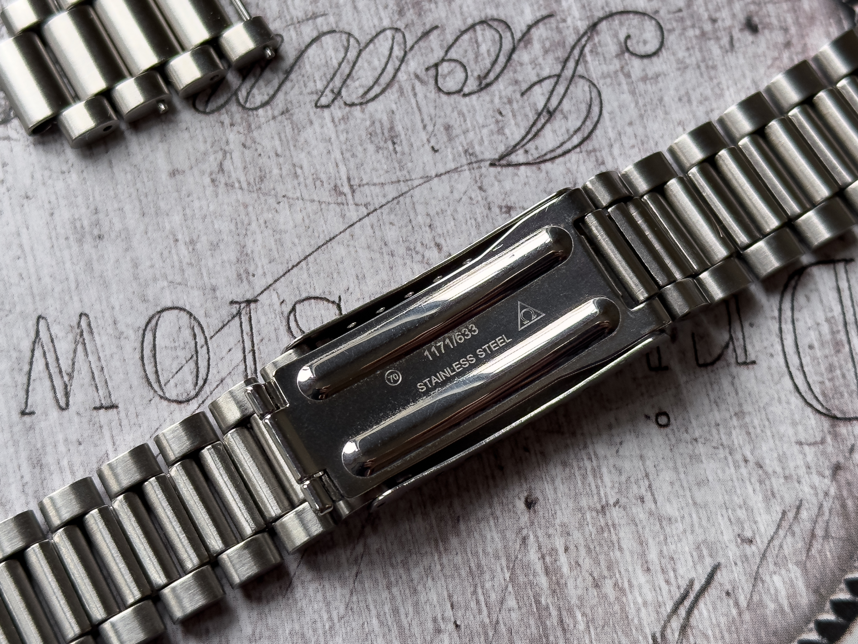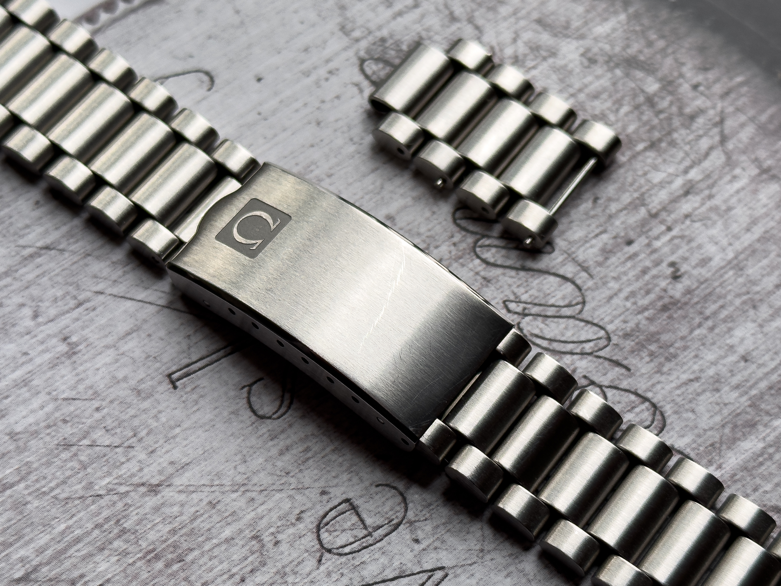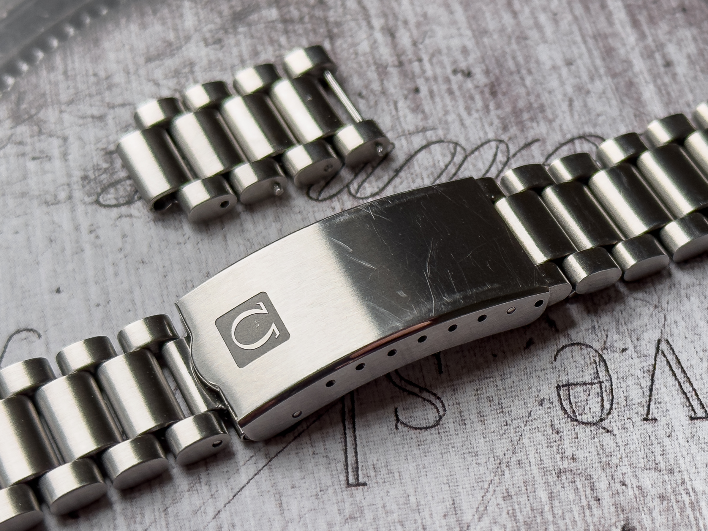 ·For sale is an Omega 1171/633 modern service bracelet. I purchased this new around mid last year and have worn it in rotation. I have since acquired a few other OEM bracelets that I wear more often. This bracelet looks and feels great, and functions how you would expect it to. The clasp closes securely with a nice snap into place. It has been resized but includes all original links, making this a full size bracelet. There are superficial wear marks on the clasp as you'd expect from being worn, but beyond that, no damage. I took extra photos of the clasp to ensure the wear marks are shown. Depending on the light, my phone had a hard time photographing them but I did my best to highlight them.