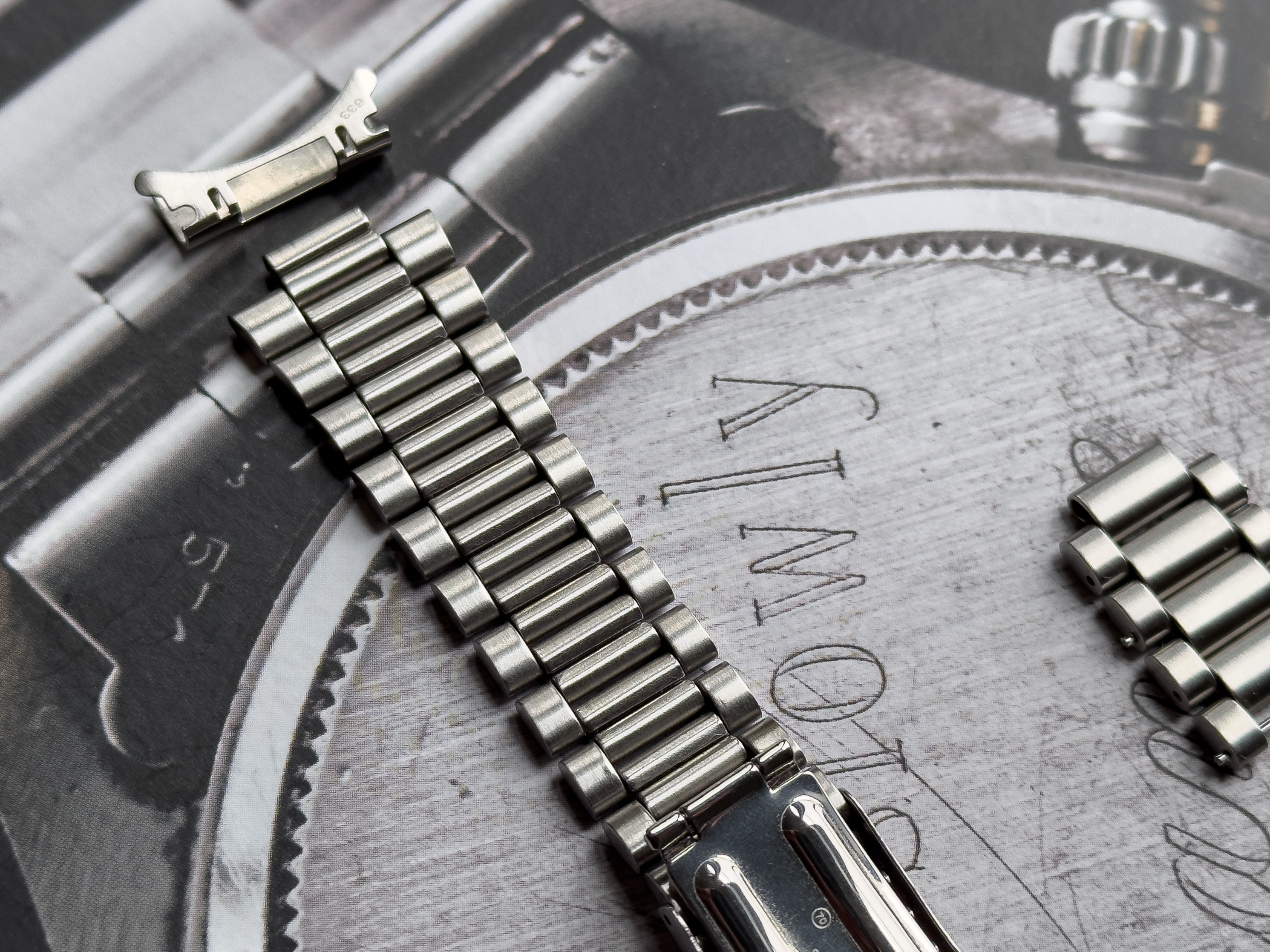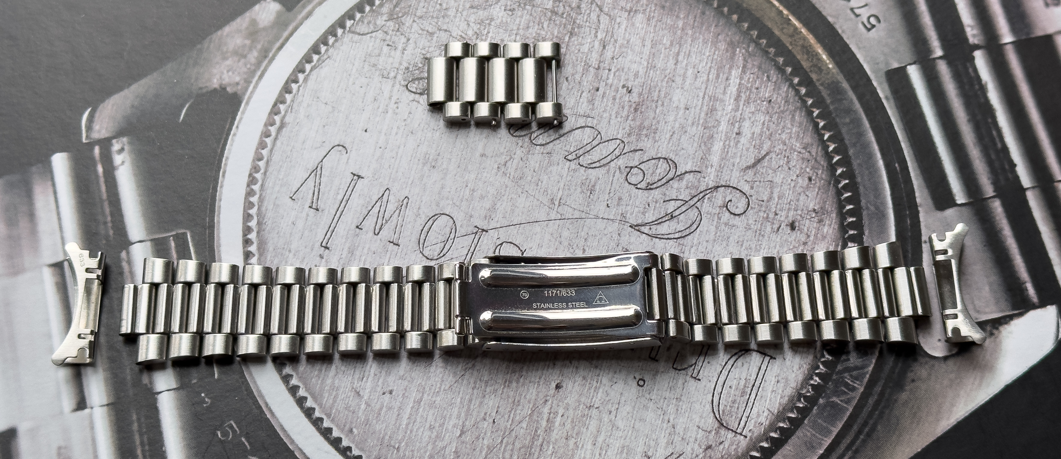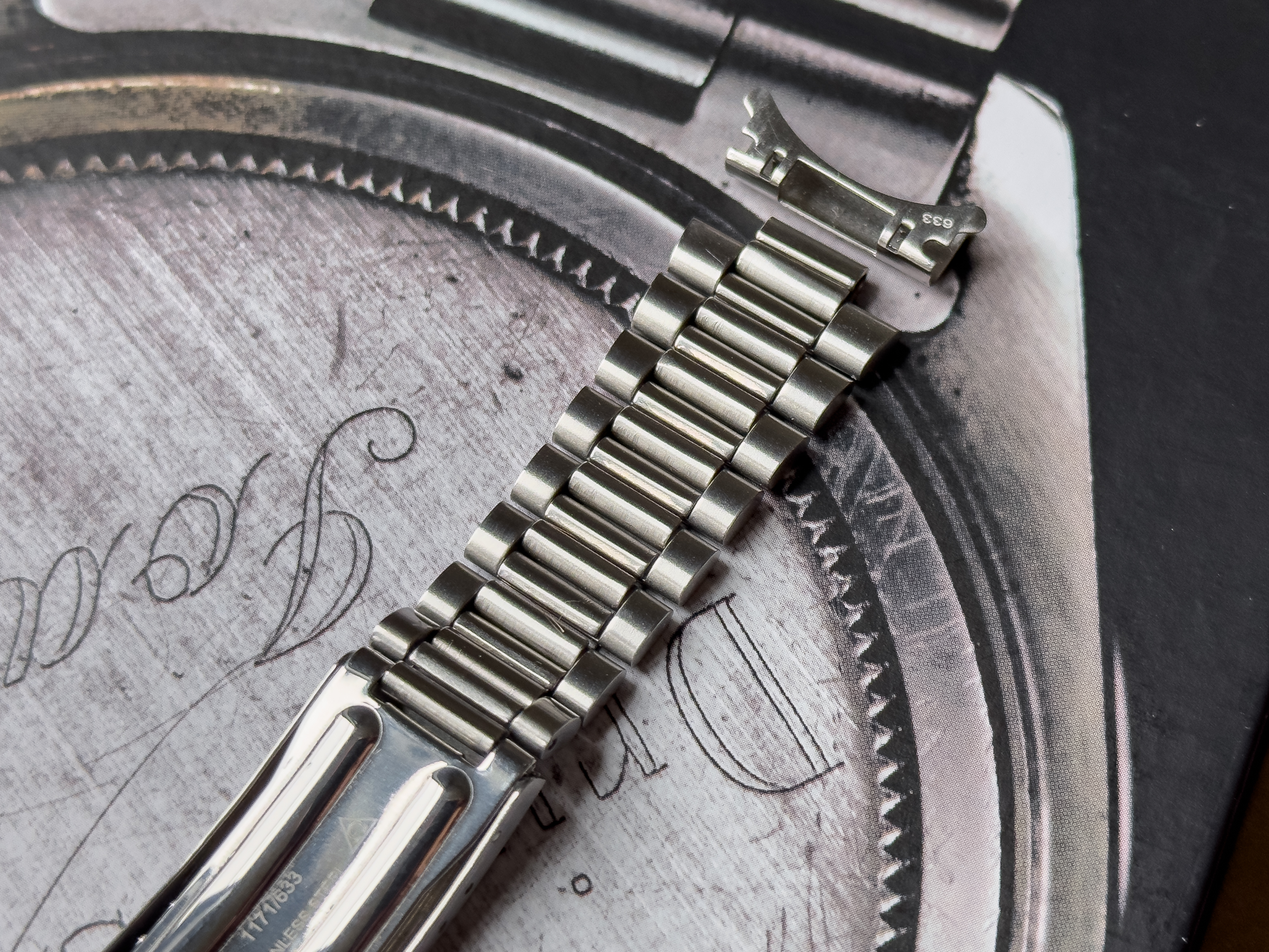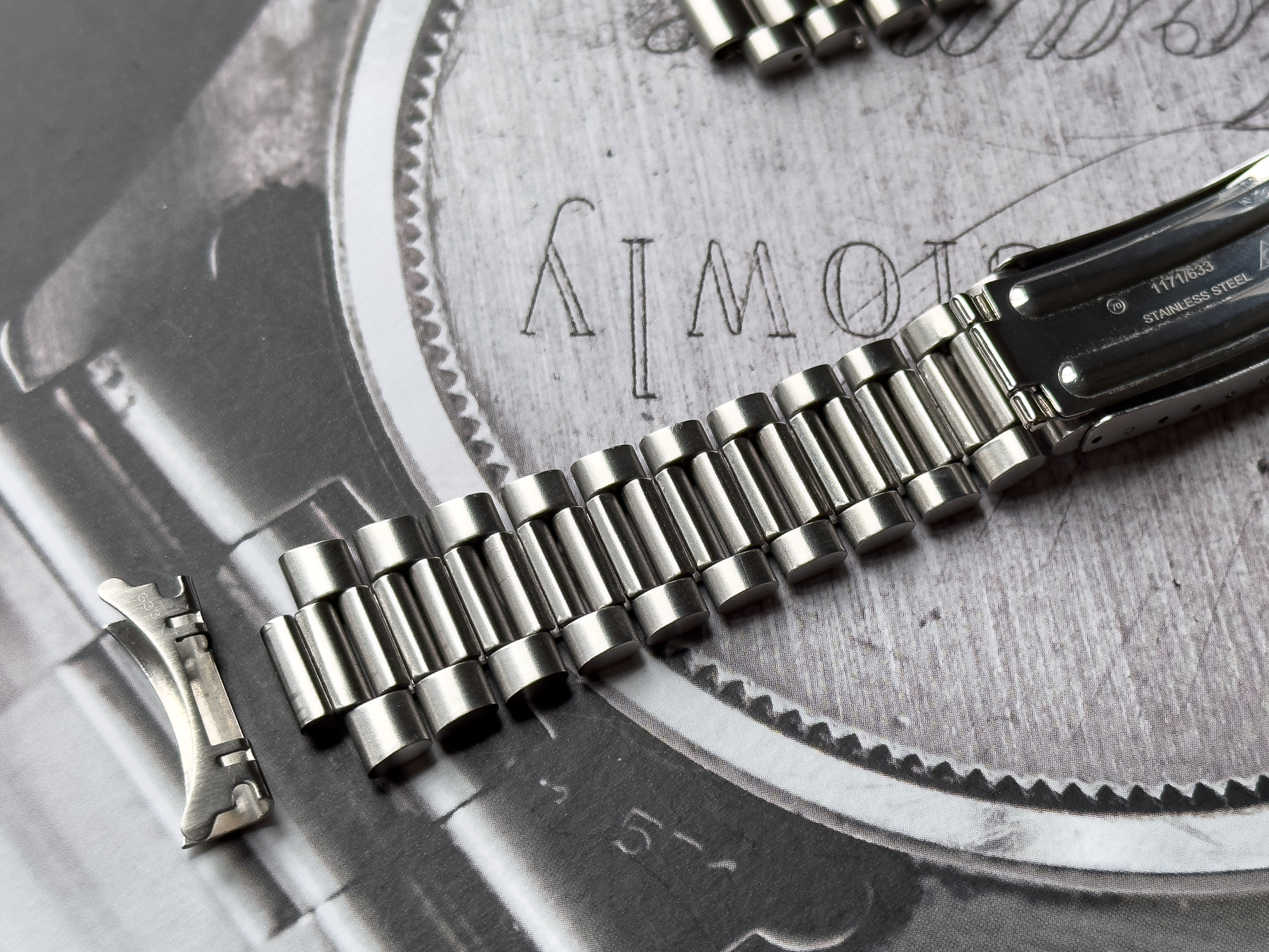 ·For sale is an Omega 1171/633 modern service bracelet. I purchased this new around mid last year and have worn it in rotation. I have since acquired a few other OEM bracelets that I wear more often. This bracelet looks and feels great, and functions how you would expect it to. The clasp closes securely with a nice snap into place. It has been resized but includes all original links, making this a full size bracelet. There are superficial wear marks on the clasp as you'd expect from being worn, but beyond that, no damage. I took extra photos of the clasp to ensure the wear marks are shown. Depending on the light, my phone had a hard time photographing them but I did my best to highlight them.