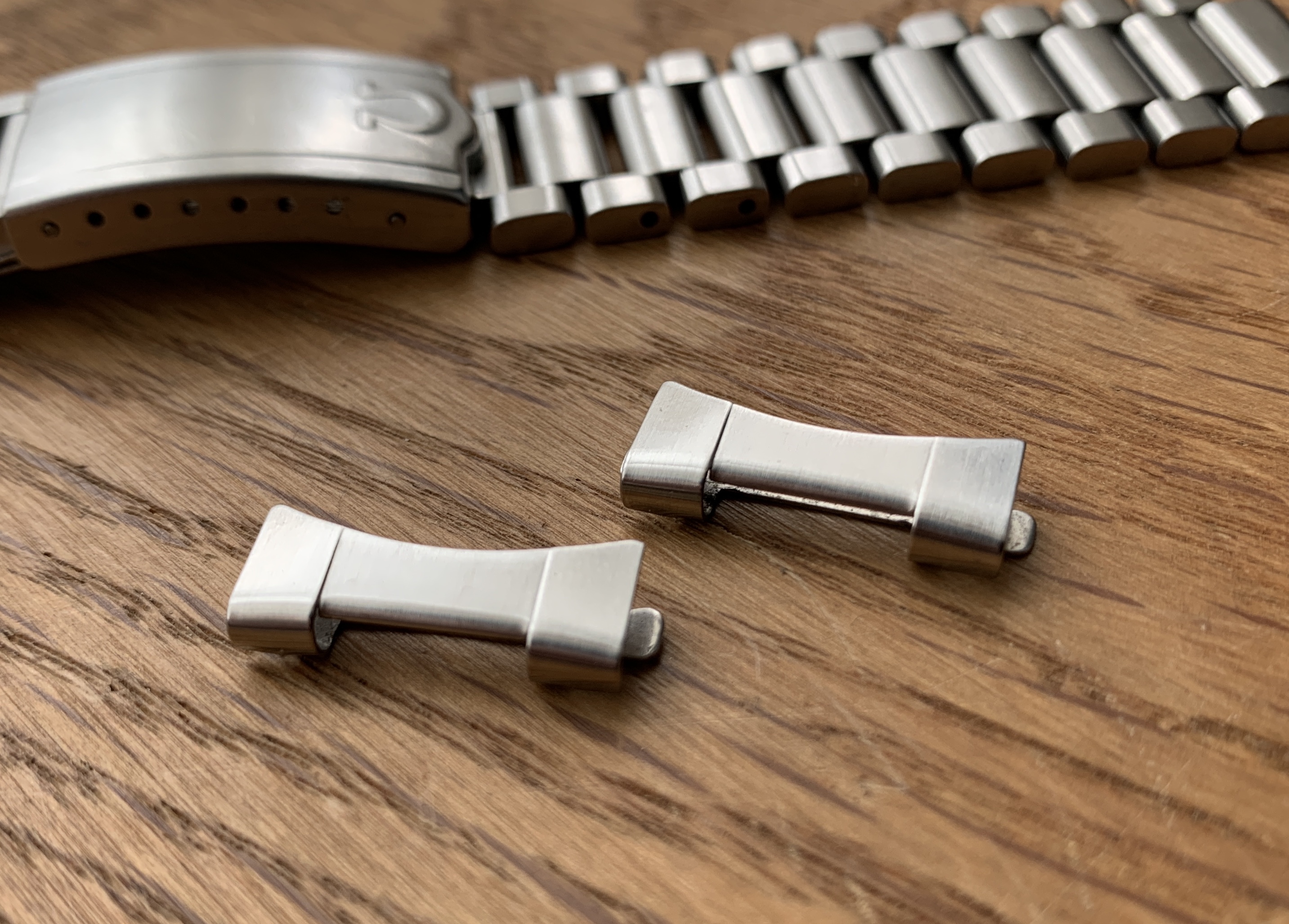 This bracelet is delivered with authentic and non-modified Omega 640 20mm endlinks. Because of the bracelet width of 18.8mm you can also modify the endlinks to fit 19mm lug width watches, like the Ed White, FOIS, CK2998 etc.
