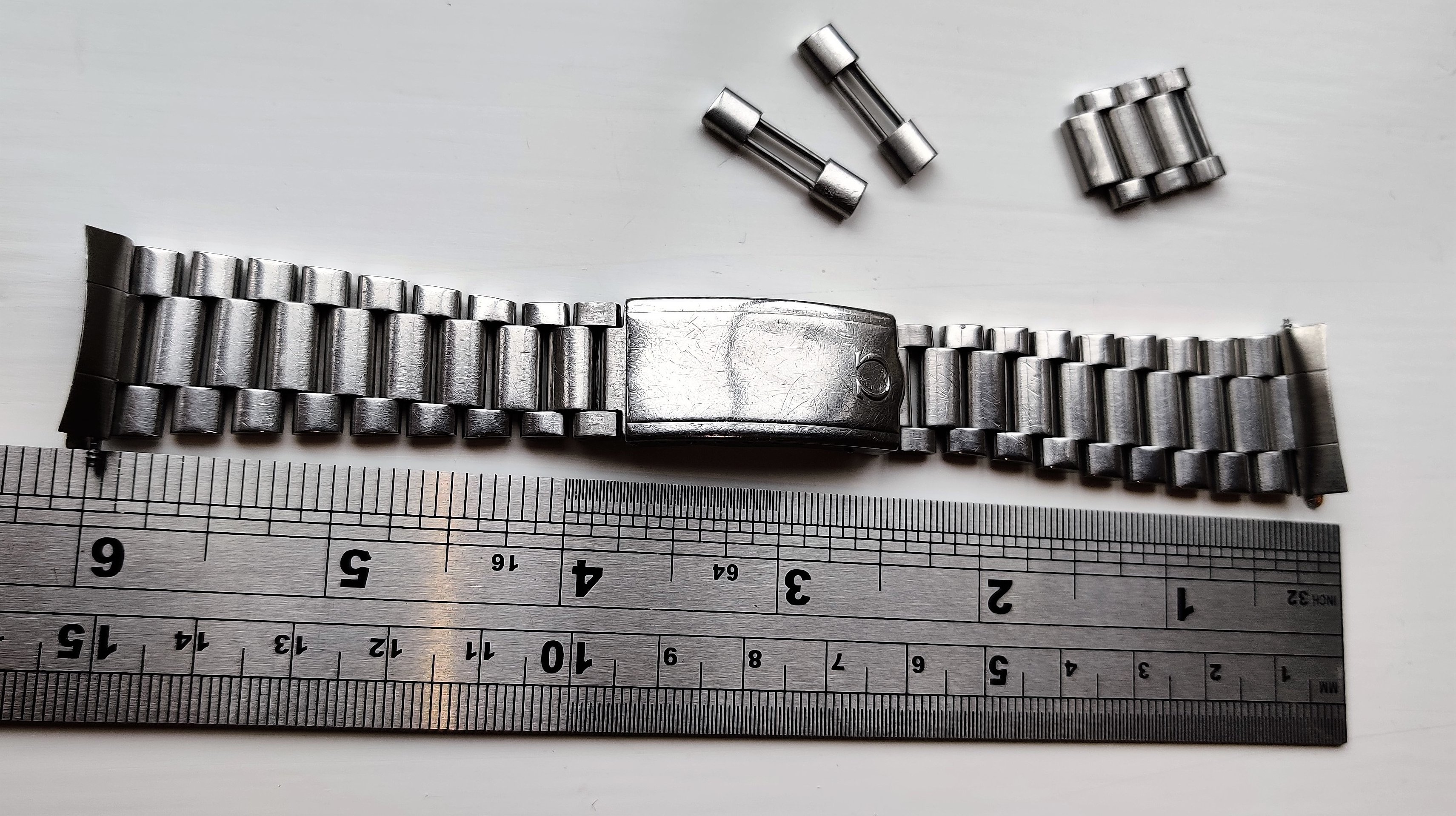 https://omegaforums.net/threads/seamaster-chronostop-on-1184-bracelet.60073/ (though no connection with that OP). It has a decent length with 3 additional removable links and two links that were removed from the very top end (one has a bit of solder or something on it) and would need additional centre C-sections to be able to be used.