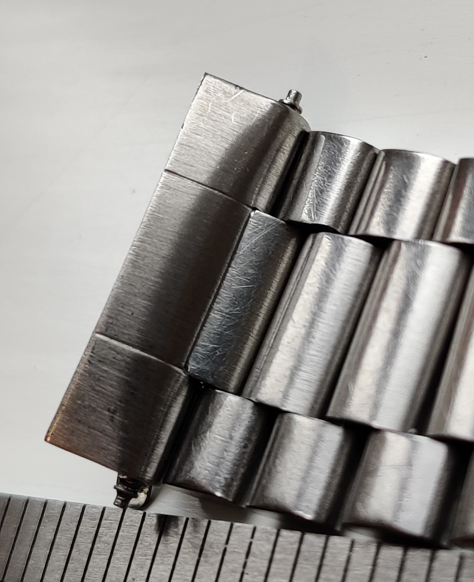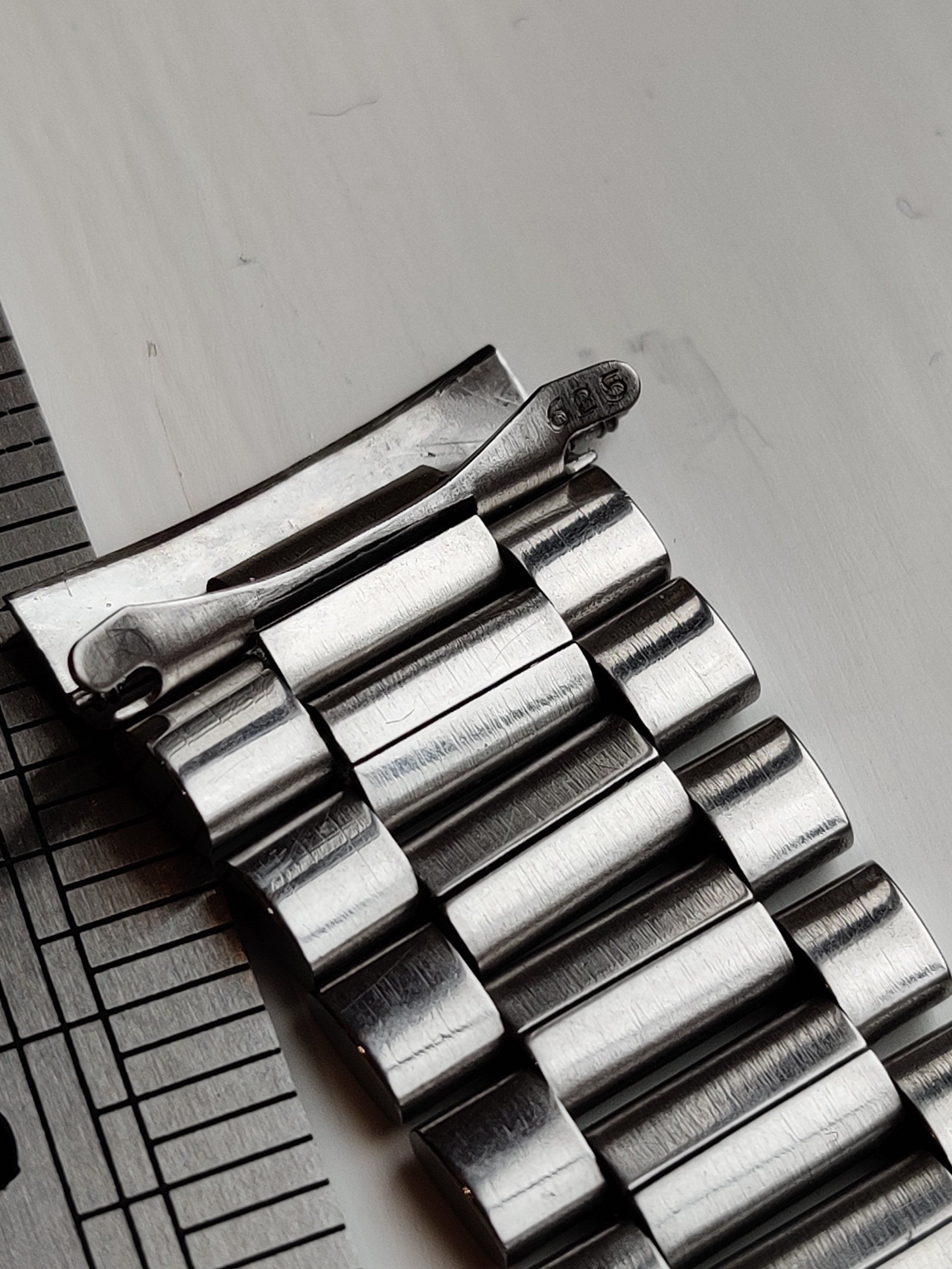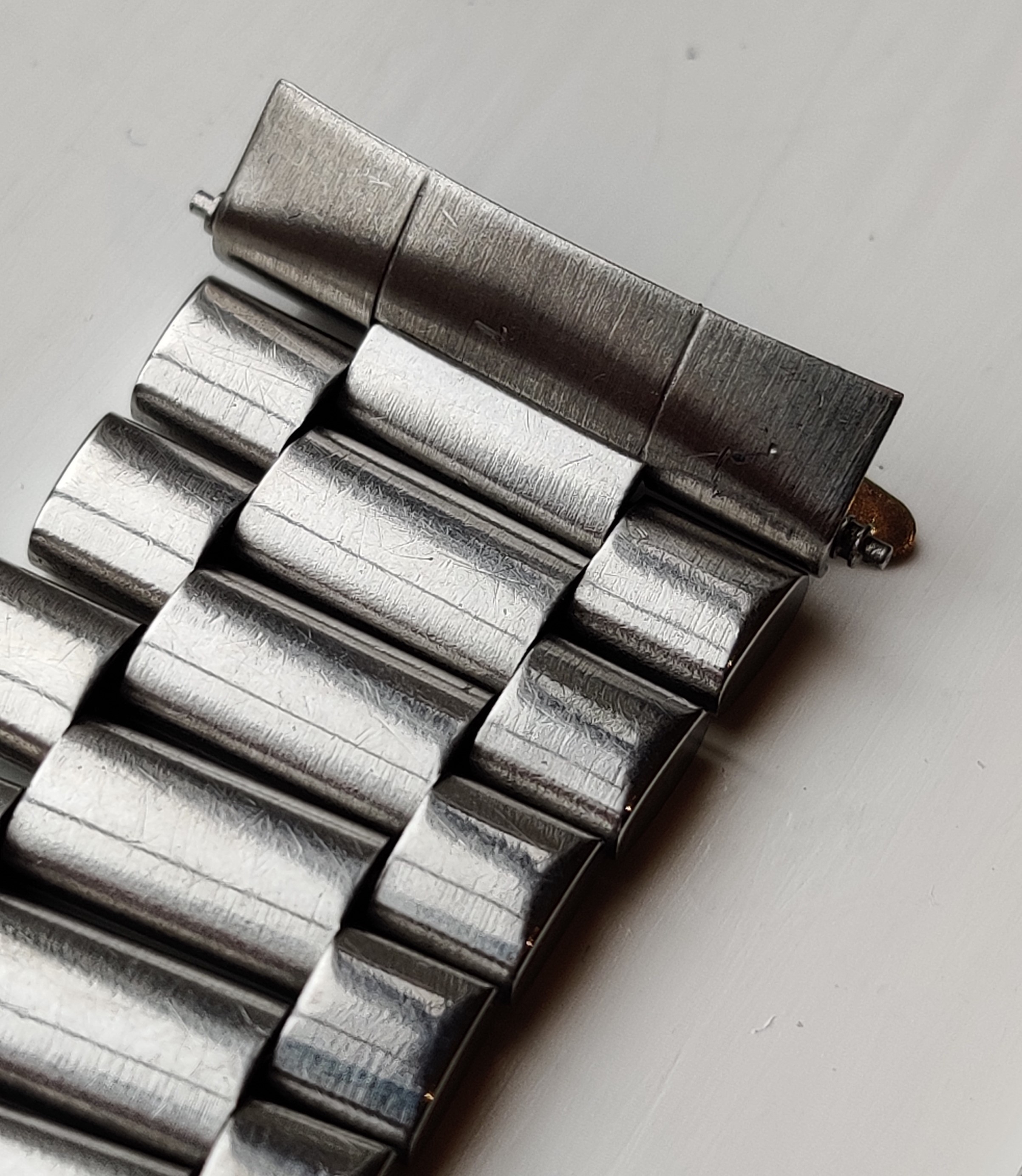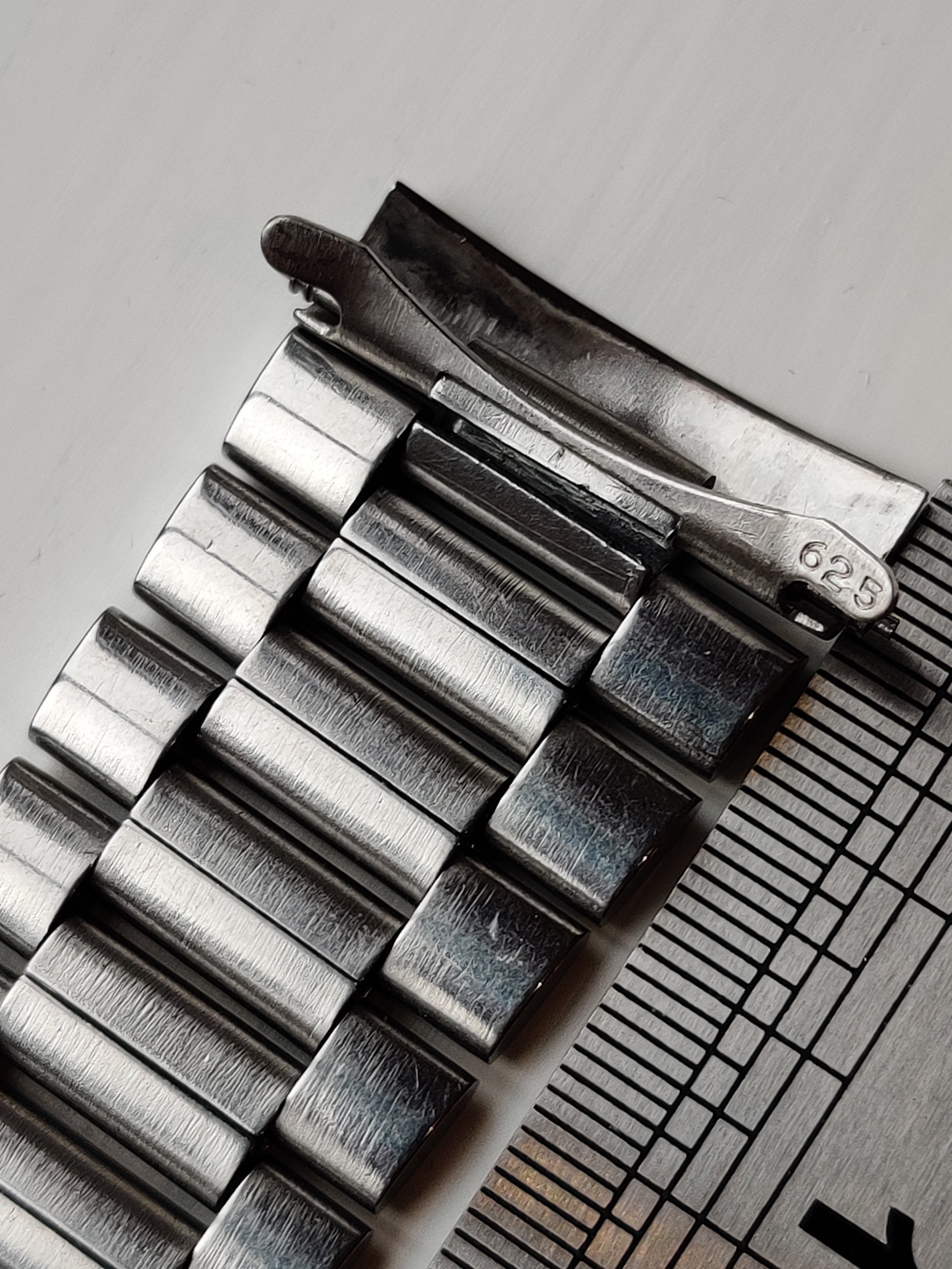 The clasp works though has a little bit of a dent on the outside, and the overall condition is "not bad" rather than pristine. I offered the end links to my Chronostop and I'm not sure they would make a neat fit without a bit of adjustment so decided to put it away for later... and you know how that goes.
