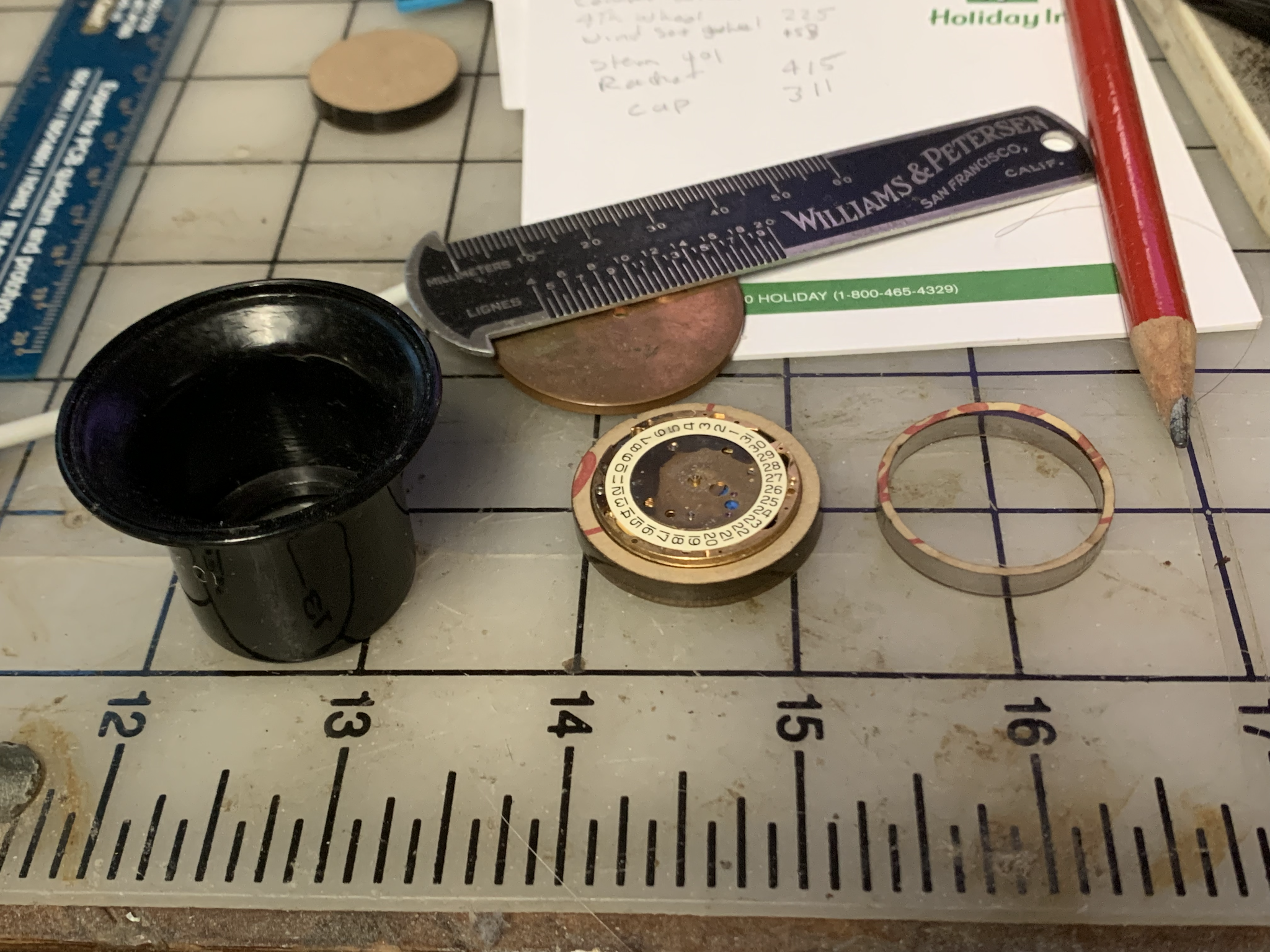 My movement arrived. I have not yet done anything other than inspect it. There is discoloration on the date ring so it may have been subject to moisture. I need to use the laser cutter to make a movement holder/ test fixture. Should also source a setting stem. These rabbits tend to go deeper and deeper down the hole as they multiply...