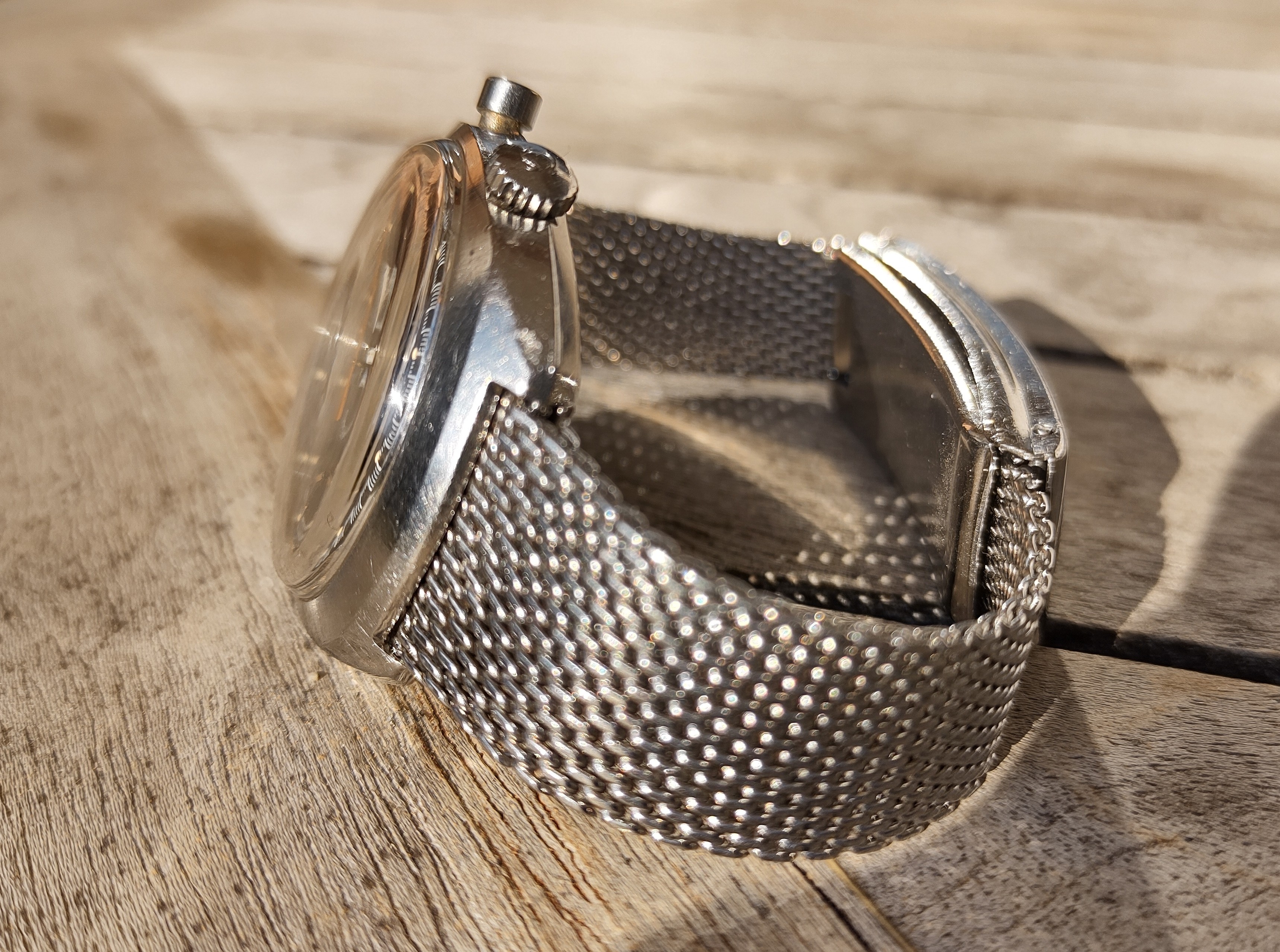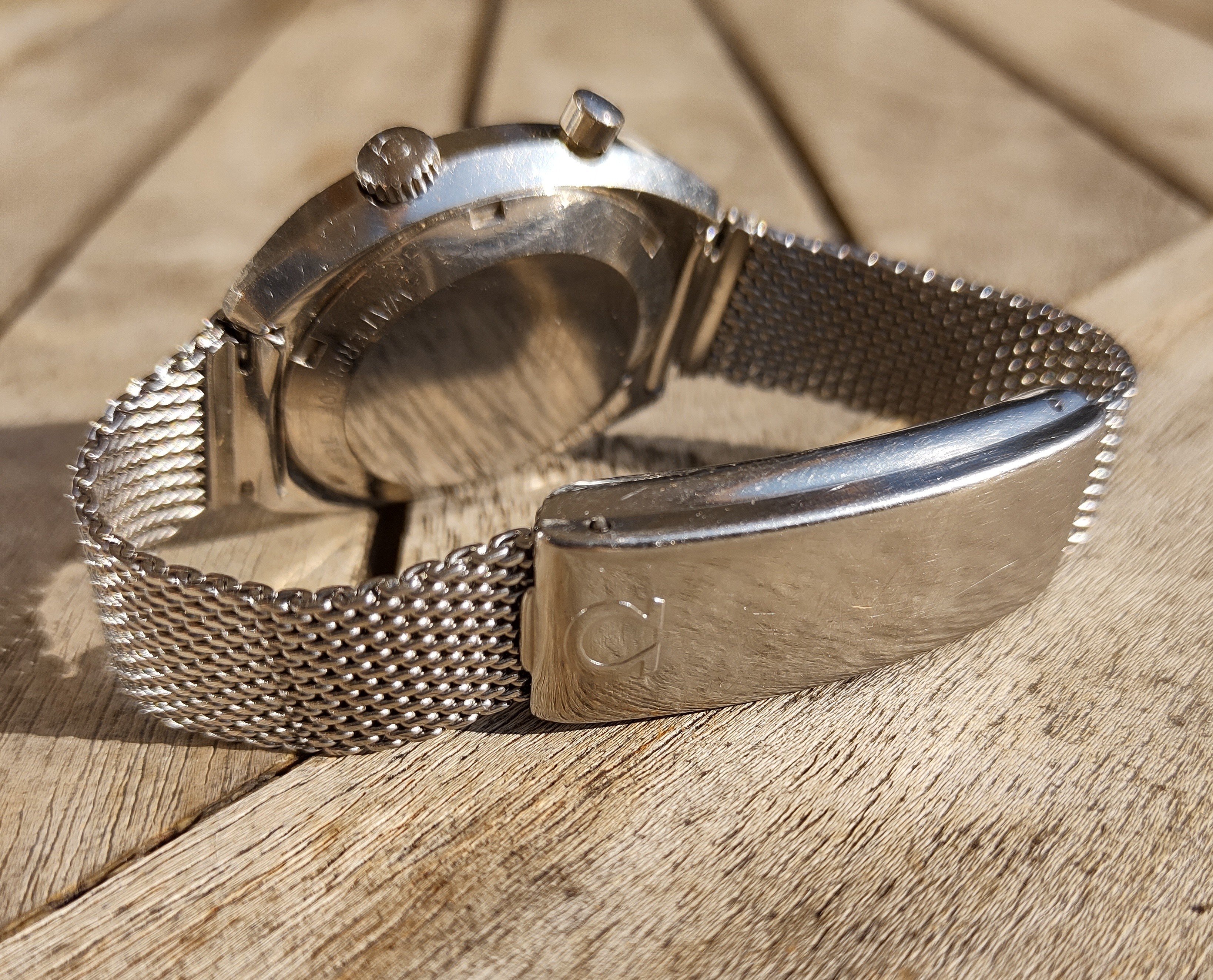 The watch comes on its rather rare, at least in this condition, Omega Milanese mesh bracelet - good for a 20cm wrist, with a really really neat micro adjustment with some kind of a seesaw system. It also boasts a huge clasp that was designed so you could have your blood group engraved there - in order for the medics to have a chance at saving your life. The no-date Cal 930 functions properly and keeps time within 30s per day, service history is unknown however. I would recommend a service if you are going to wear it regularly.