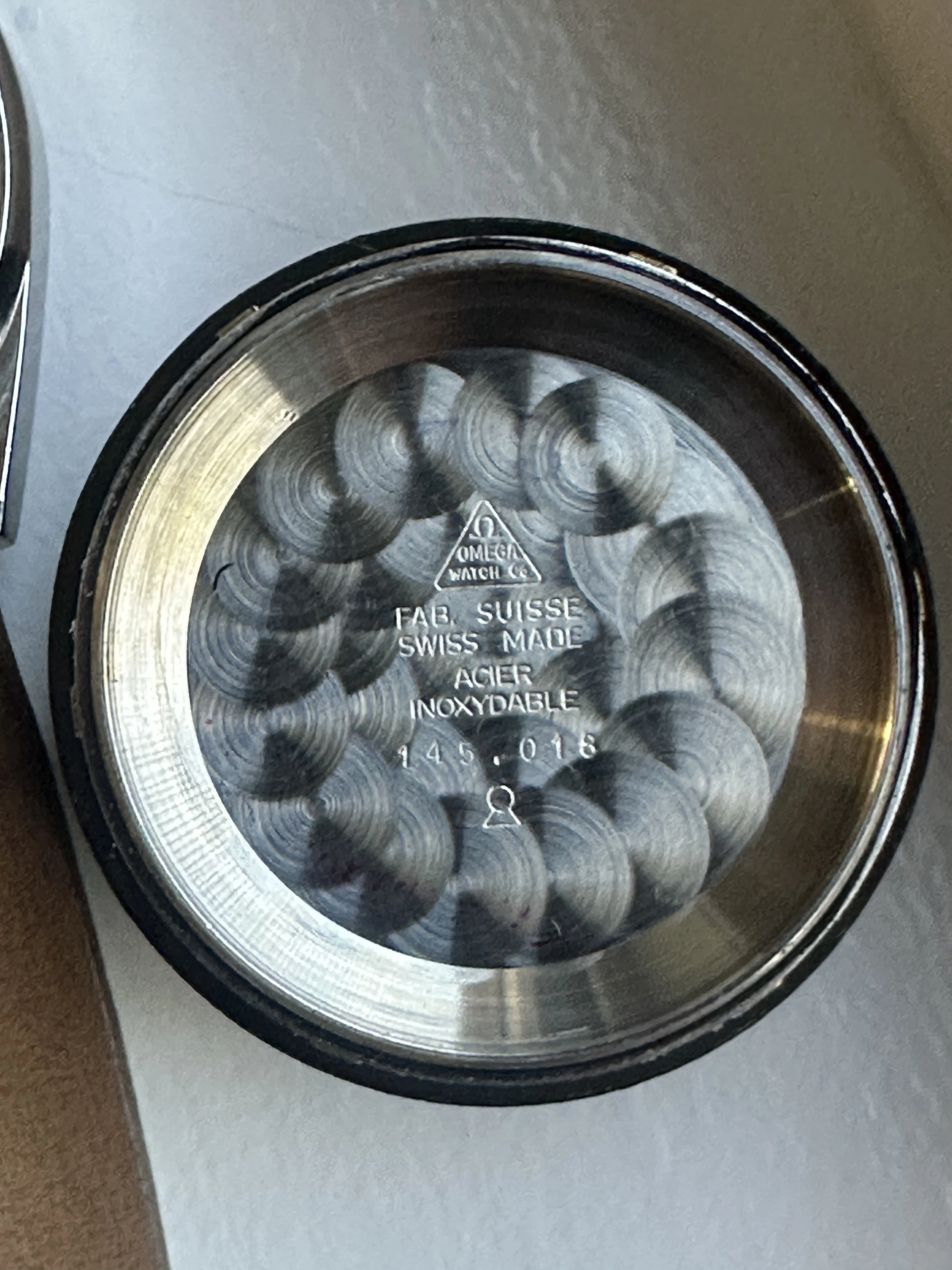 Case: Steel case is very sharp. Shows wear/scratches from use. Crystal has omega logo.