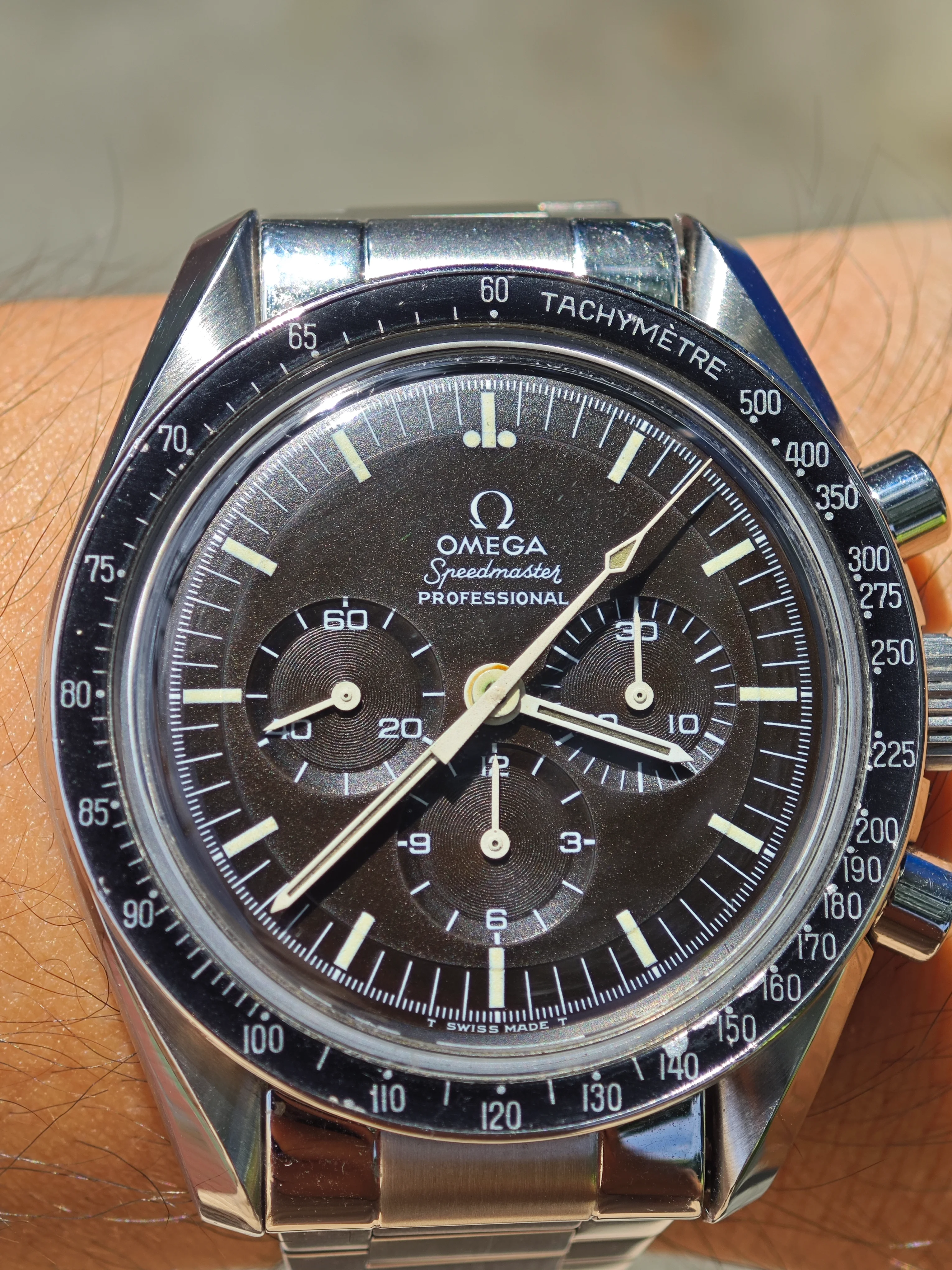 The movement is super clean, and recently serviced. The watch is running perfectly, both for daily wear and on a timegrapher. The serial number is 2960xxxx, which put it in the range famous for the brown dial.